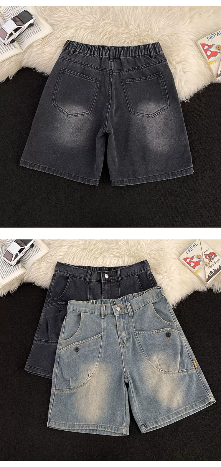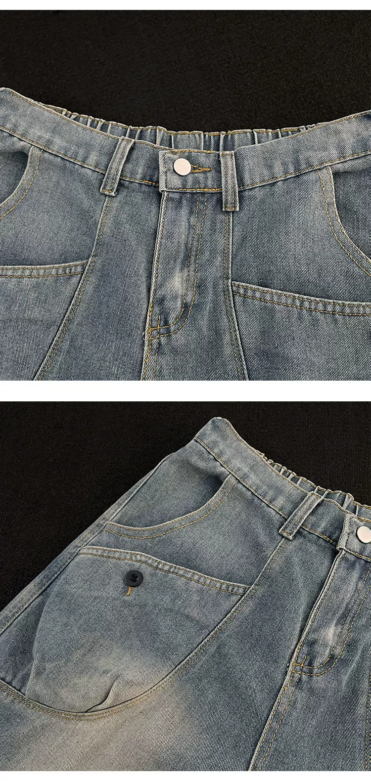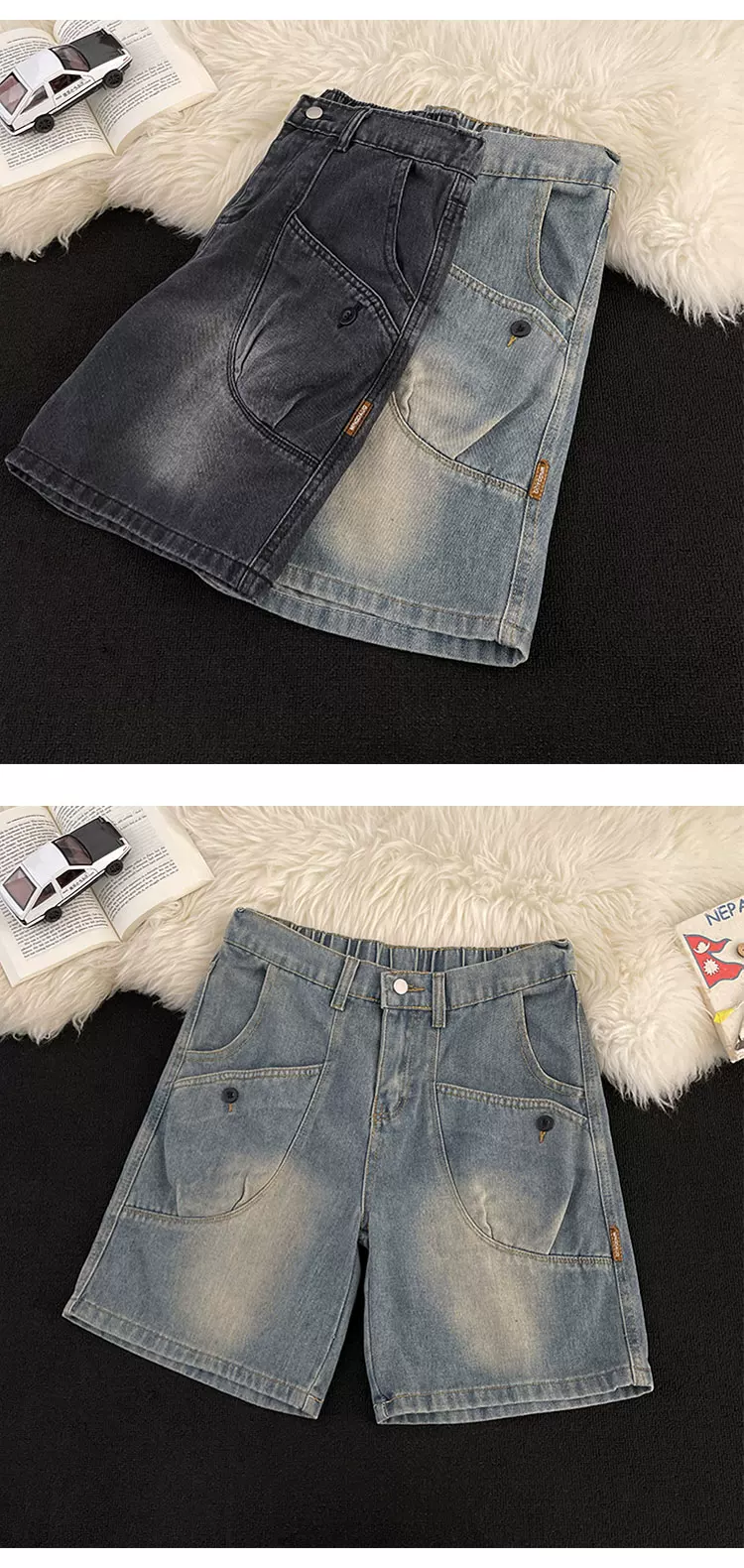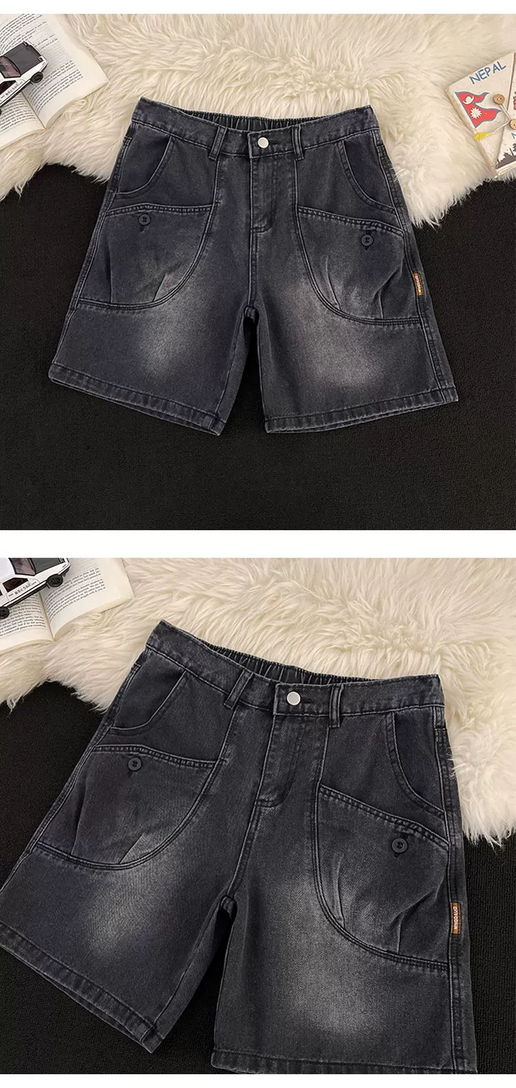 - Quần short denim ống đứng phong cách Mỹ cổ điển mới dành cho nam mùa hè, thiết kế có túi, quần short dài vừa phải hợp thời trang.