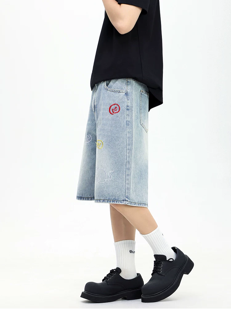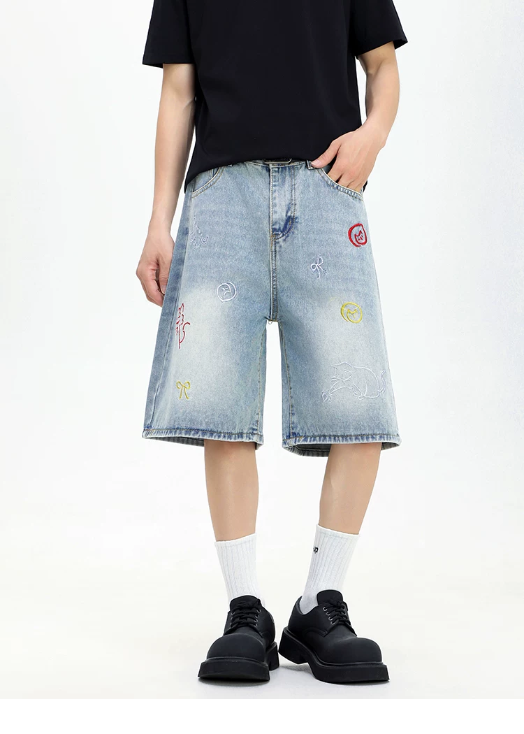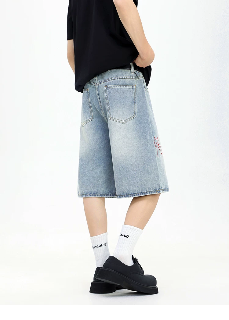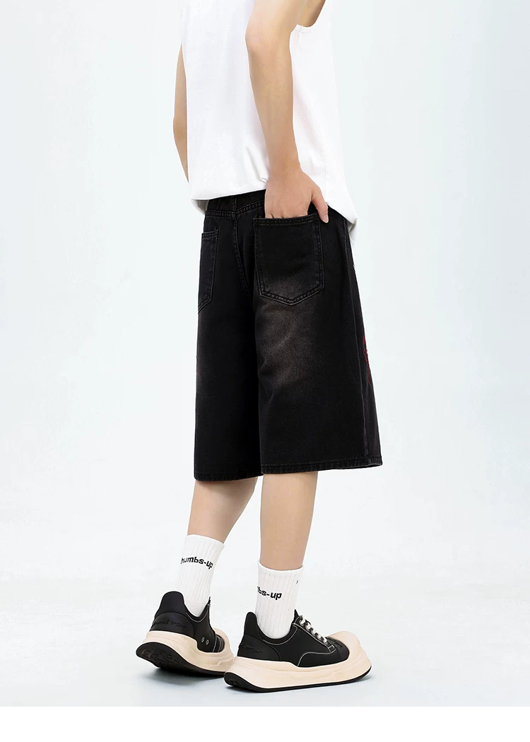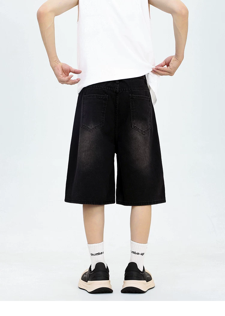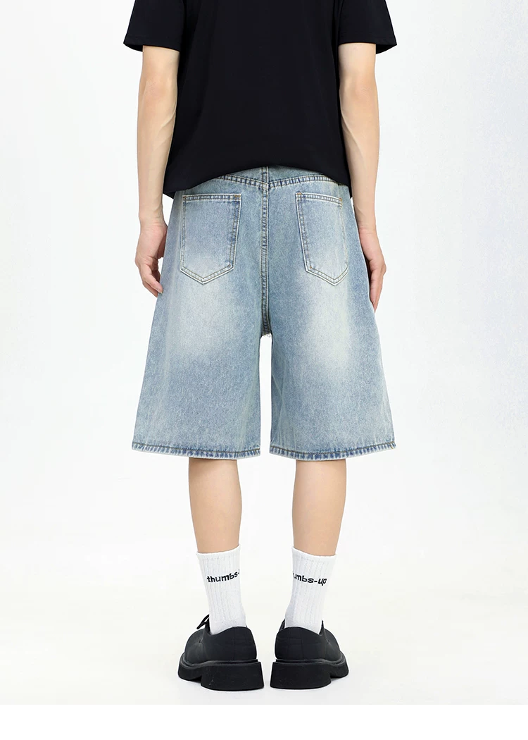 Quần short denim retro kiểu Mỹ dành cho nam, quần ống rộng dáng xuông thời thượng phong cách ins, quần cao cấp đơn giản mùa hè.