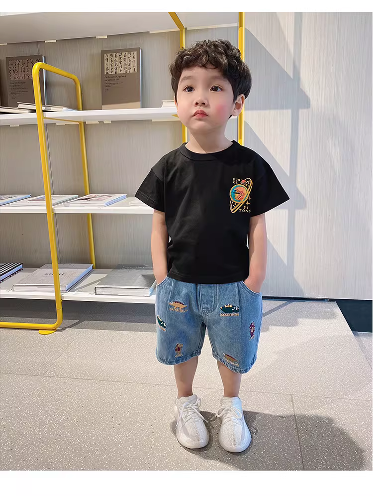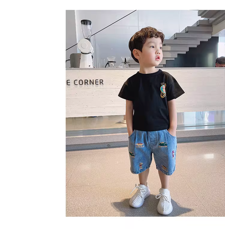 - Quần short denim trẻ em quần kaki bé trai mùa hè 2025 kiểu Hàn Quốc mới thời trang trẻ em quần lửng rộng rãi