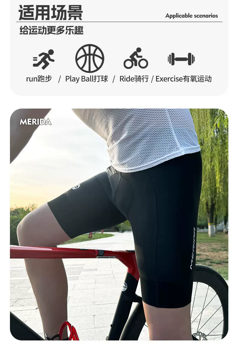 Quần short đi xe đạp Merida Double Arrow dành cho nam mùa hè, xe đạp đường trường, xe đạp leo núi, có ngăn đựng đồ, trang phục đi xe đạp