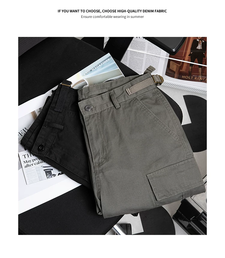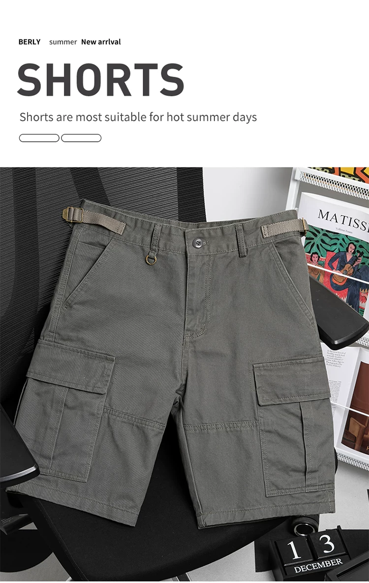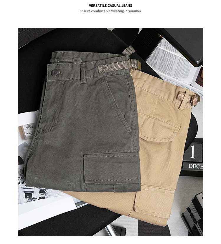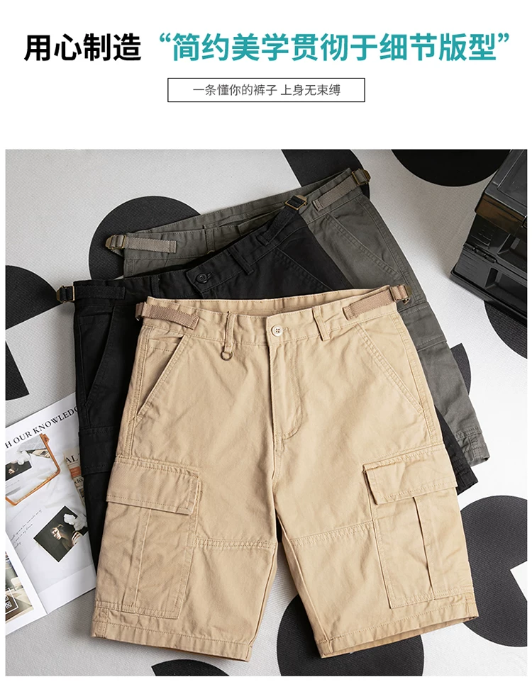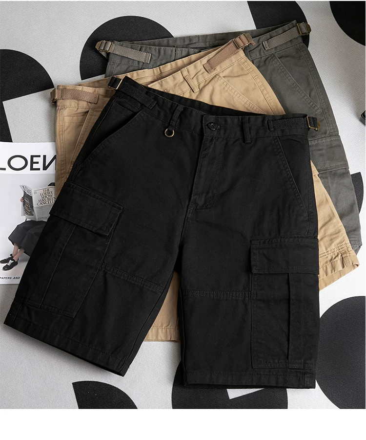 Quần short đơn giản kiểu Mỹ dành cho nam, quần năm phần dáng rộng hợp thời trang mùa hè với thiết kế nhiều túi, quần ống thẳng.