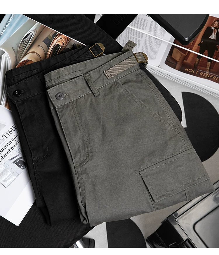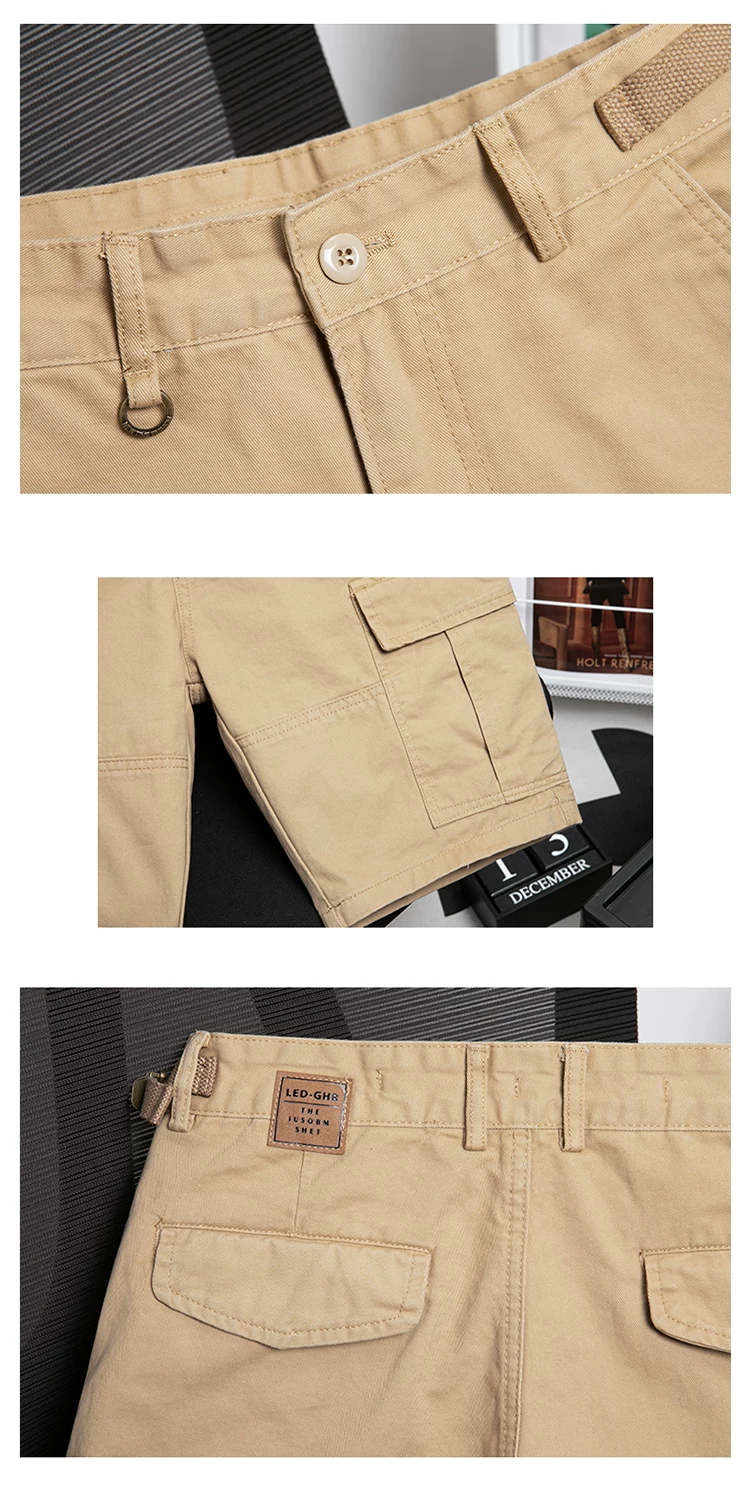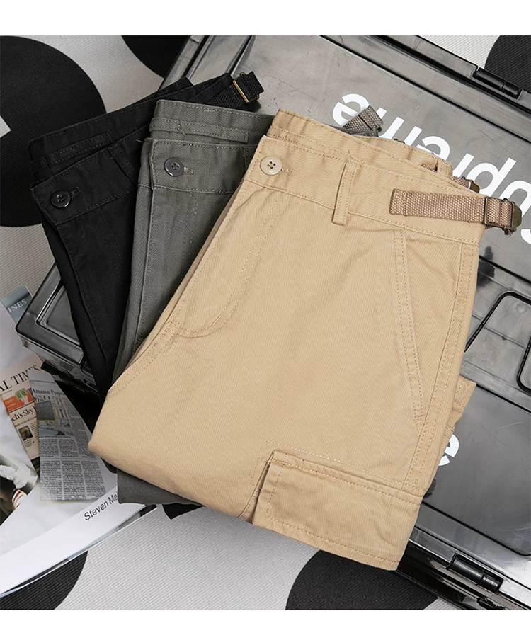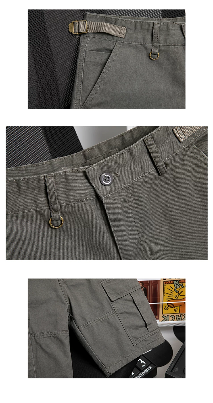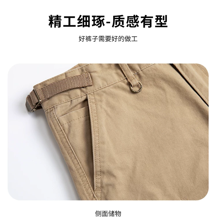 Quần short đơn giản kiểu Mỹ dành cho nam, quần năm phần dáng rộng hợp thời trang mùa hè với thiết kế nhiều túi, quần ống thẳng.