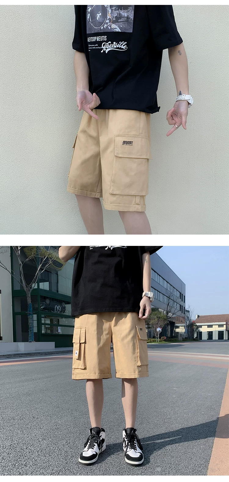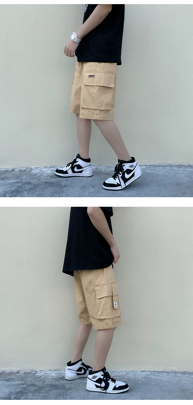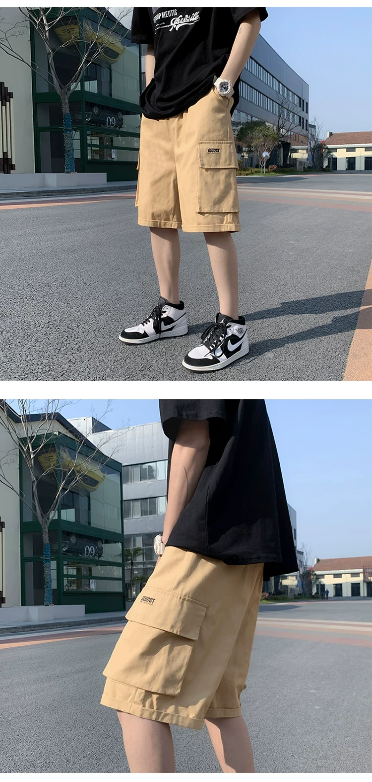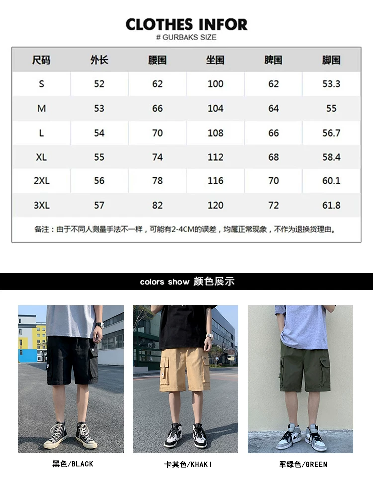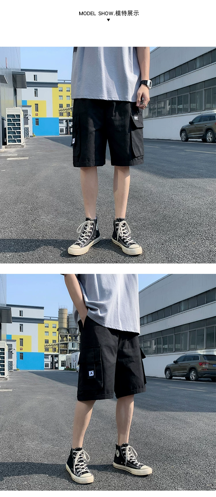 - Quần short học sinh kiểu Nhật dành cho nam, quần dài vừa ống đứng nhiều túi hợp thời trang mùa hè, quần short ống rộng đa năng.