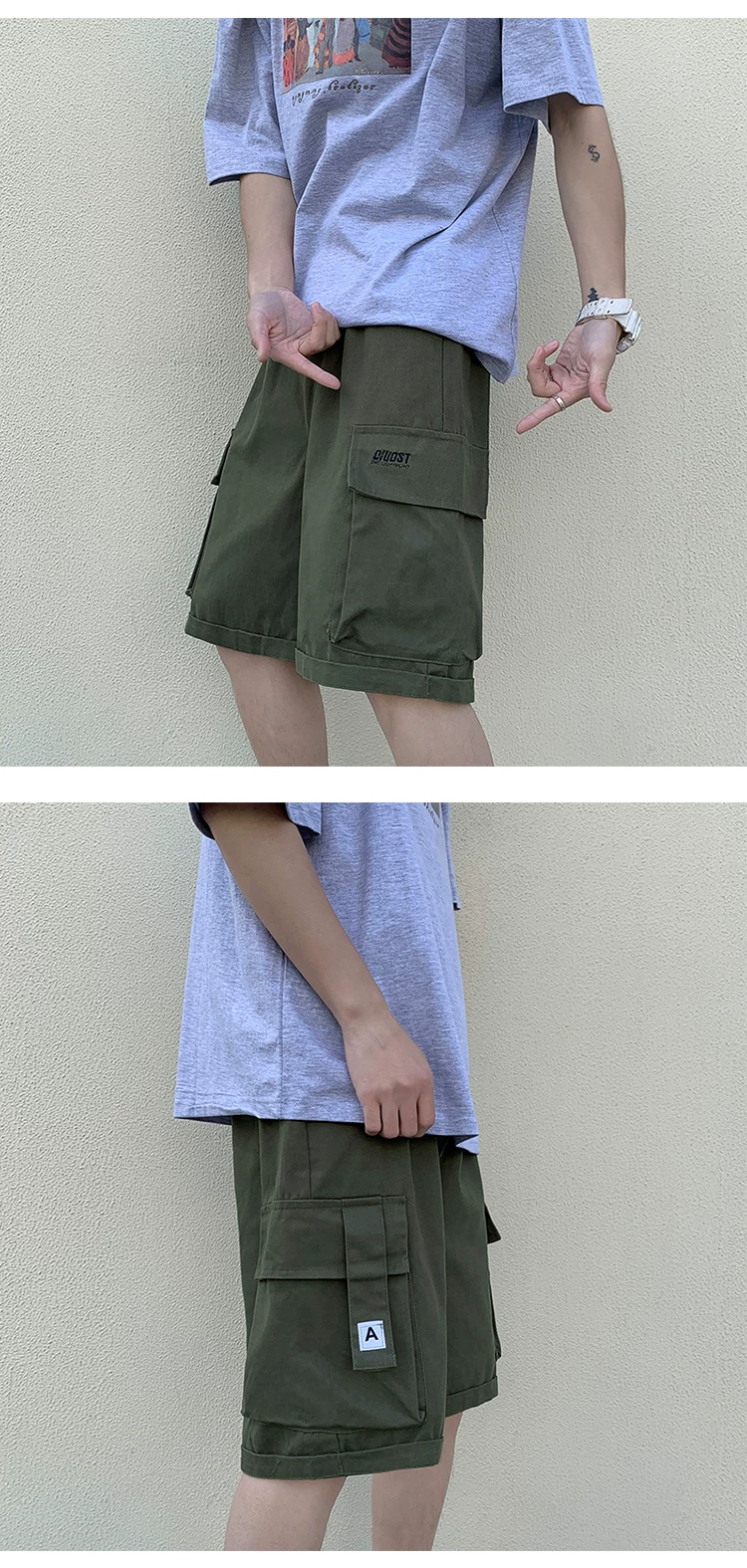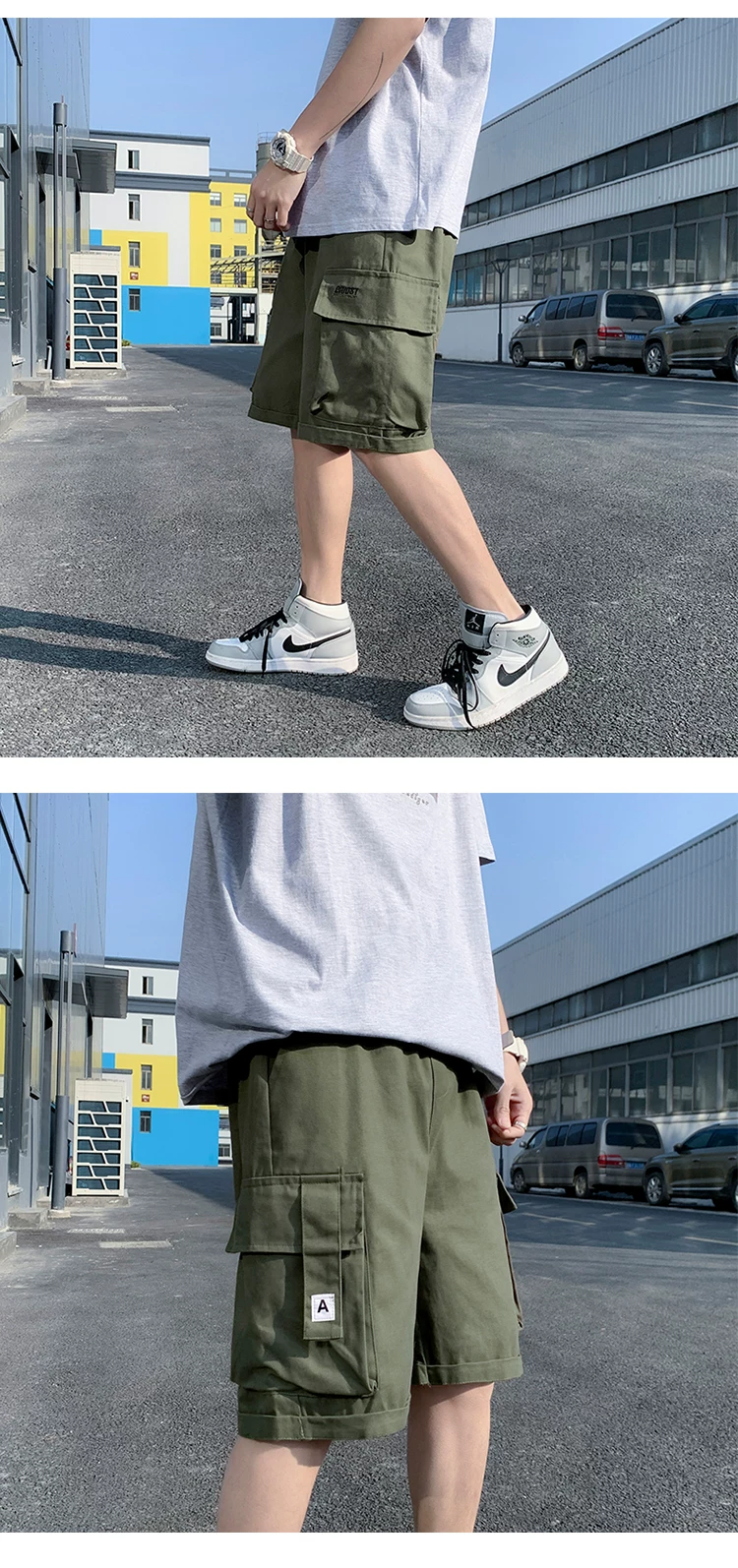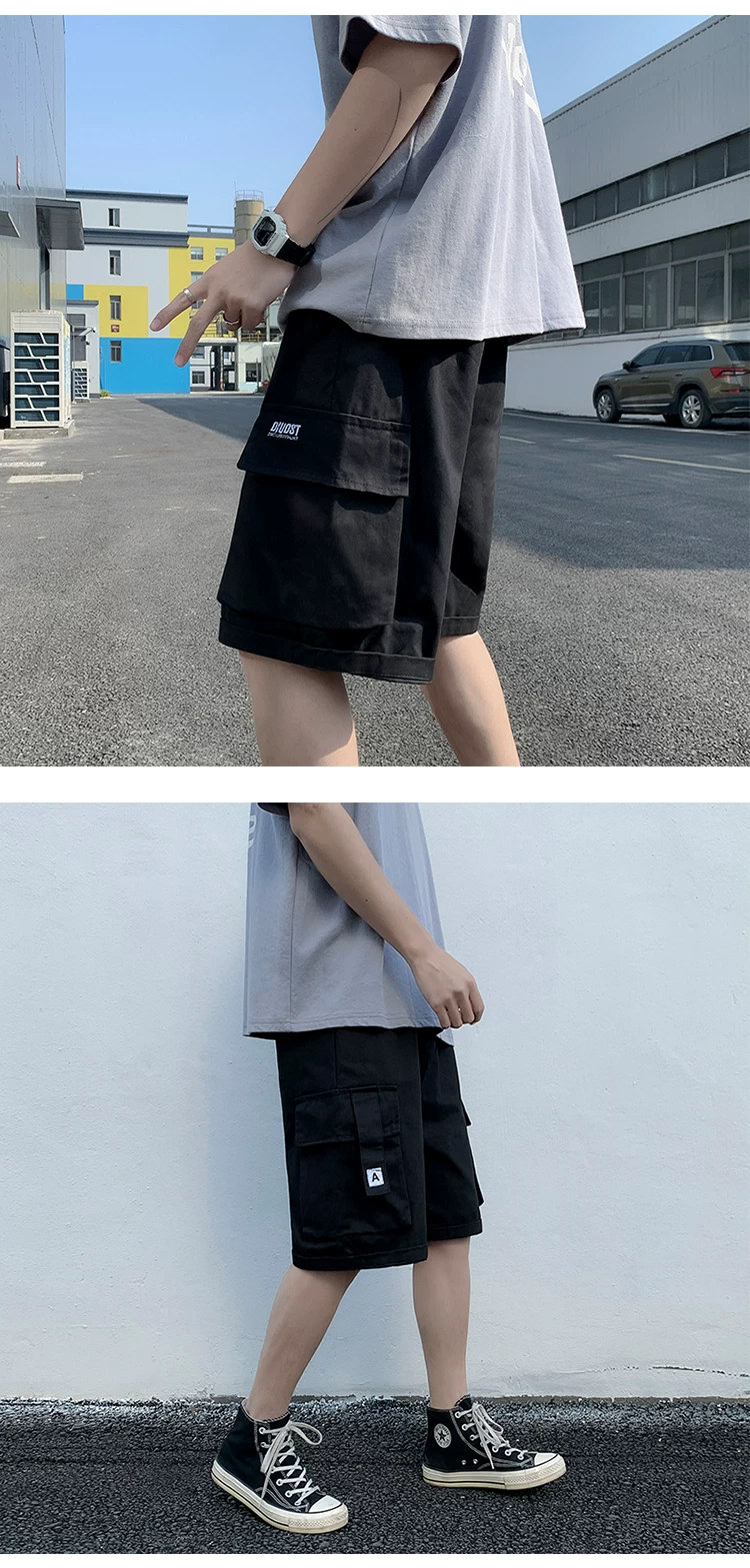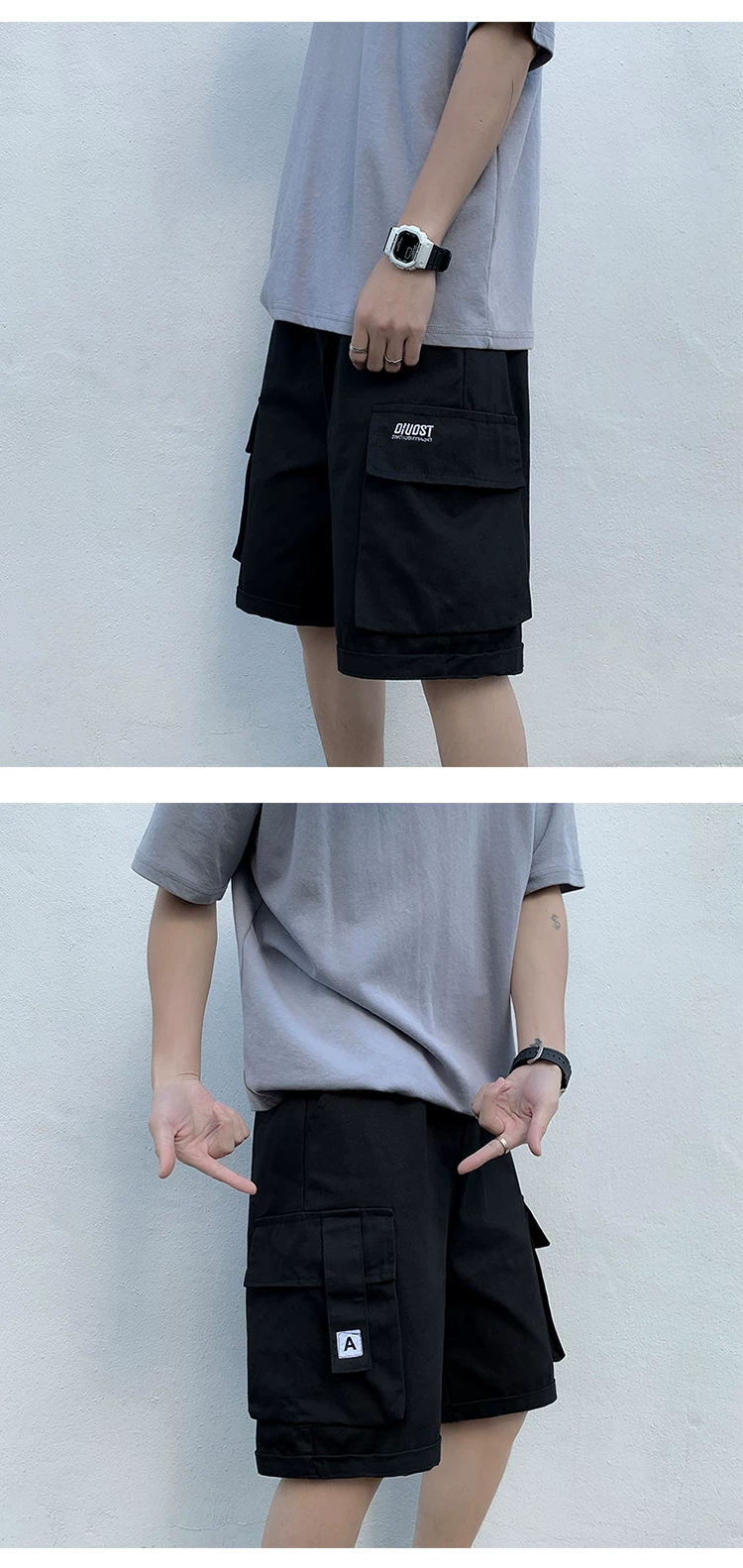- Quần short học sinh kiểu Nhật dành cho nam, quần dài vừa ống đứng nhiều túi hợp thời trang mùa hè, quần short ống rộng đa năng.
