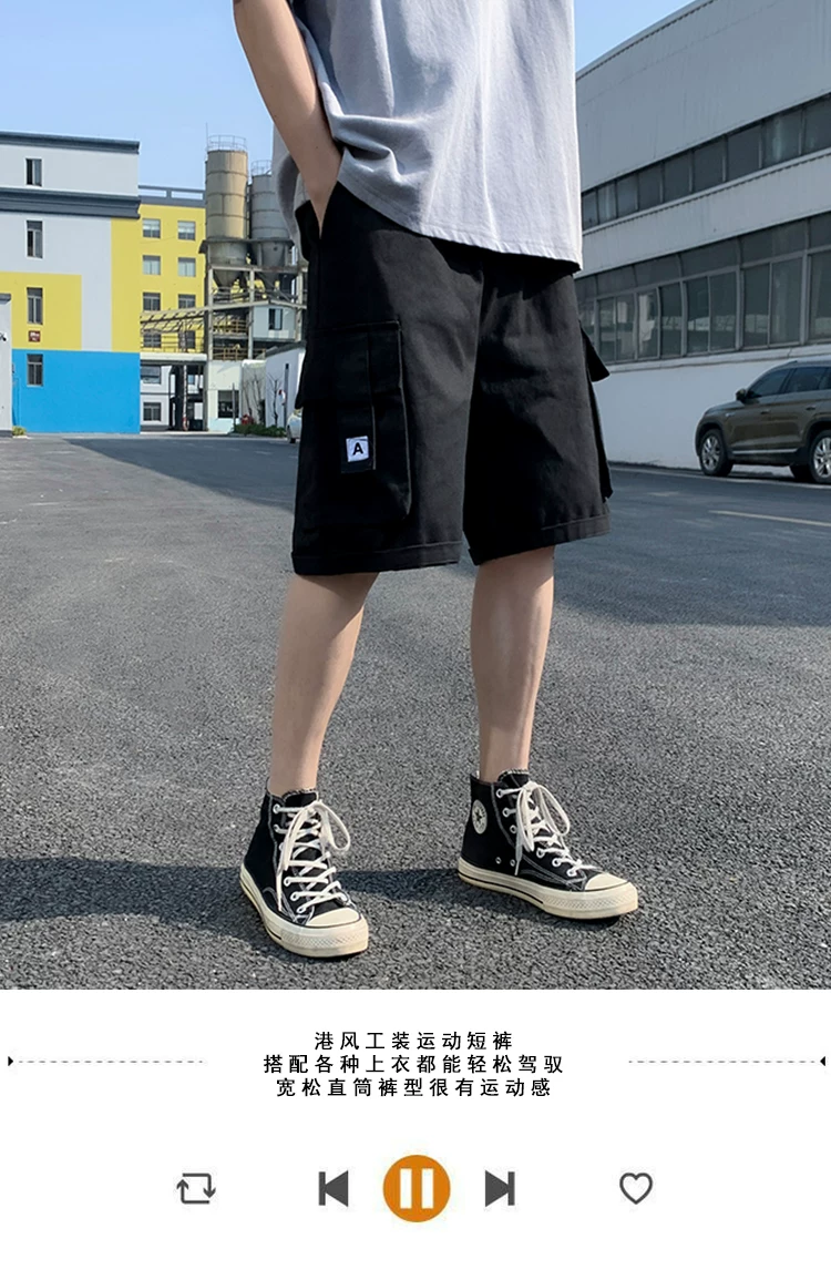 Quần short học sinh kiểu Nhật dành cho nam, quần dài vừa ống đứng nhiều túi hợp thời trang mùa hè, quần short ống rộng đa năng.