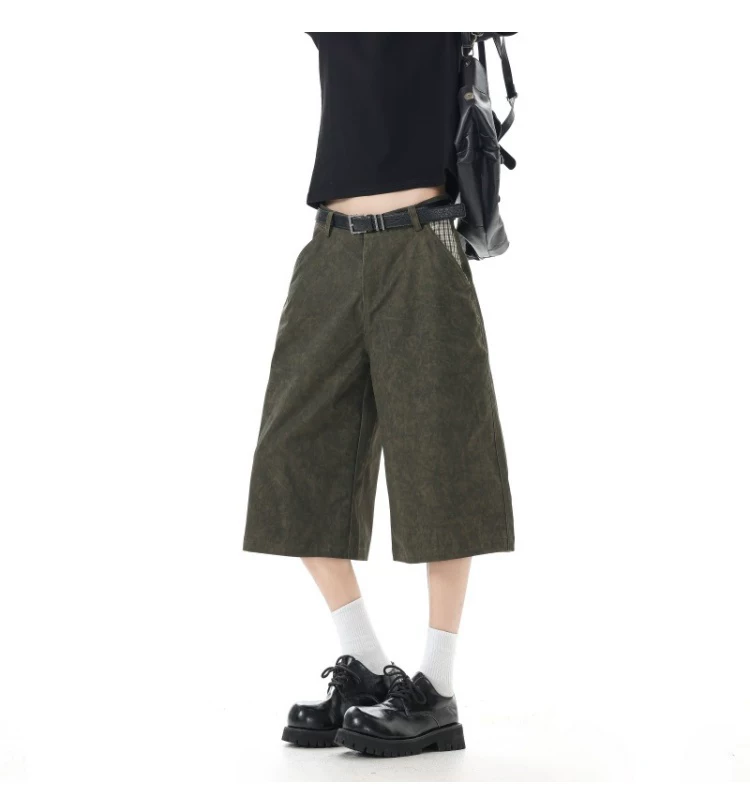 - Quần short kiểu Mỹ dành cho nam và nữ, thương hiệu thời trang mùa hè, quần ống rộng dáng suông, quần ống đứng cao cấp phong cách retro.