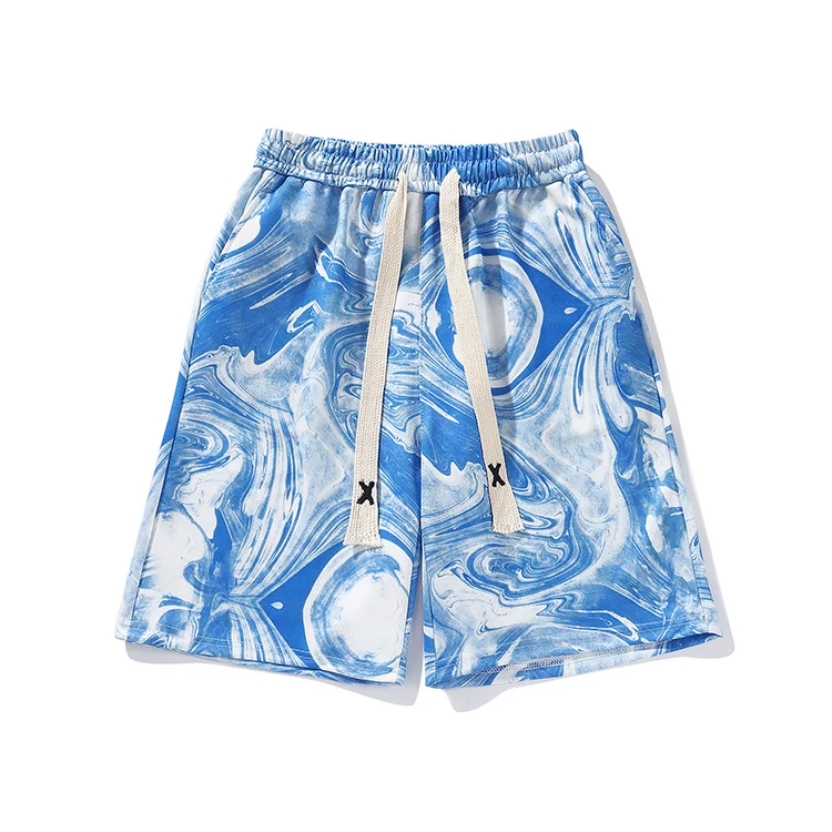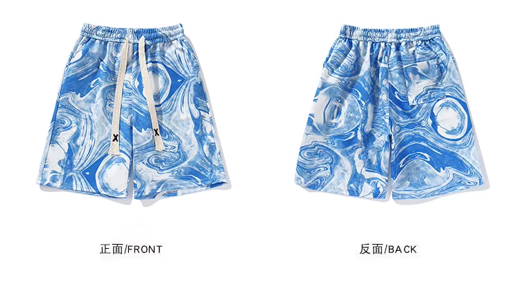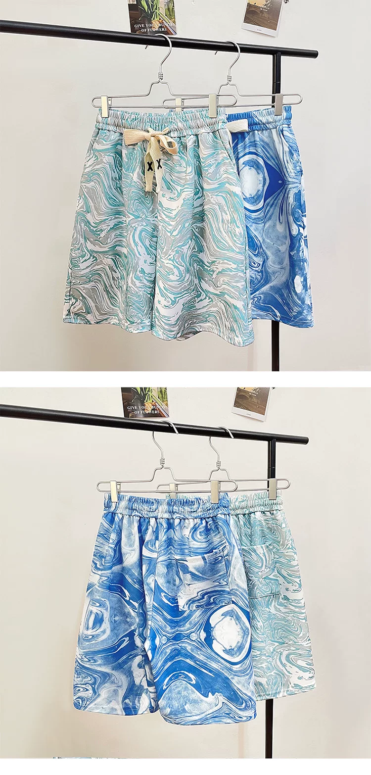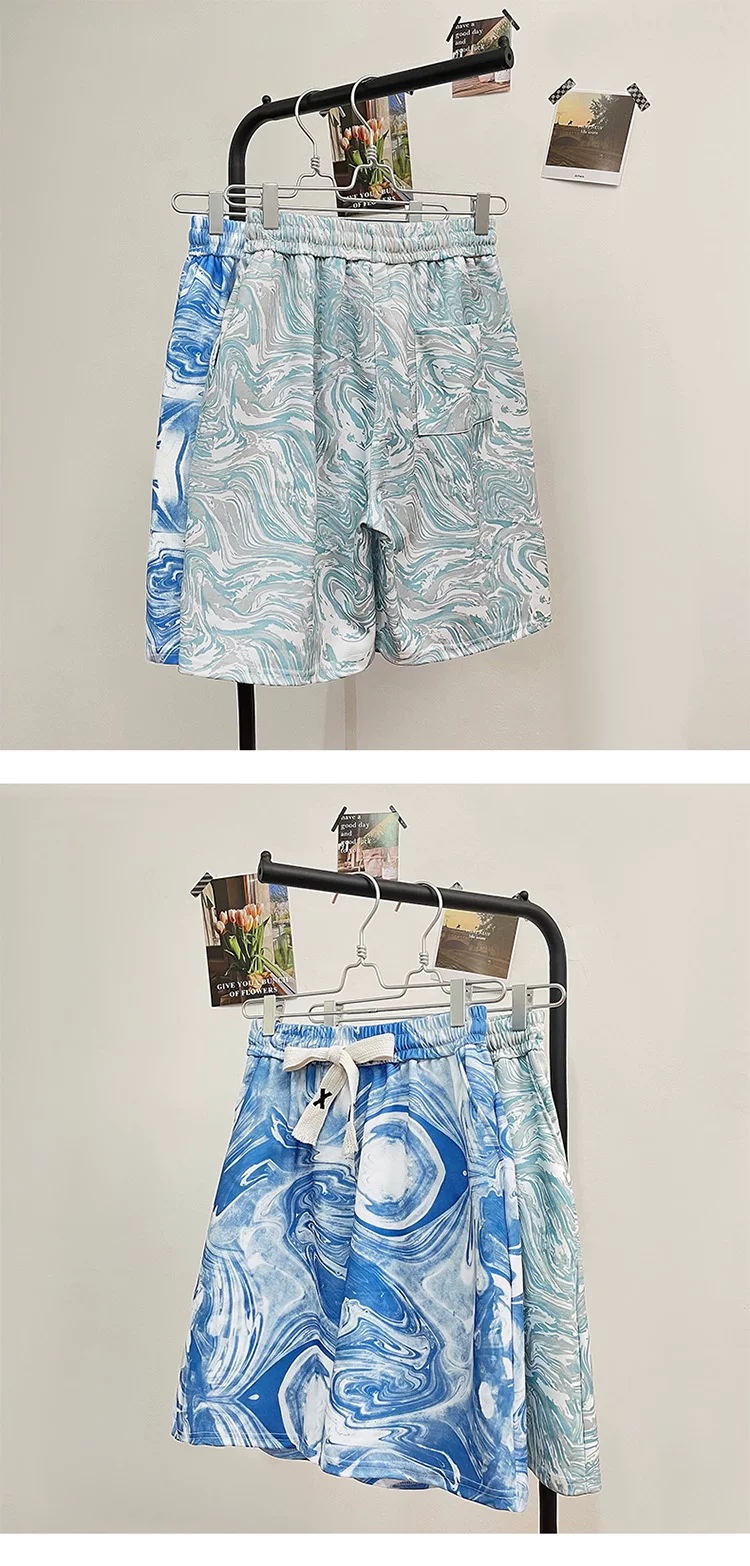Quần short lụa băng nhuộm màu tie-dye dành cho nam, quần short đi biển mỏng nhẹ hợp thời trang mùa hè, quần short năm phần kiểu Mỹ rộng rãi dành cho cặp đôi.