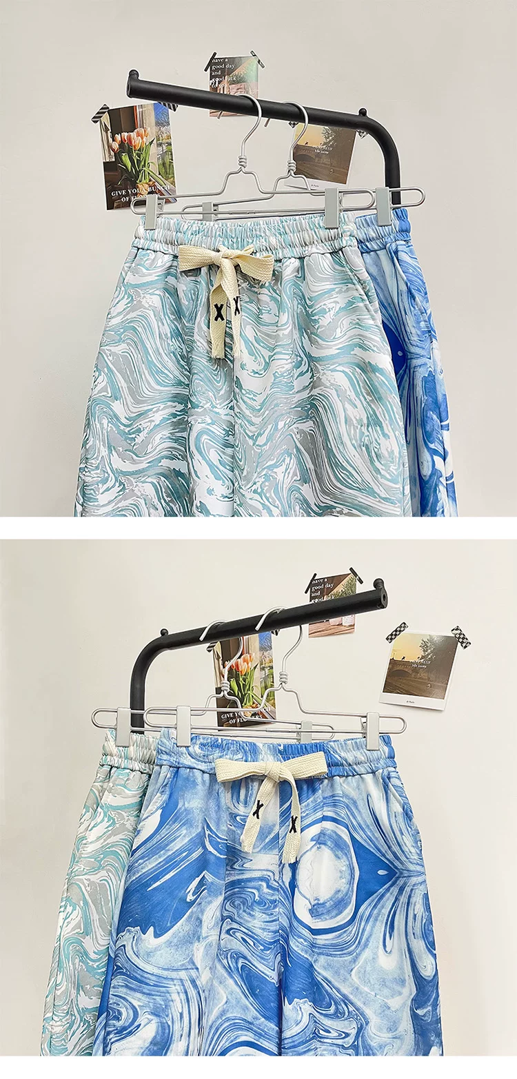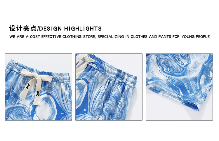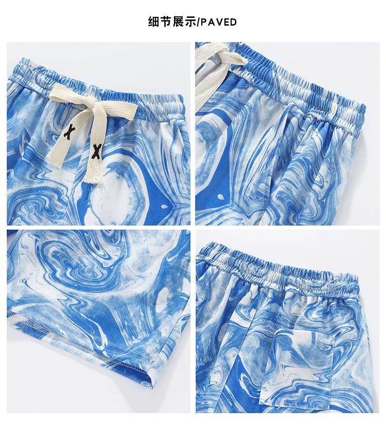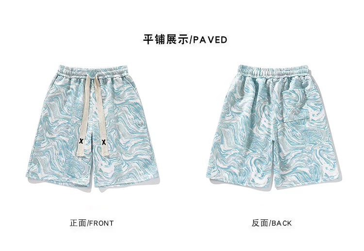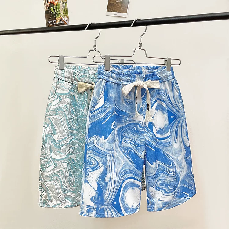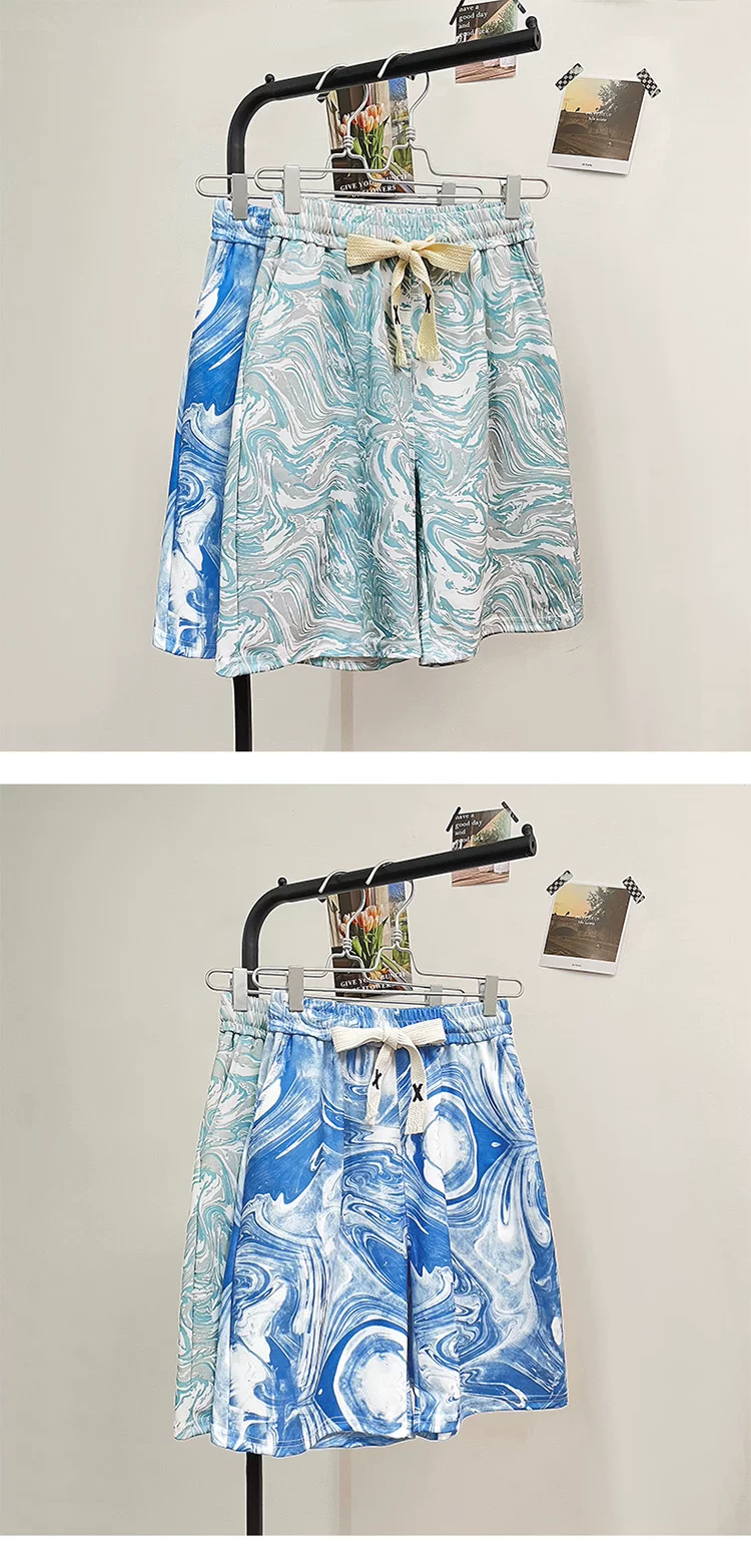 Quần short lụa băng nhuộm màu tie-dye dành cho nam, quần short đi biển mỏng nhẹ hợp thời trang mùa hè, quần short năm phần kiểu Mỹ rộng rãi dành cho cặp đôi.