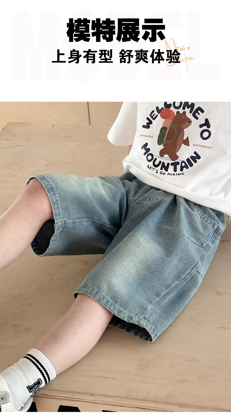 - Quần short mùa hè bé trai 2025, quần áo trẻ em mới, quần short denim mỏng mùa hè cho bé trai, kiểu dáng thời trang, quần năm phần