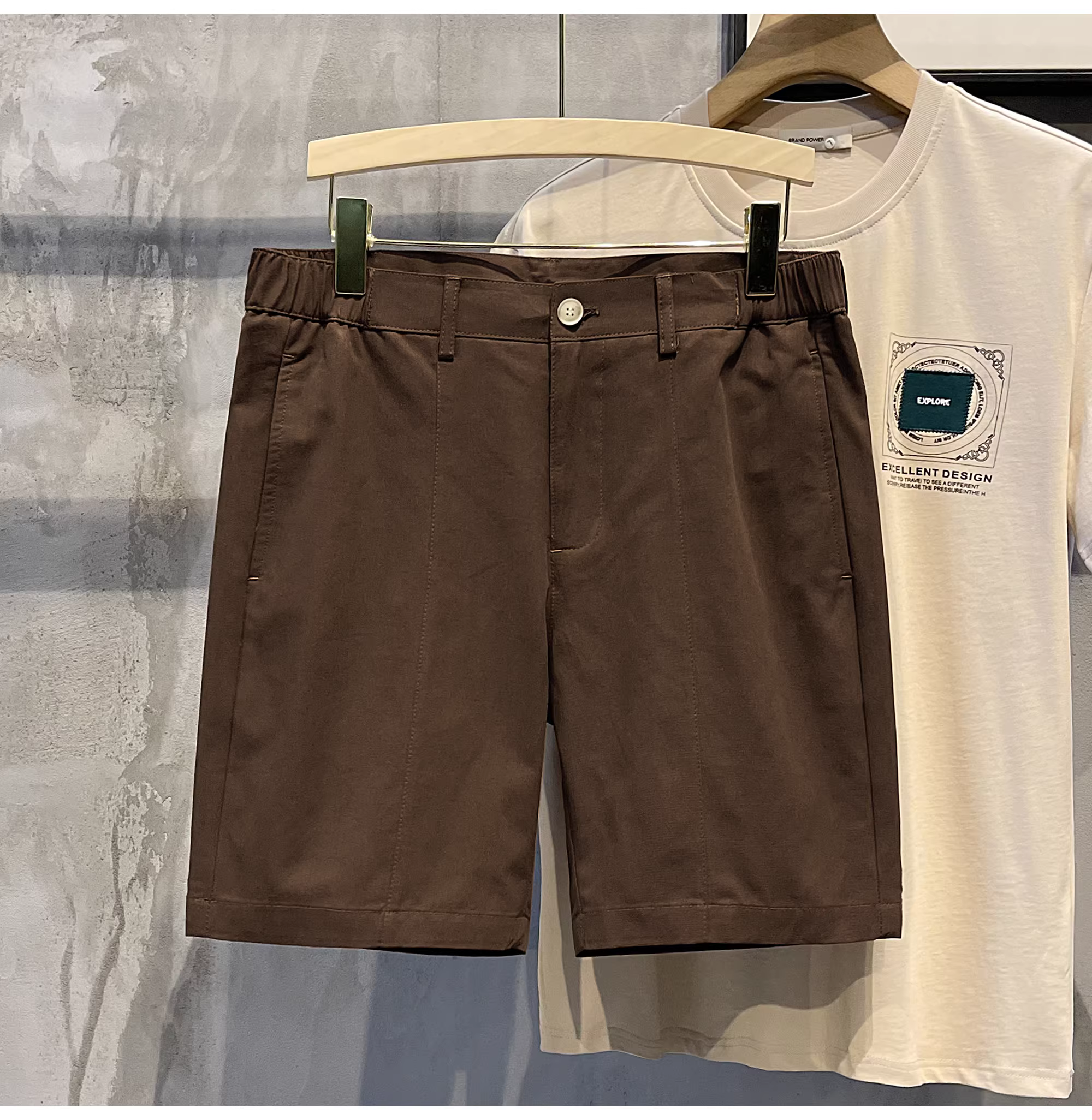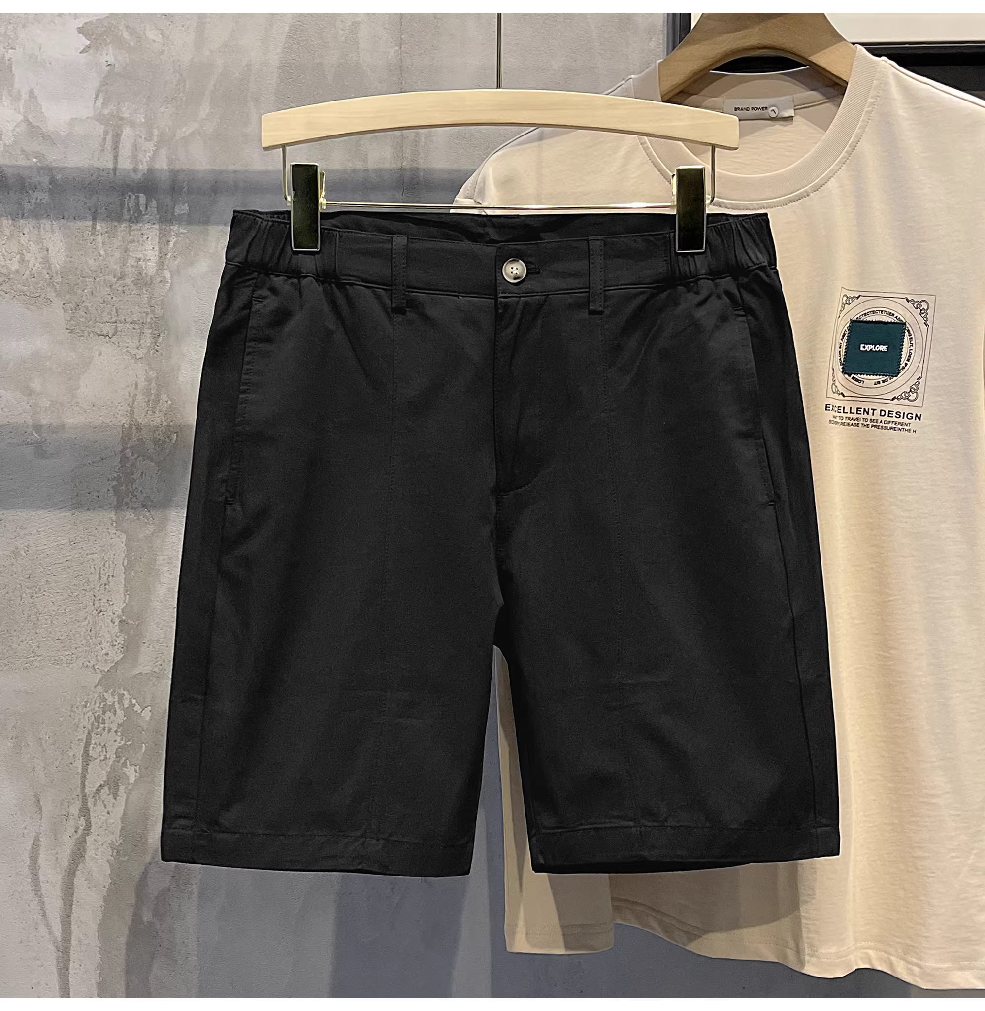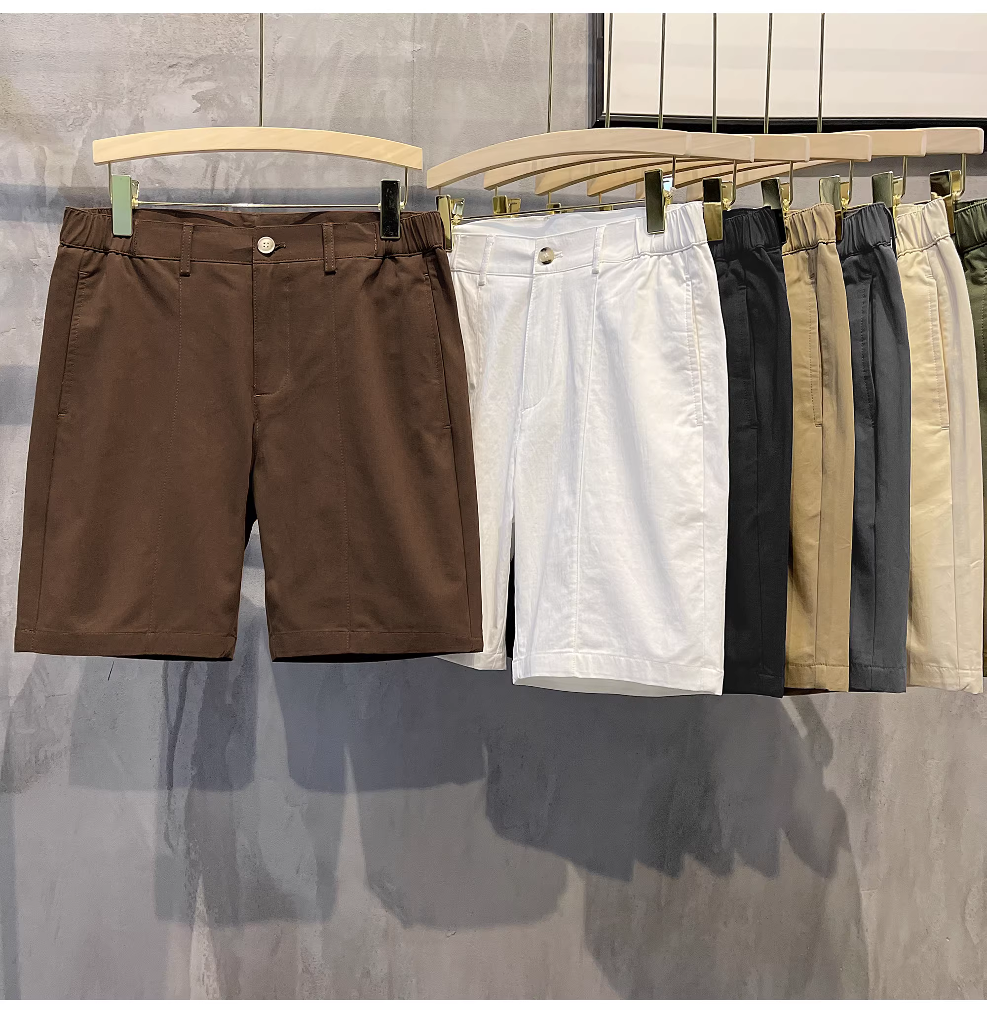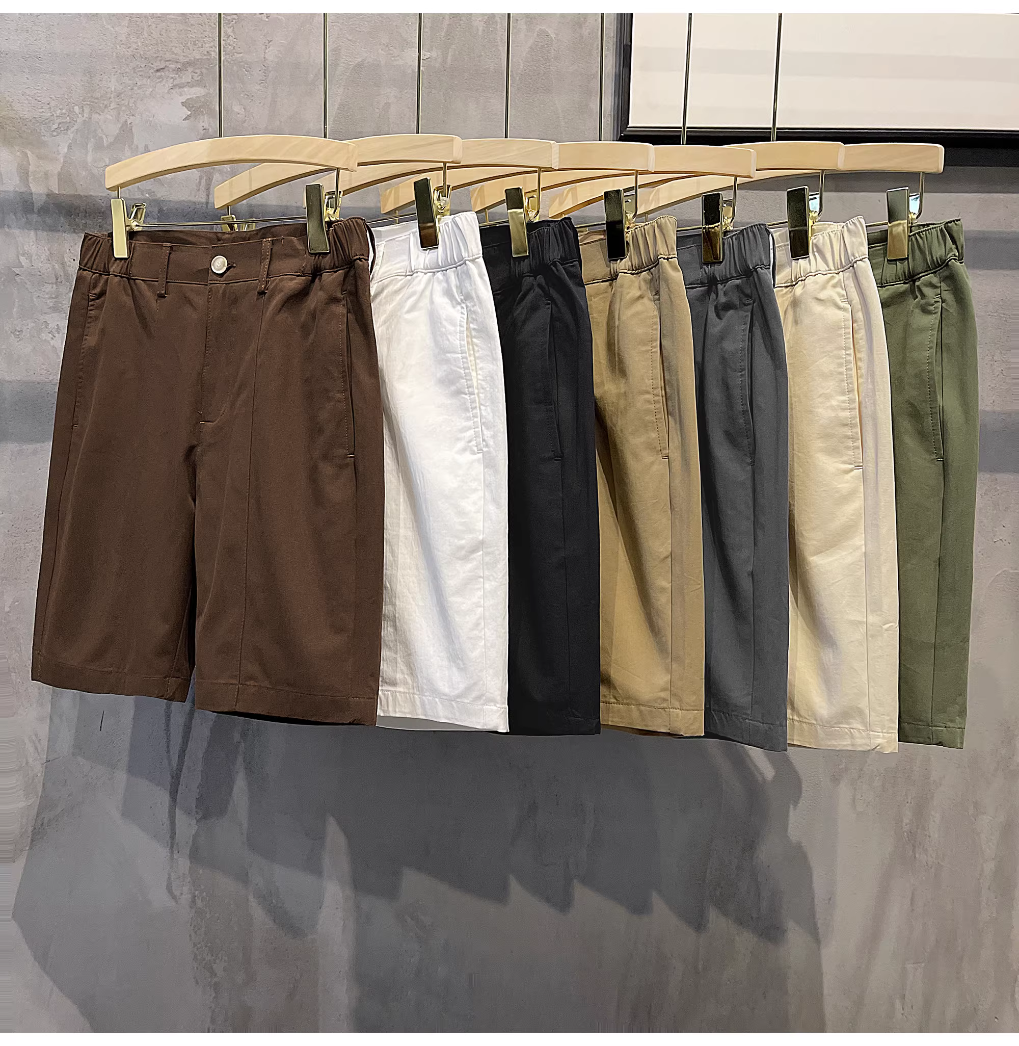 Quần short nam LUUD mùa hè, lưng thun bán co giãn, kiểu dáng đơn giản, thoáng khí, 100% cotton, màu trơn, dáng ôm thẳng.