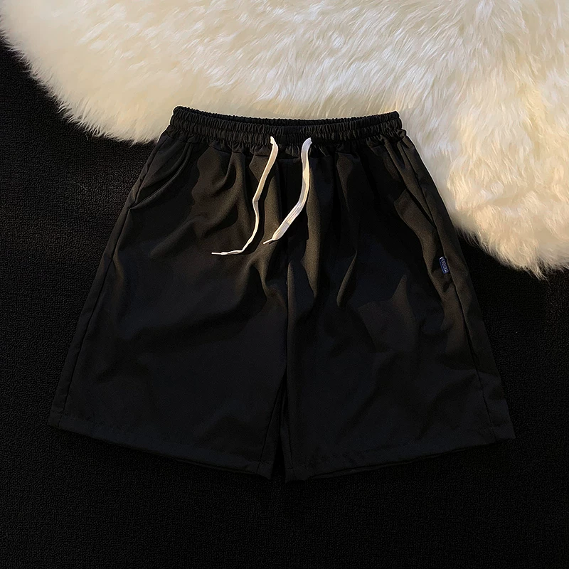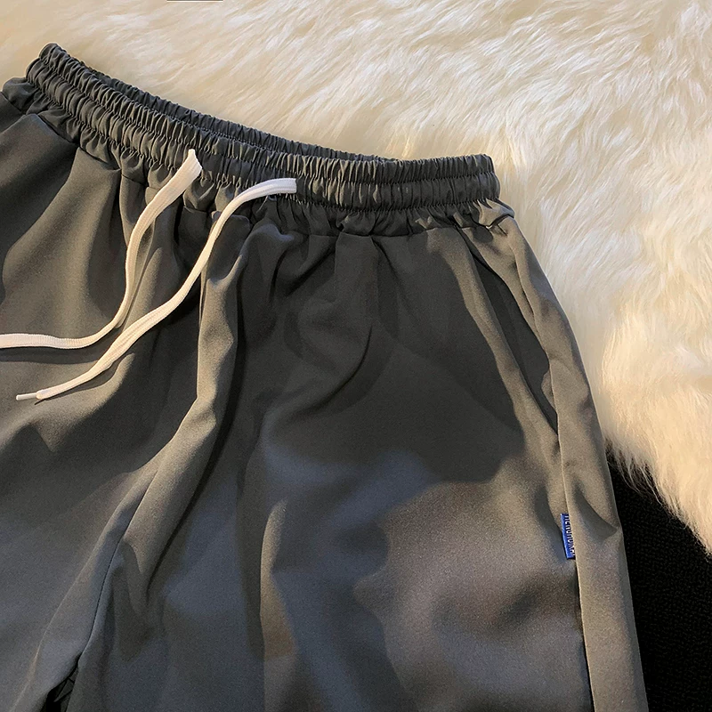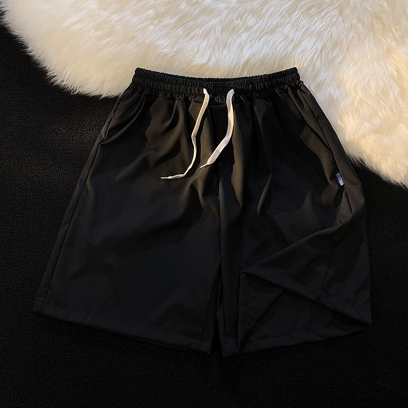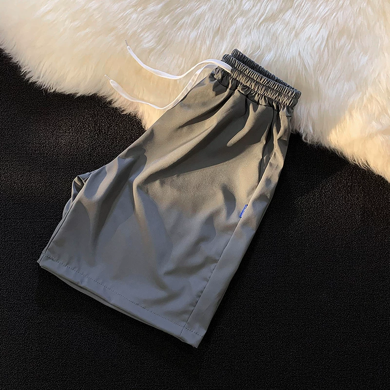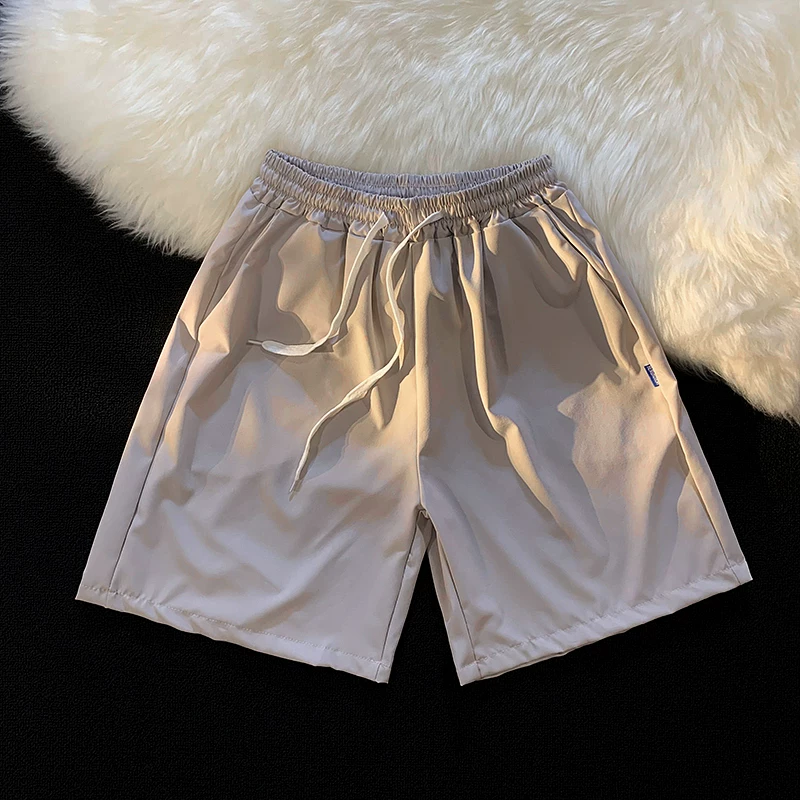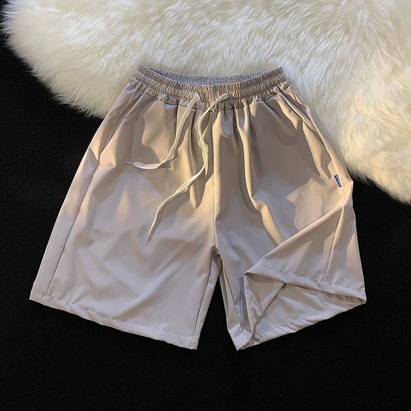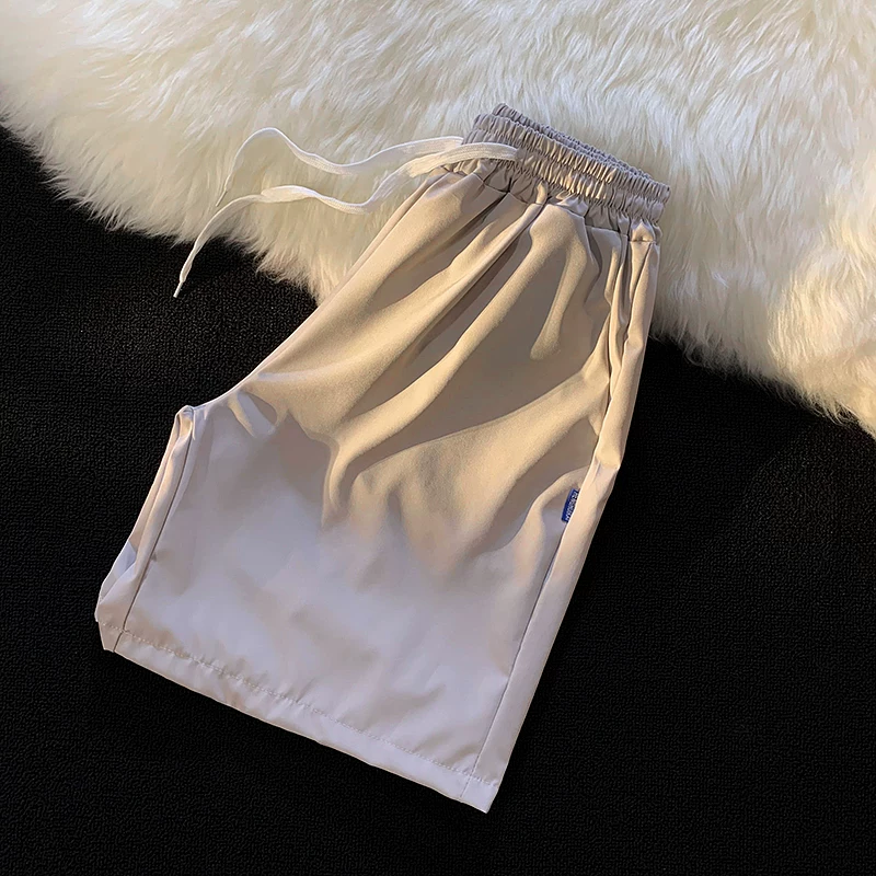 Quần short nam mùa hè chất liệu lụa băng mỏng, quần dài vừa phải màu trơn phong cách thường ngày, kiểu dáng thời thượng Hồng Kông, quần năm phần dáng rộng đa năng.