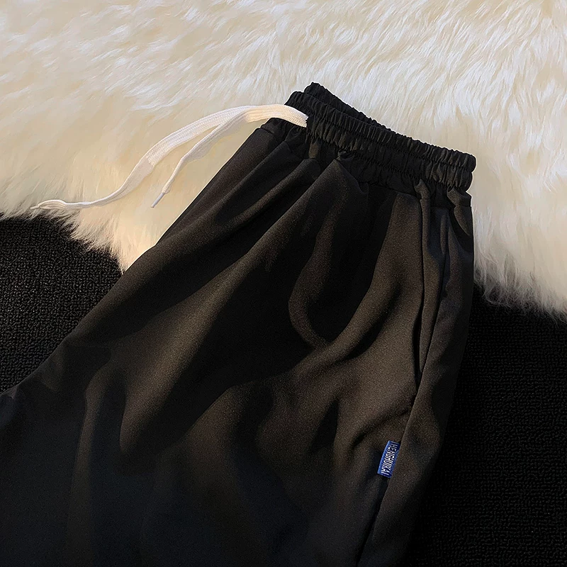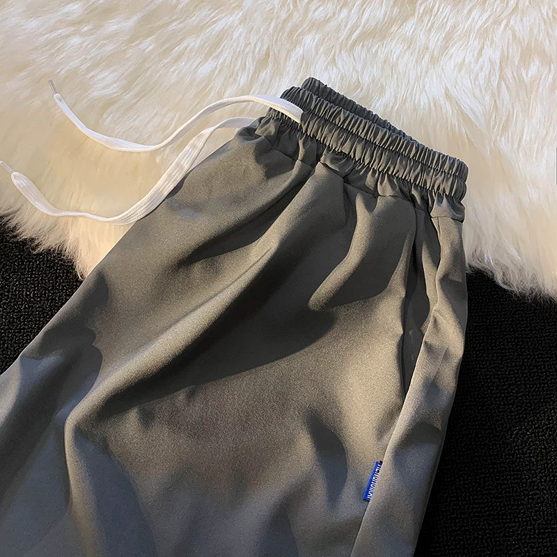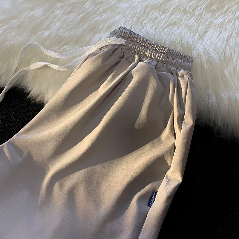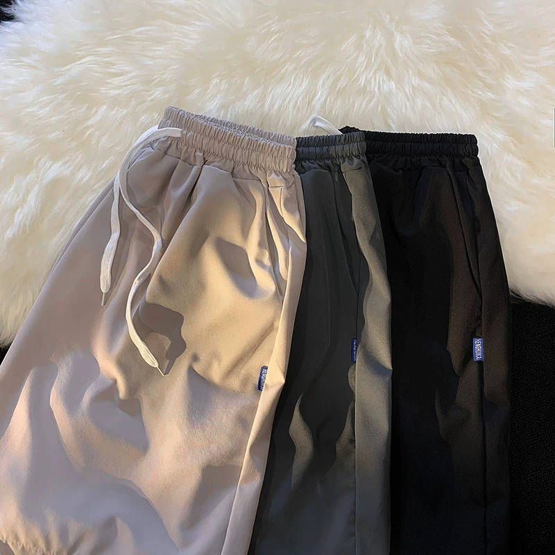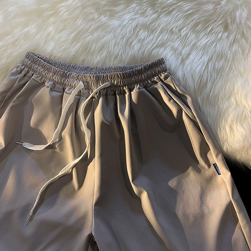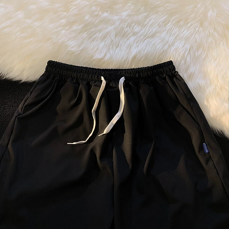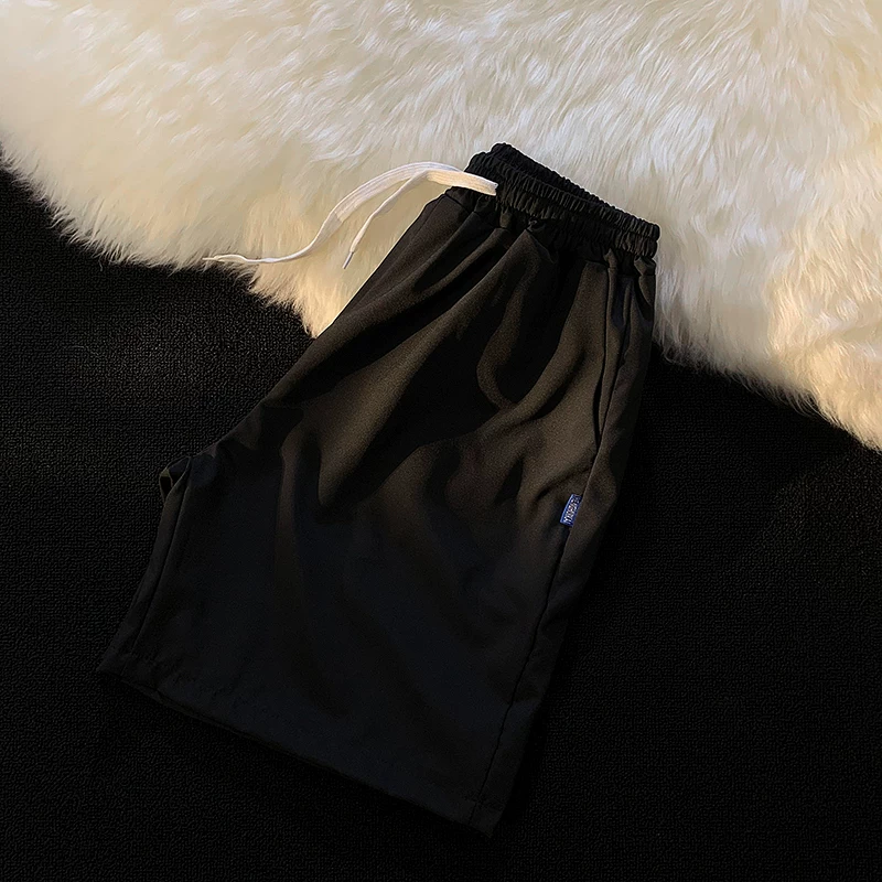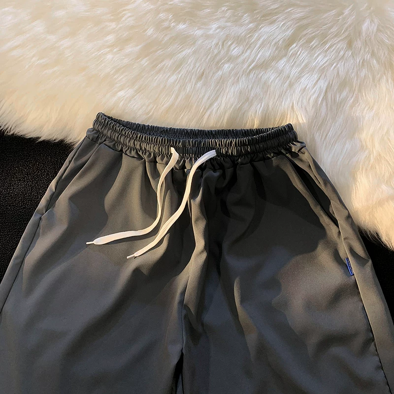 Quần short nam mùa hè chất liệu lụa băng mỏng, quần dài vừa phải màu trơn phong cách thường ngày, kiểu dáng thời thượng Hồng Kông, quần năm phần dáng rộng đa năng.