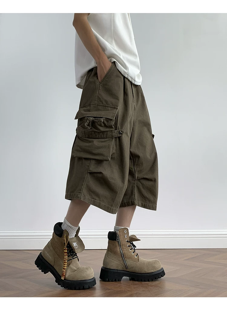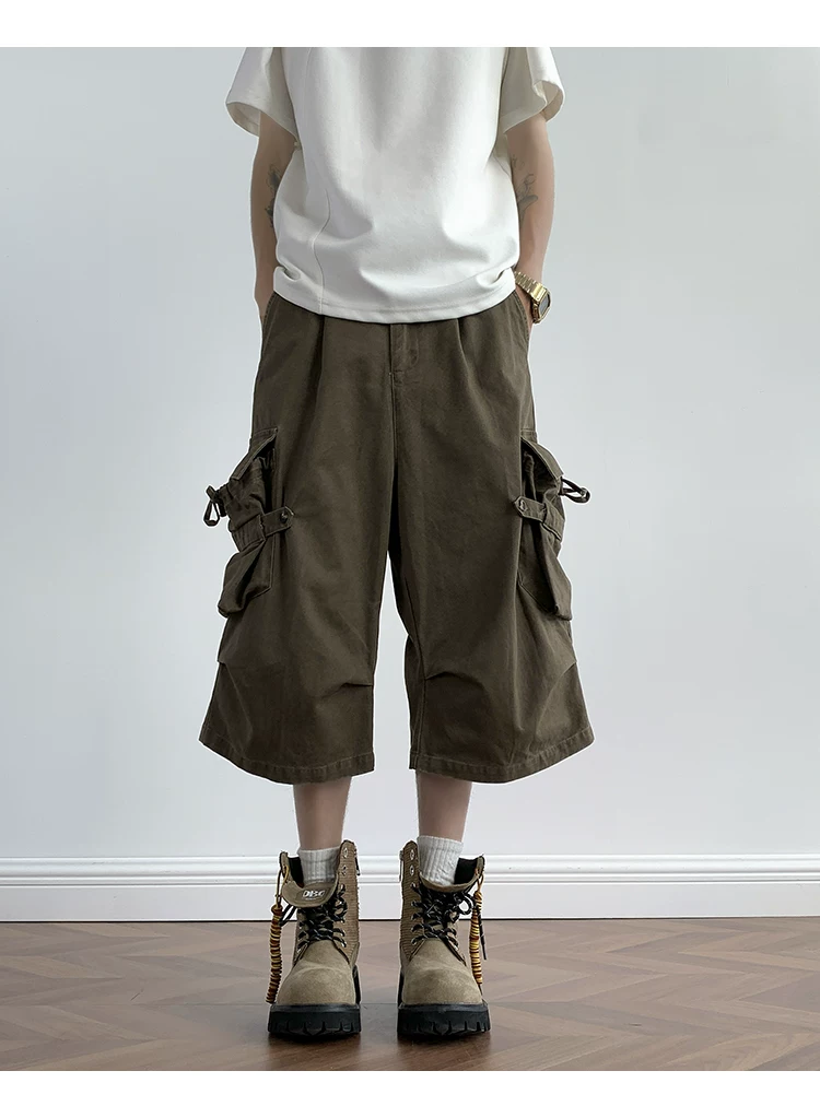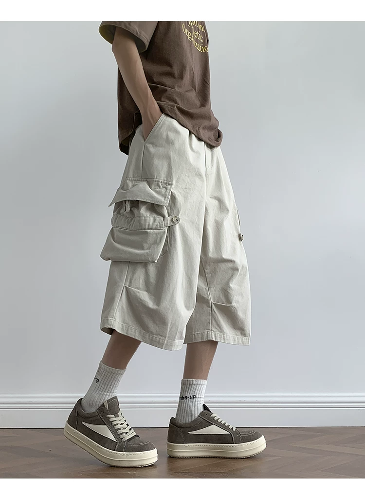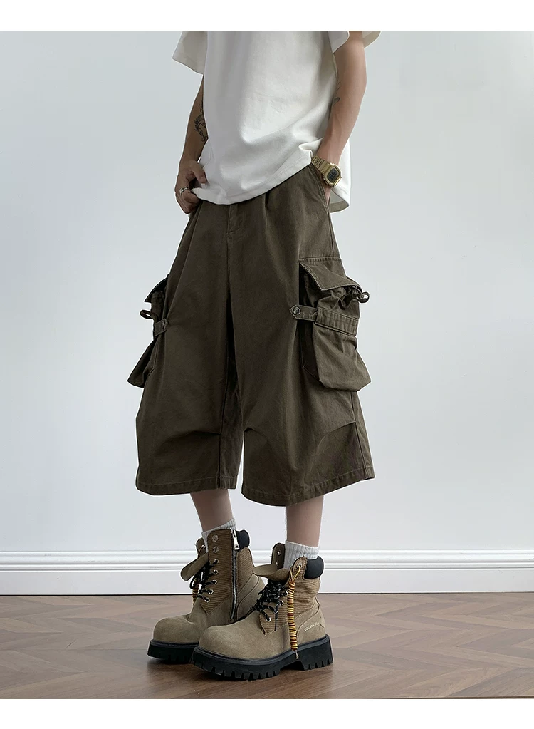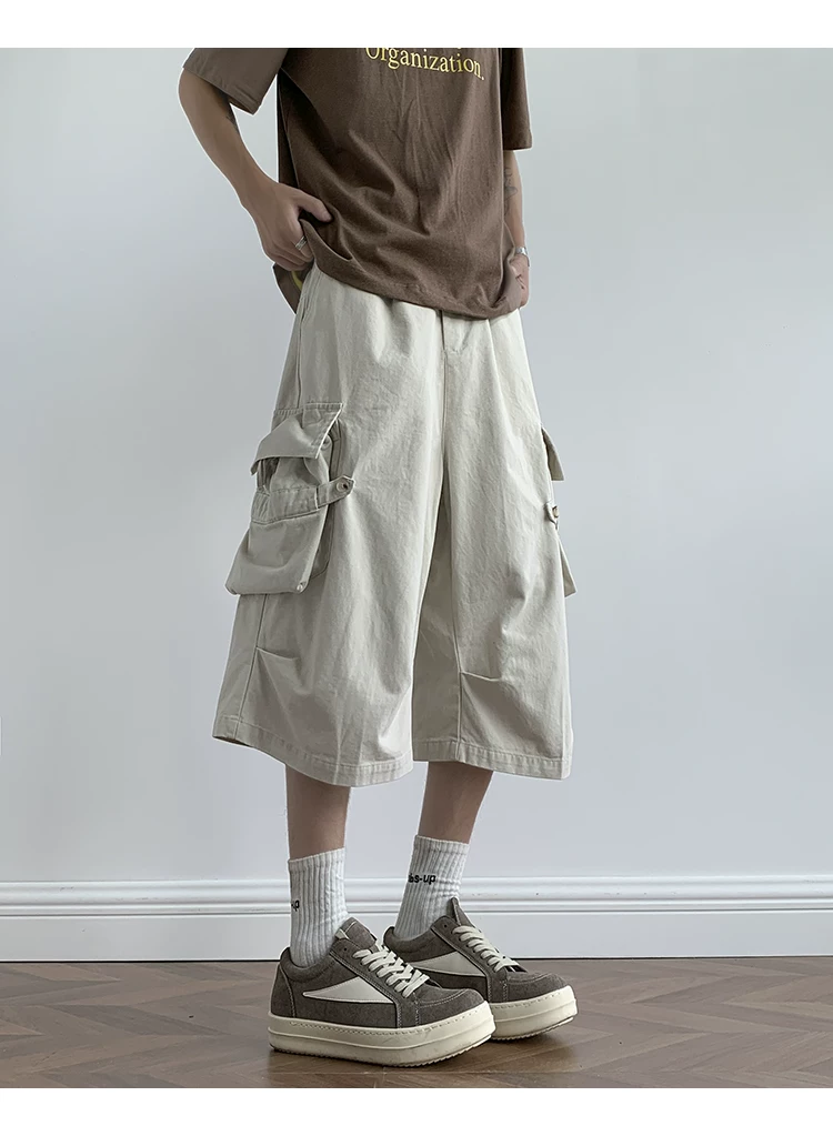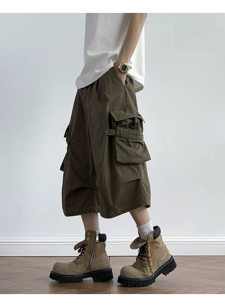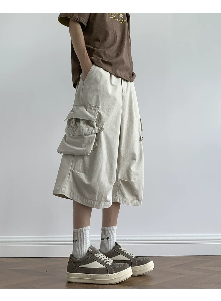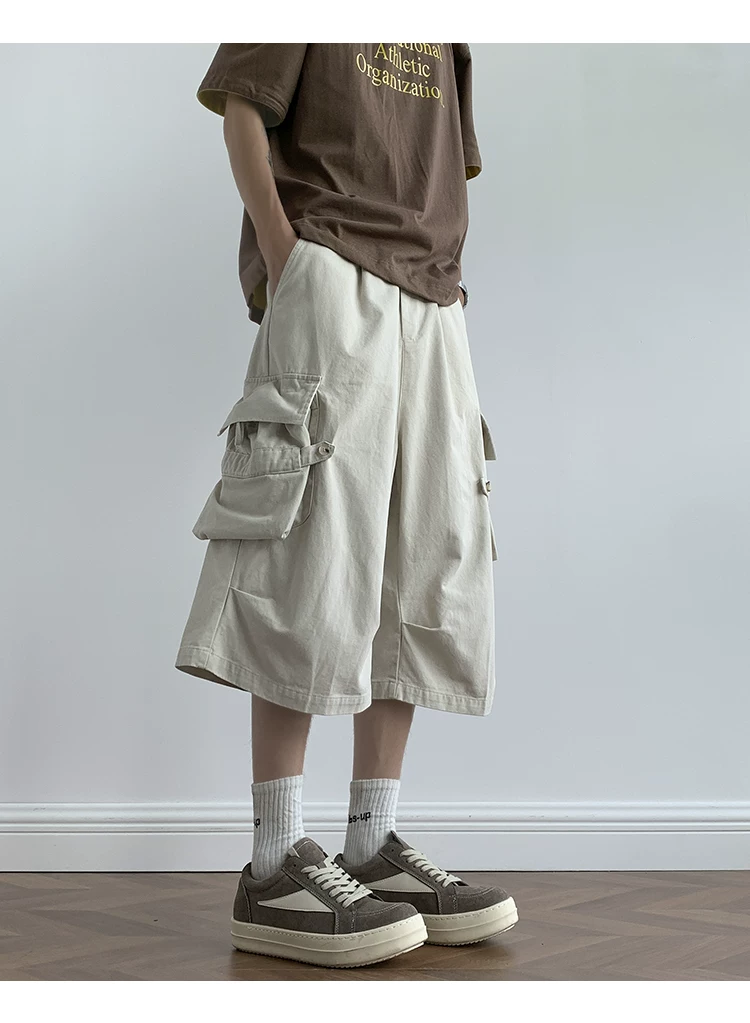 Quần short nam mùa hè thời trang, dáng rộng, ống thẳng, kiểu cargo, có túi lớn, phong cách retro Mỹ.