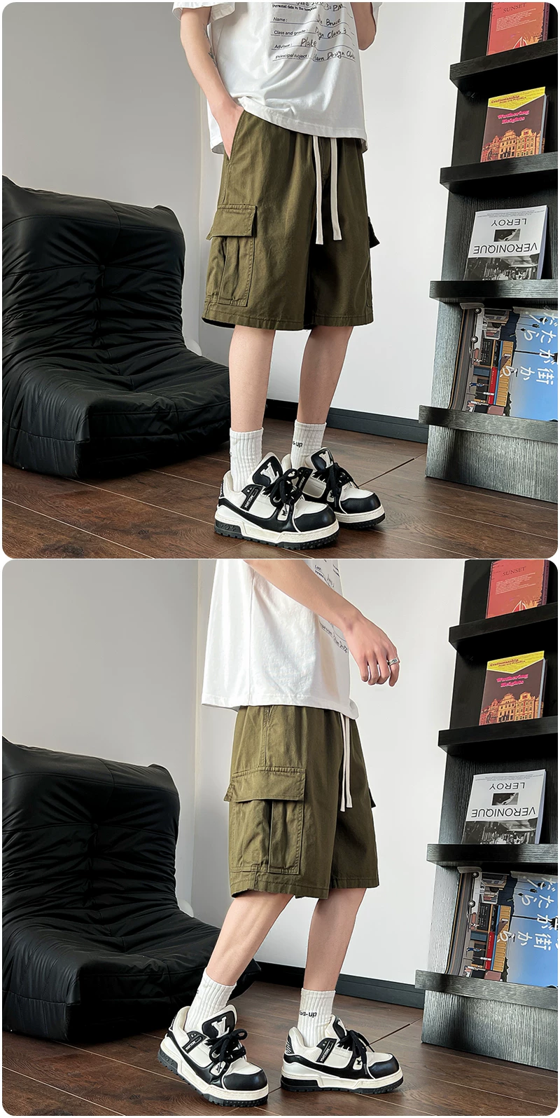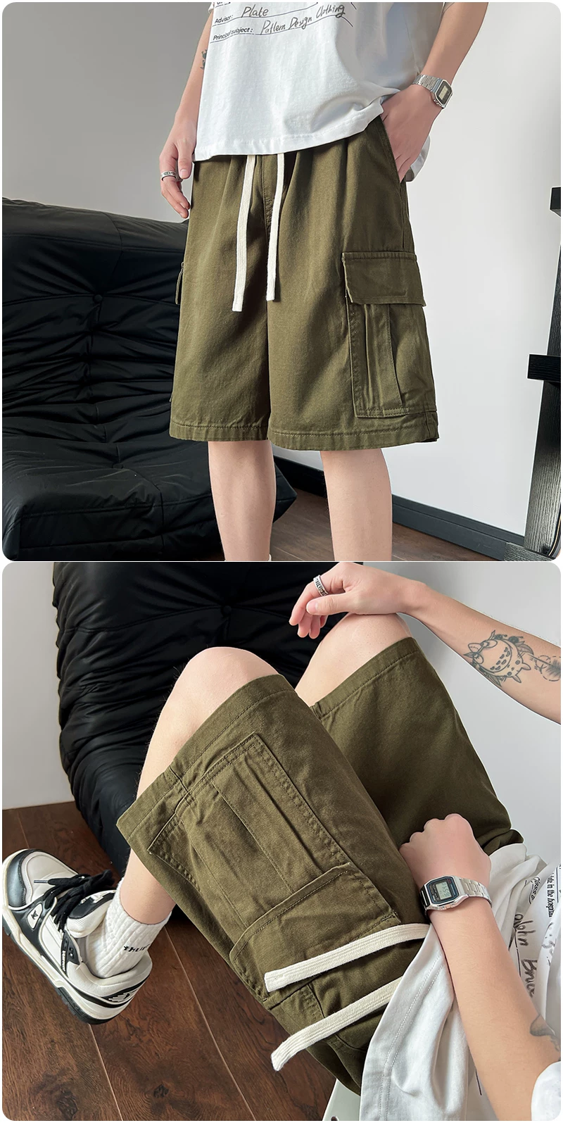 - Quần short nam nhiều túi đã qua giặt, quần lửng đa năng mùa hè, quần short ống rộng dáng lửng phong cách Nhật Bản thời thượng.