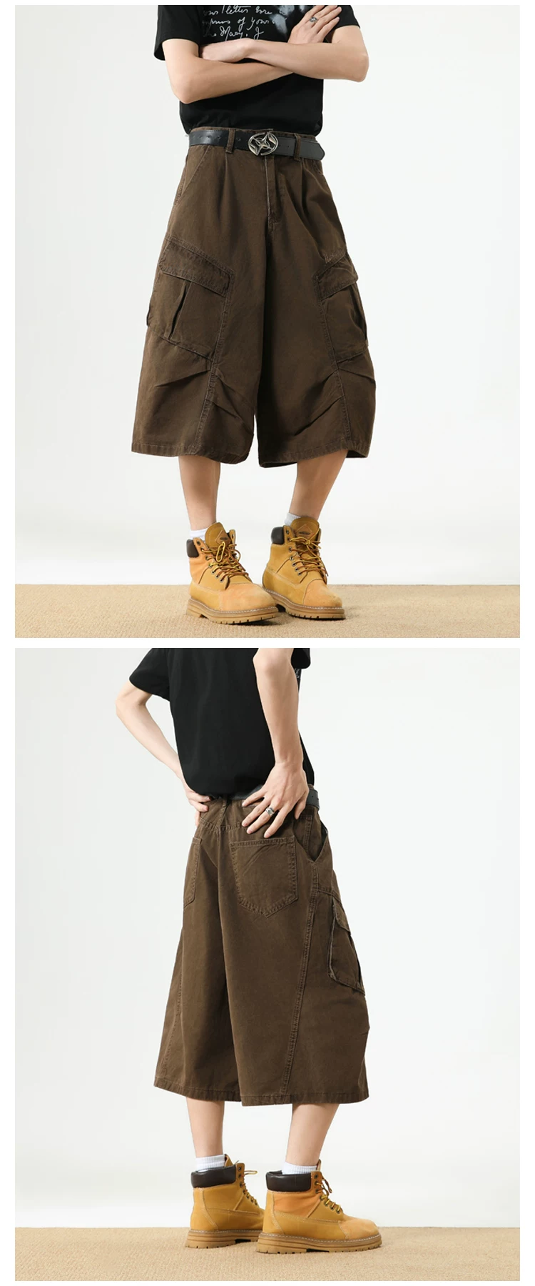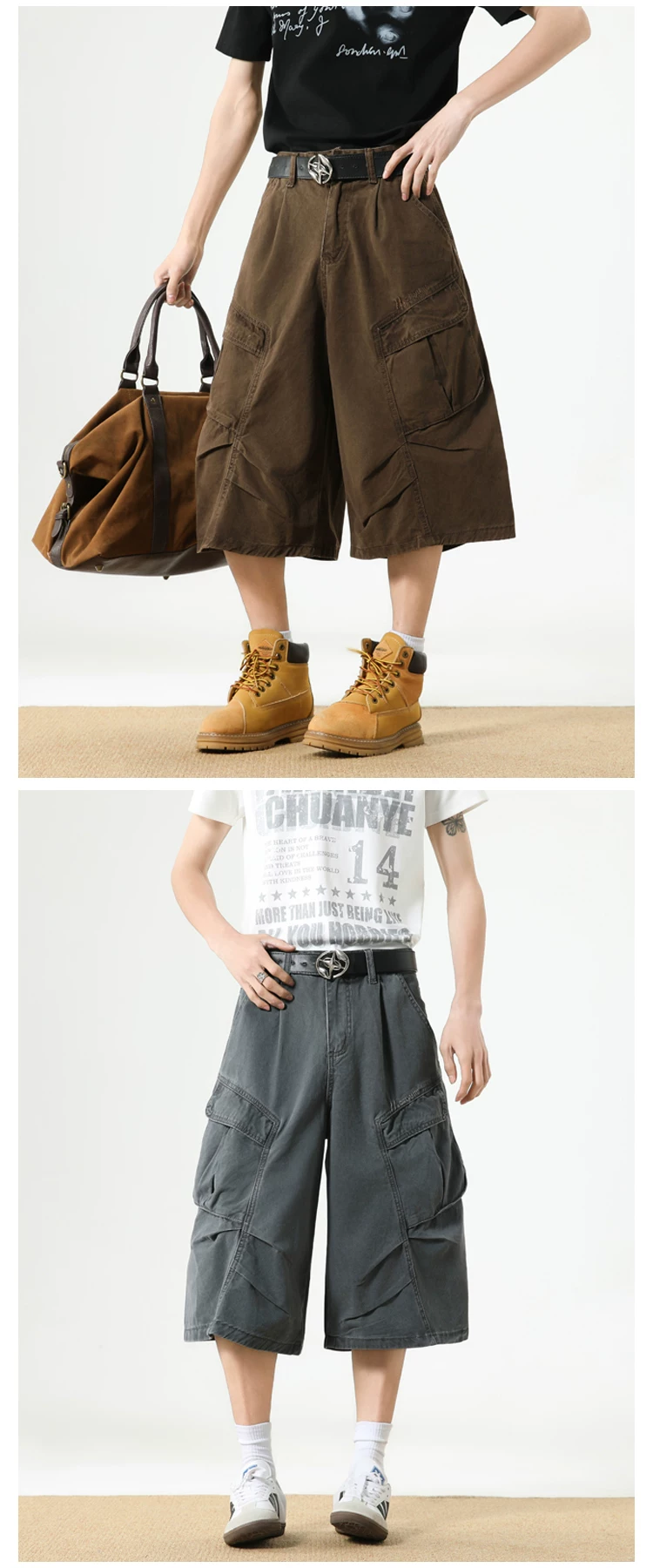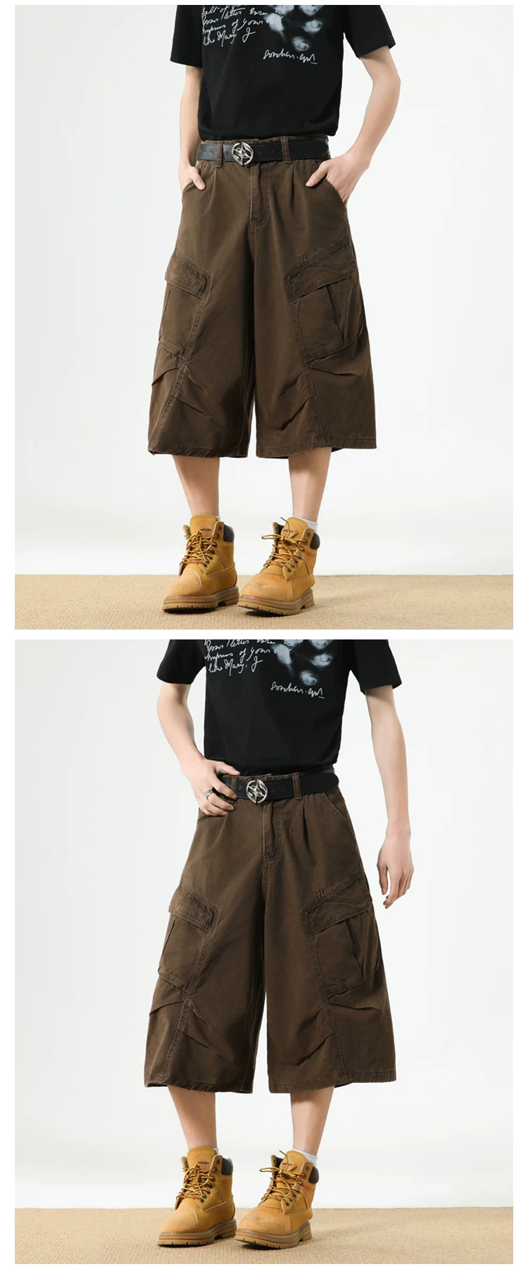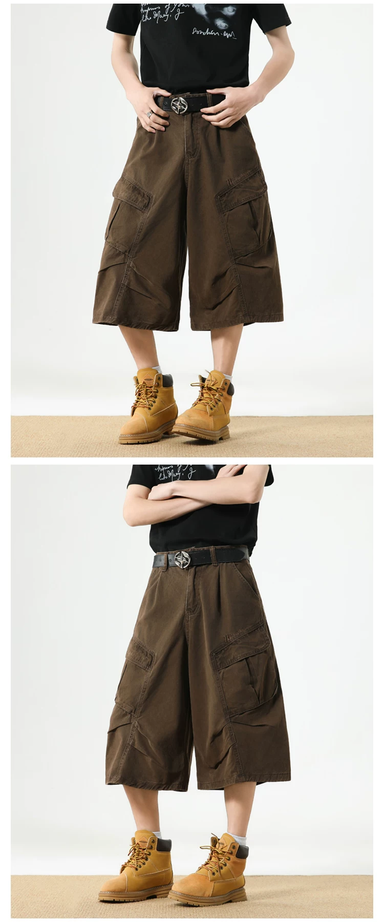 - Quần short nam nhiều túi, thương hiệu thời thượng, dáng rộng, thiết kế xếp ly, quần ống đứng, quần short ống rộng mùa hè.