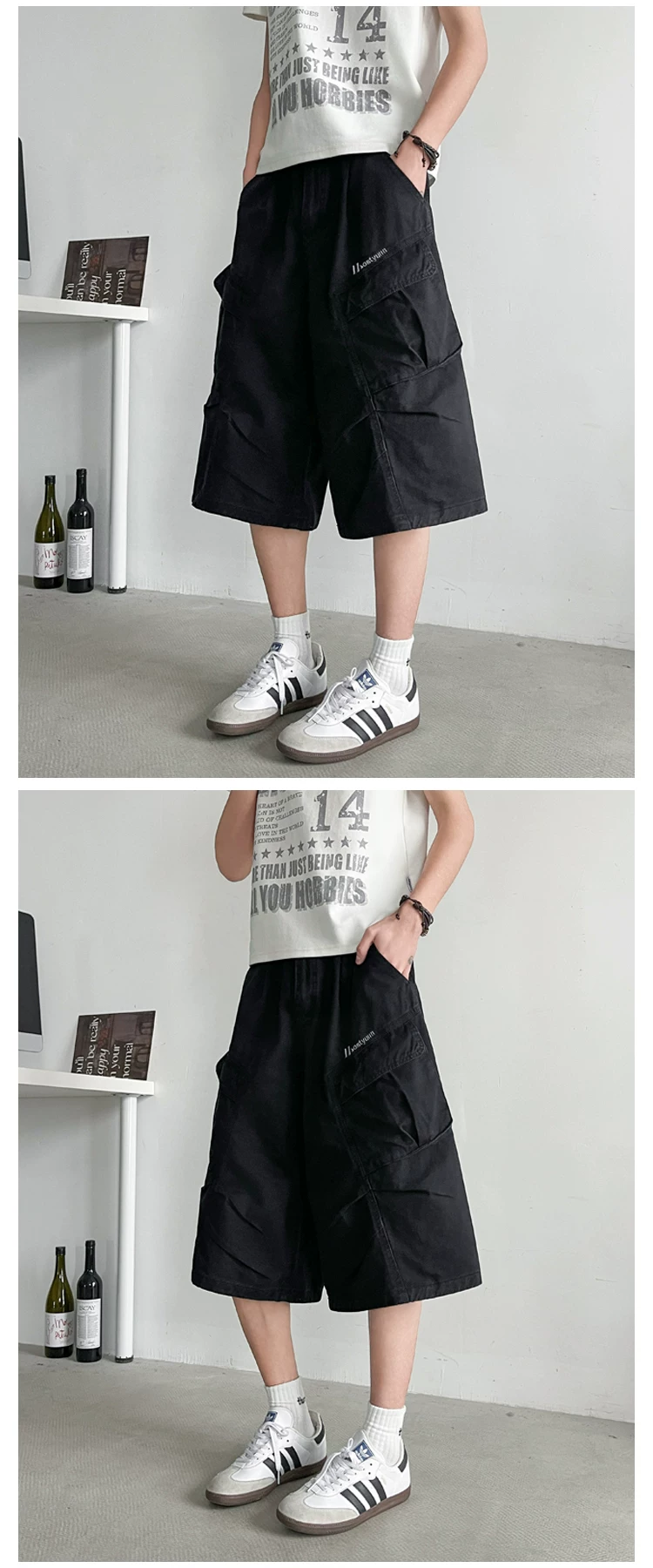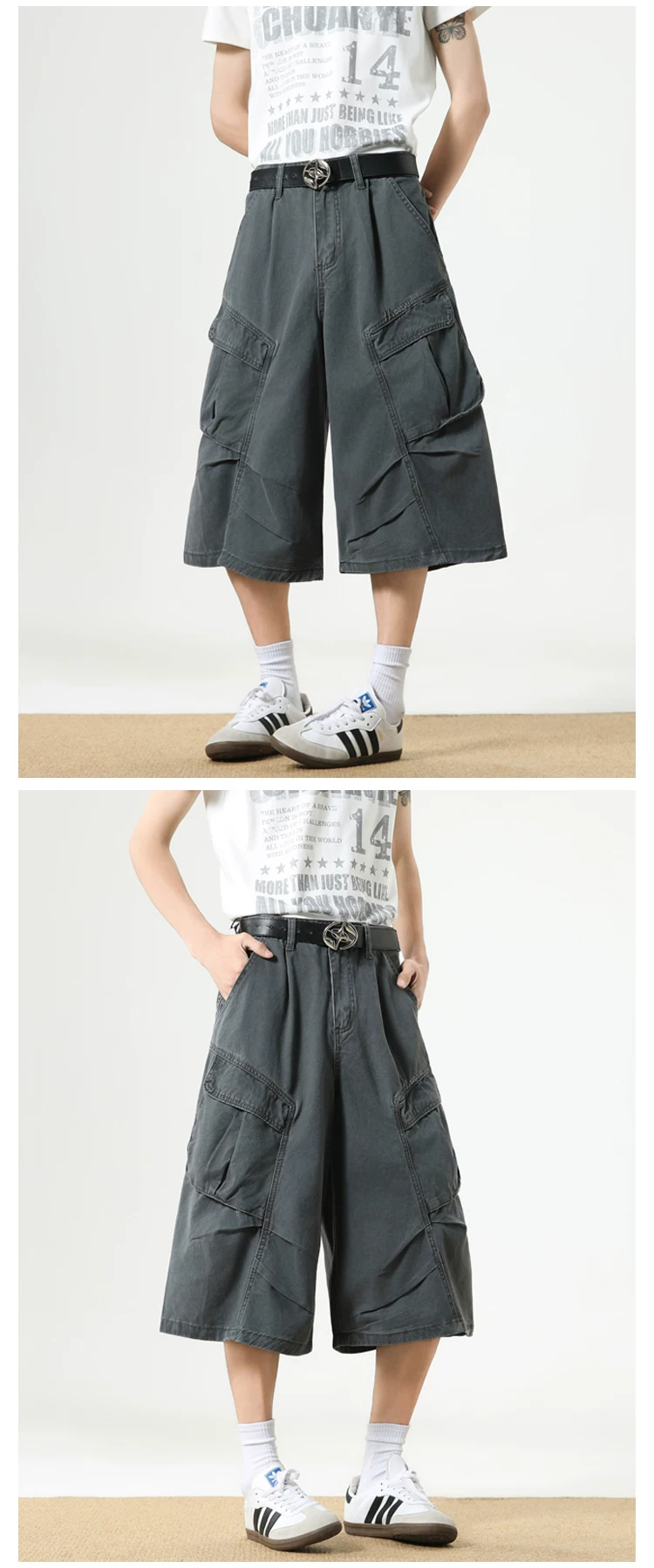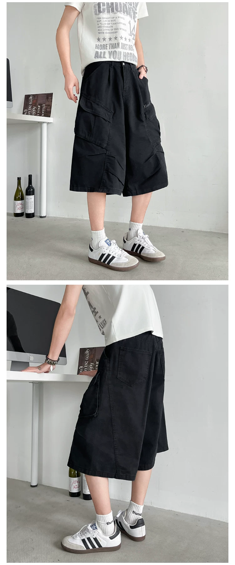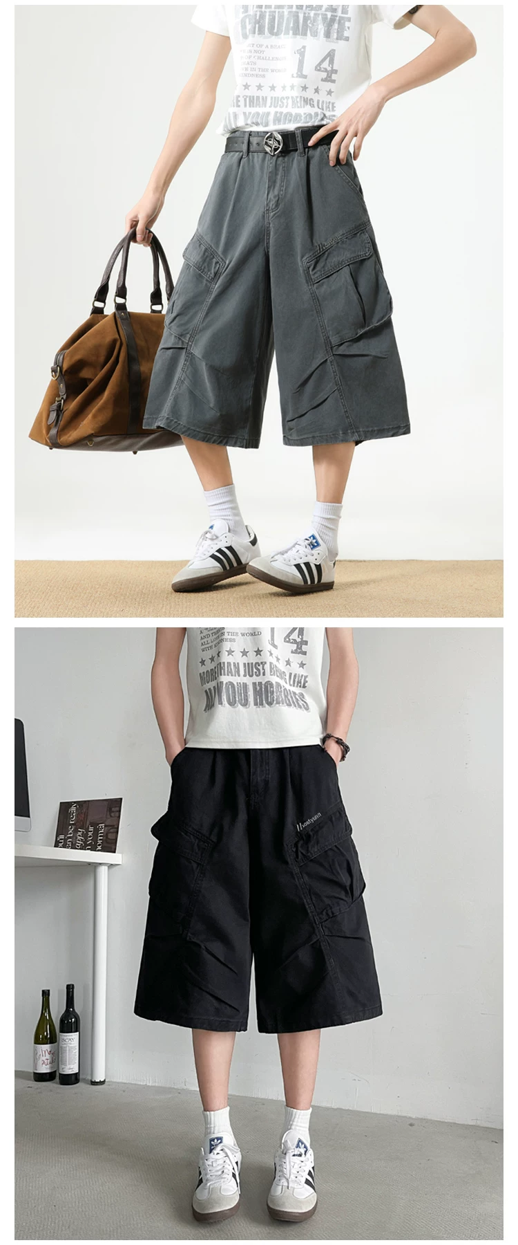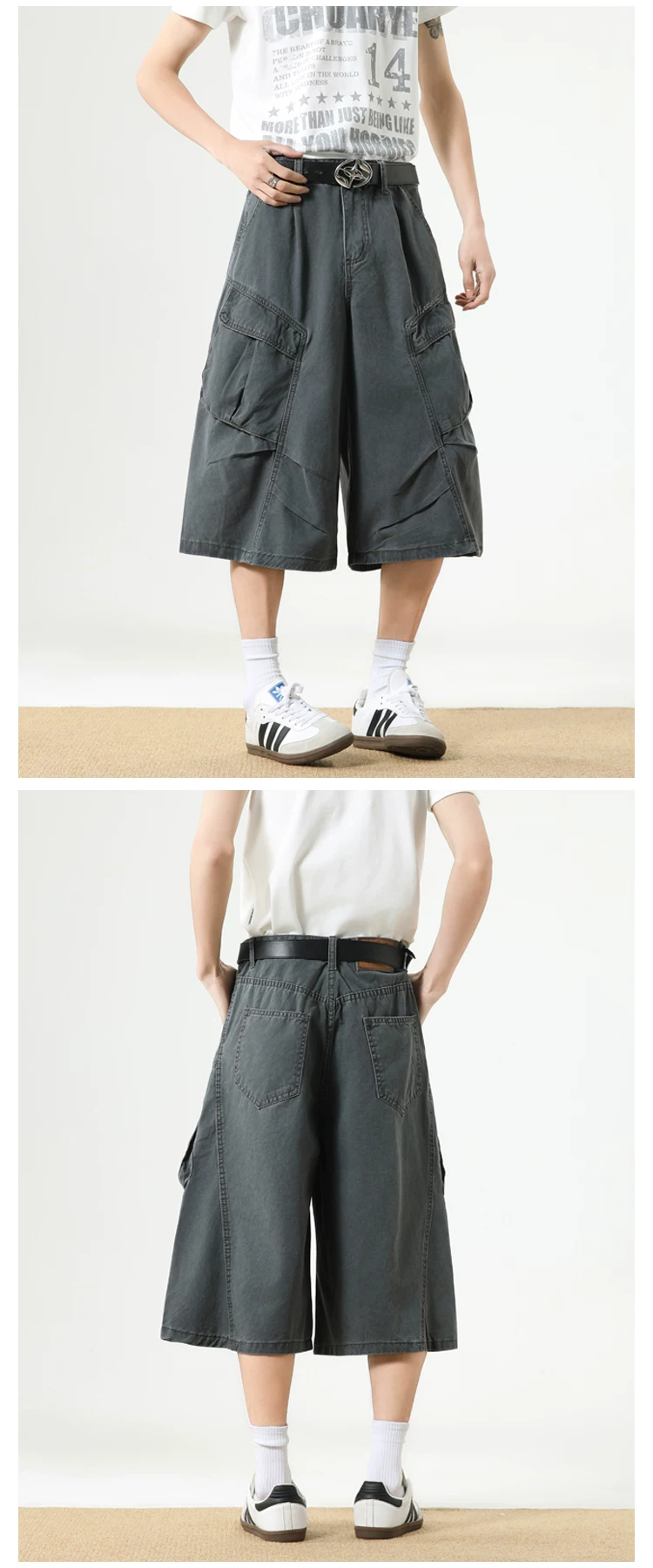 - Quần short nam nhiều túi, thương hiệu thời thượng, dáng rộng, thiết kế xếp ly, quần ống đứng, quần short ống rộng mùa hè.