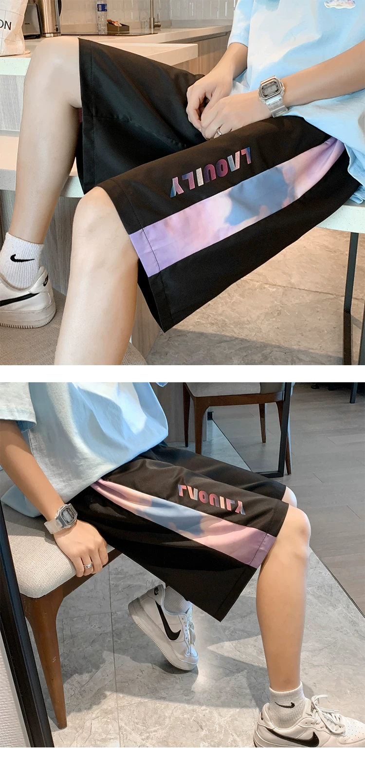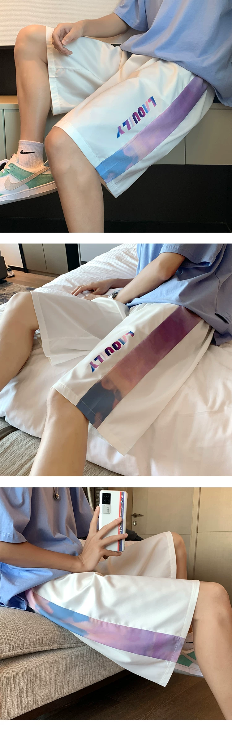Quần short nam phối màu gradient, kiểu dáng Hàn Quốc, thời trang, thể thao, năng động, ống đứng, rộng rãi, mùa hè, 5 phần.
