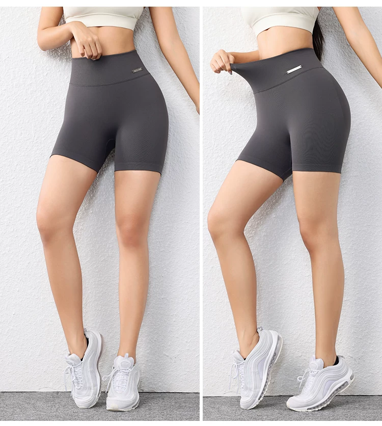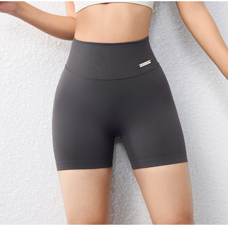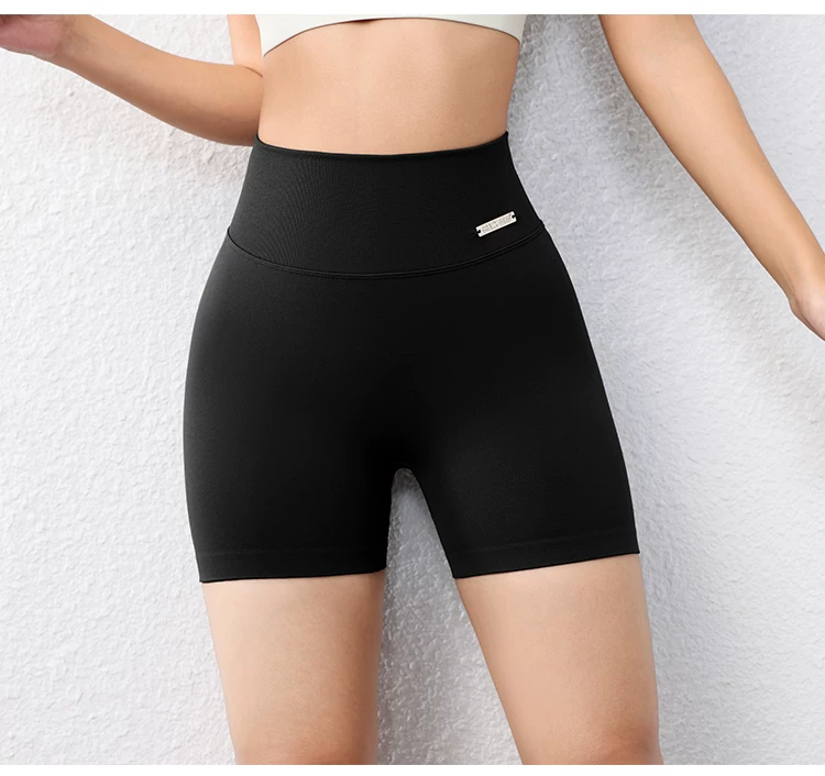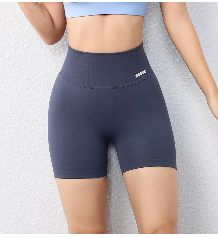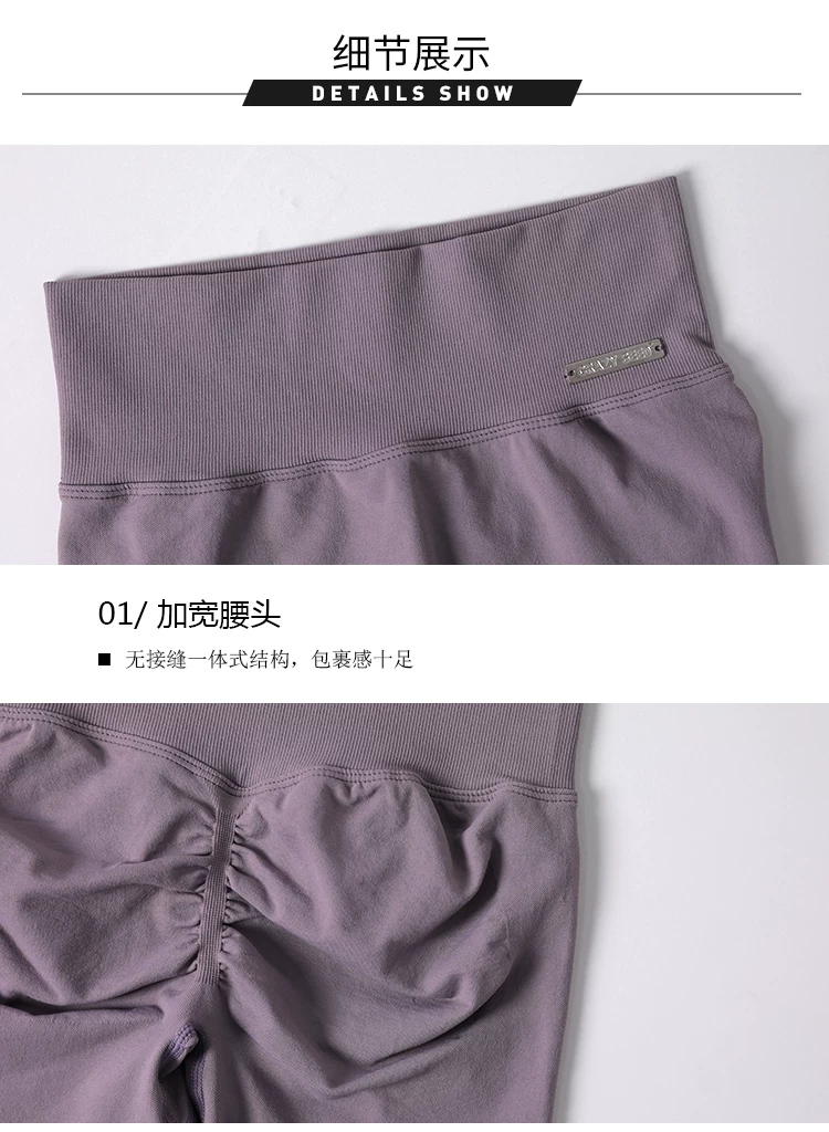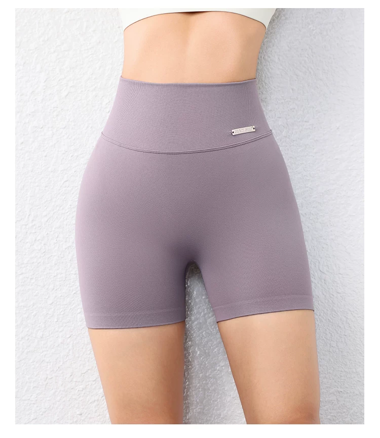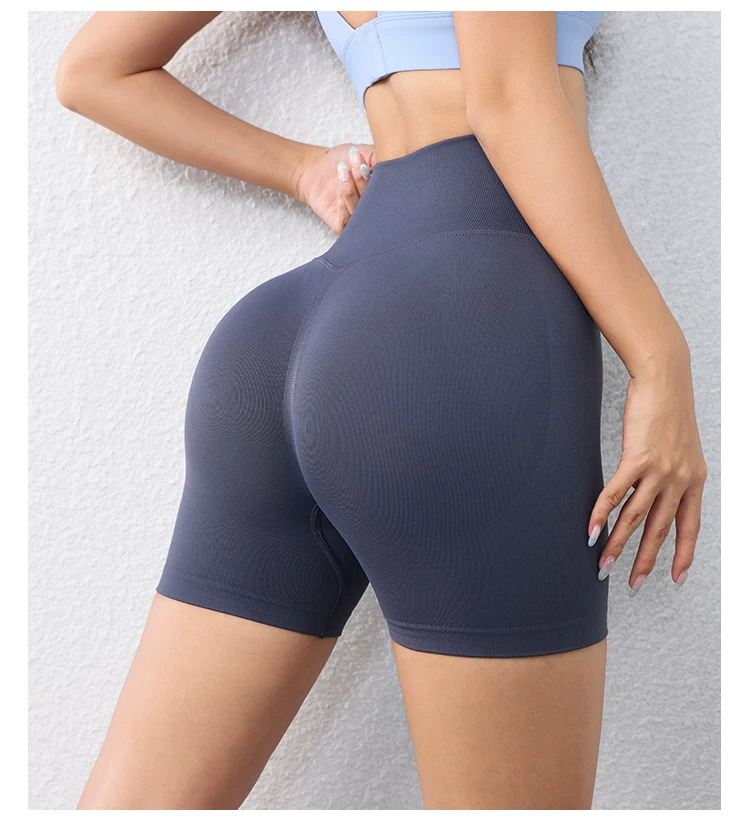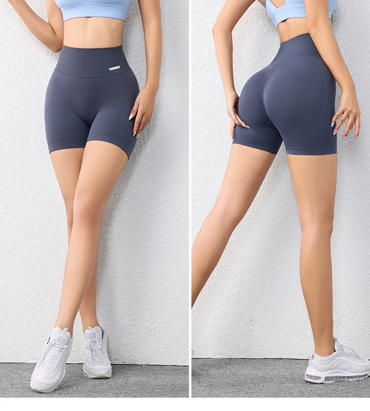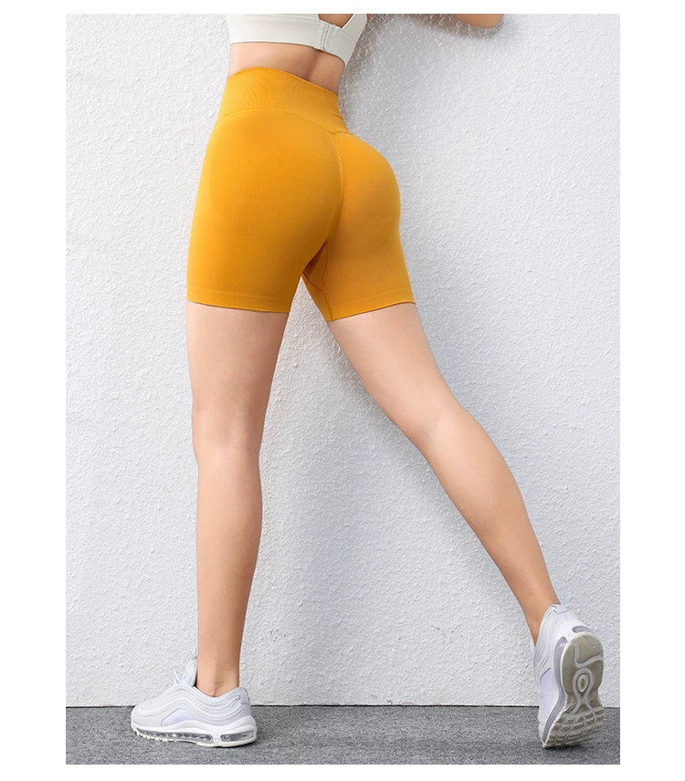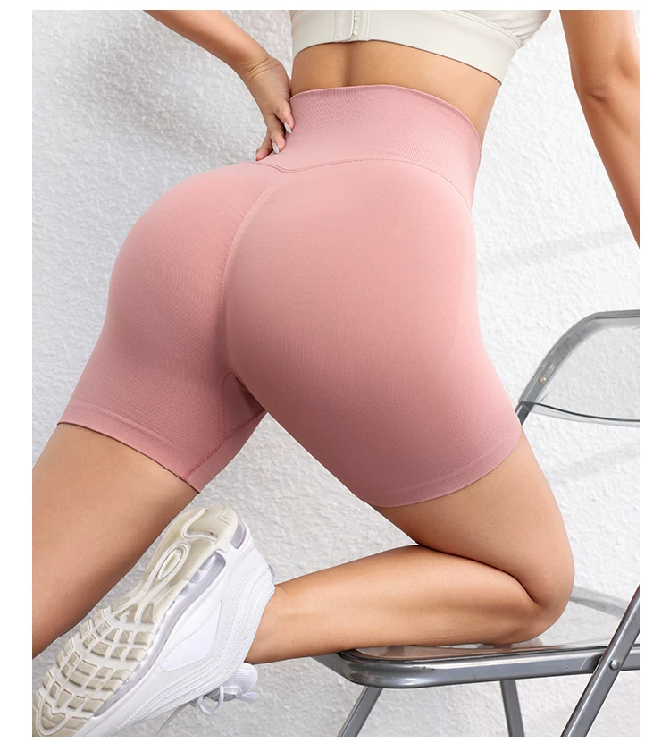 Quần short ôm sát nâng mông dành cho nữ màu đào, quần short tập thể dục phong cách Âu Mỹ không đường may, nhanh khô, quần tập yoga chạy bộ dài ba phần tư.