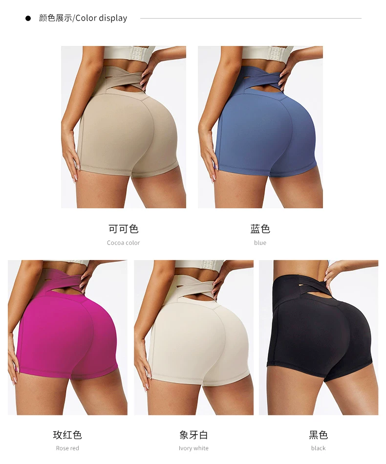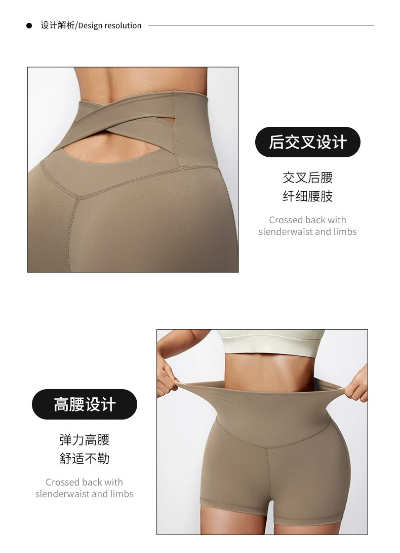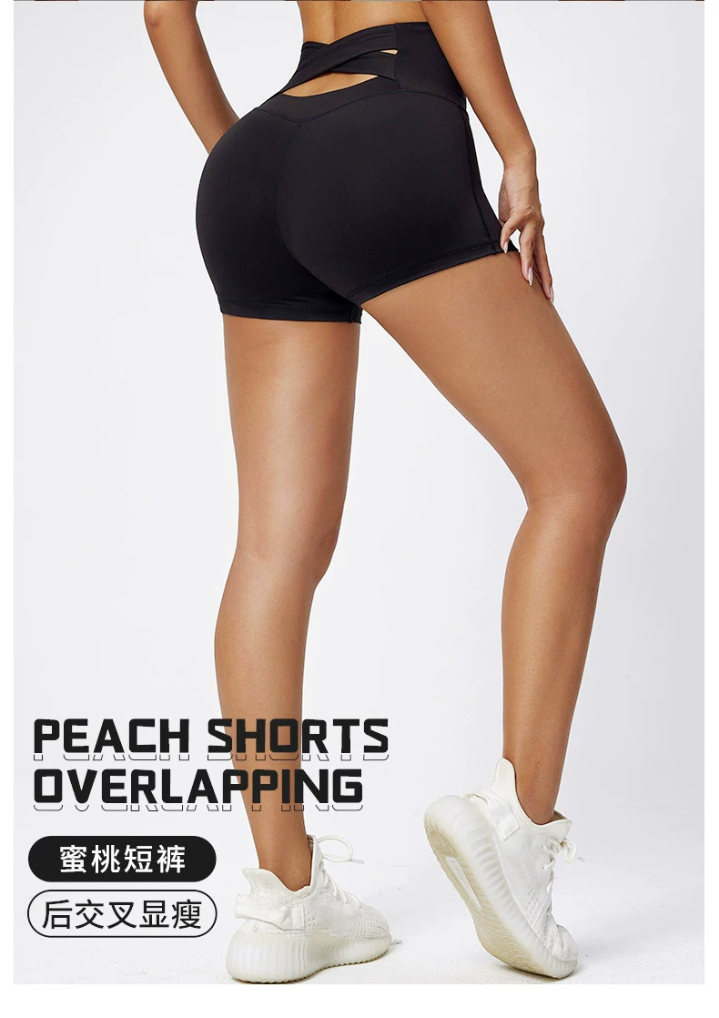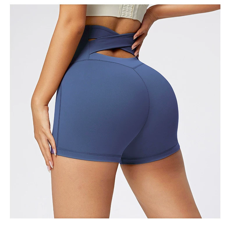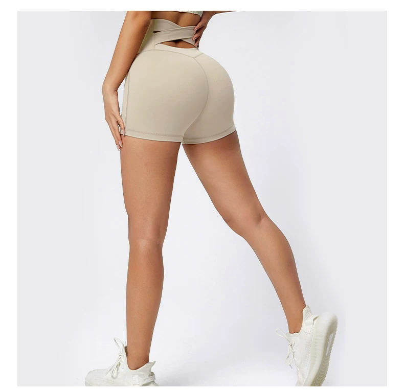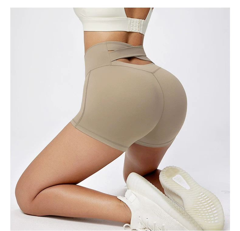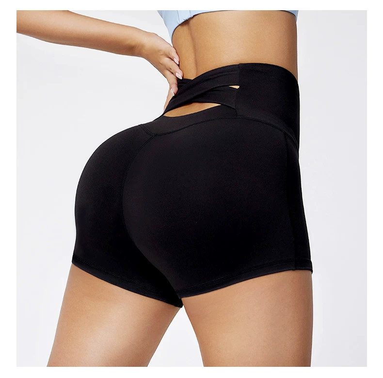 Quần short tập yoga thể thao nâng mông, eo cao, ôm bụng, chất liệu mềm mại như không mặc, thiết kế chéo eo gợi cảm.