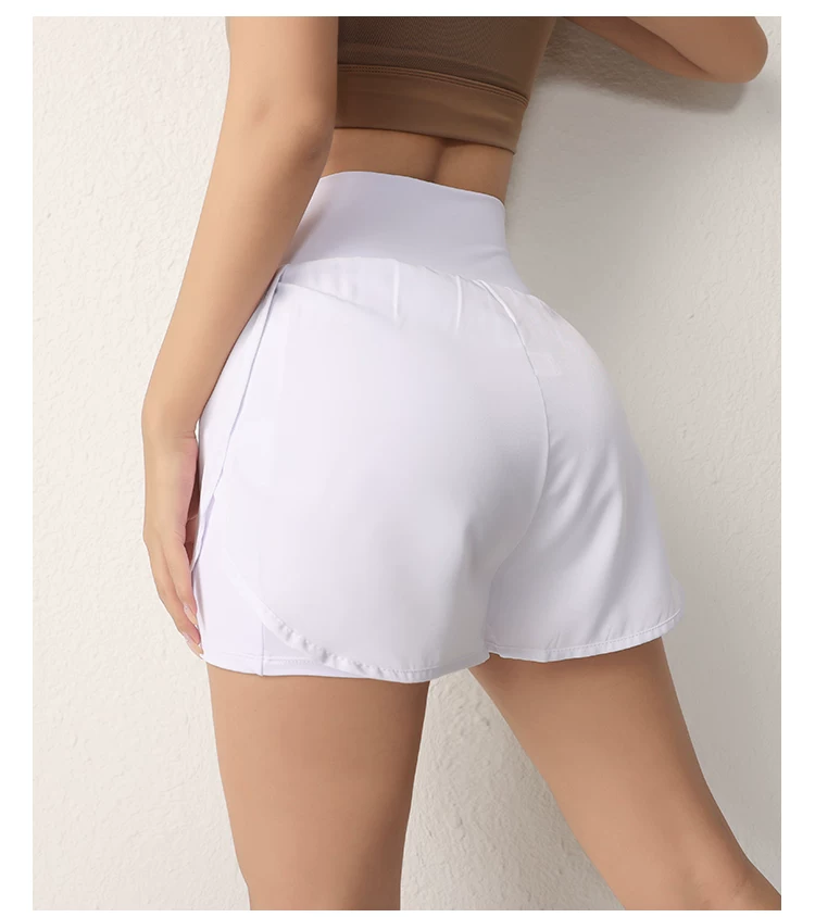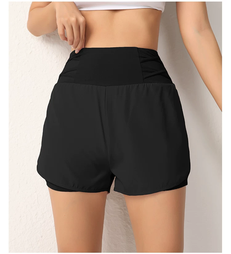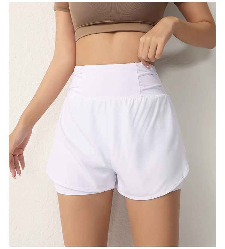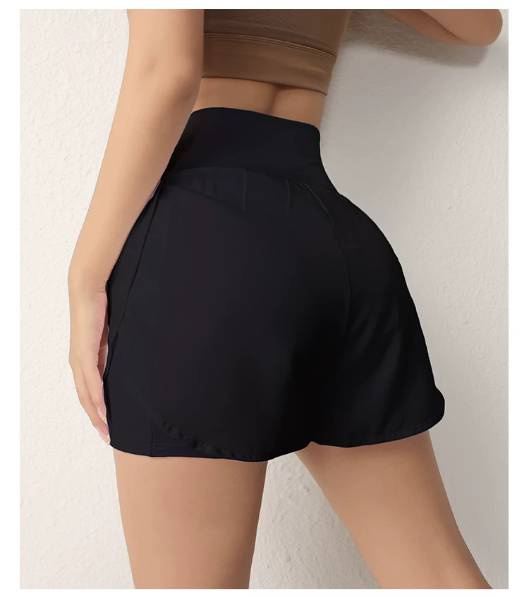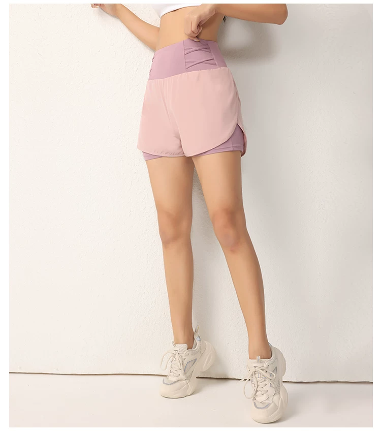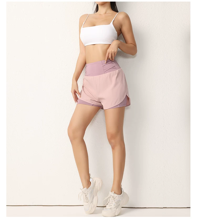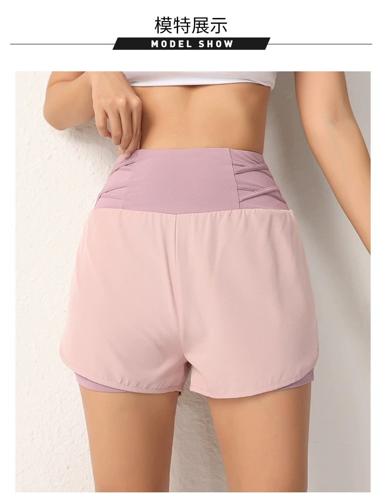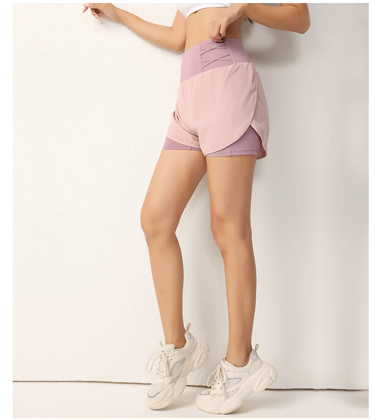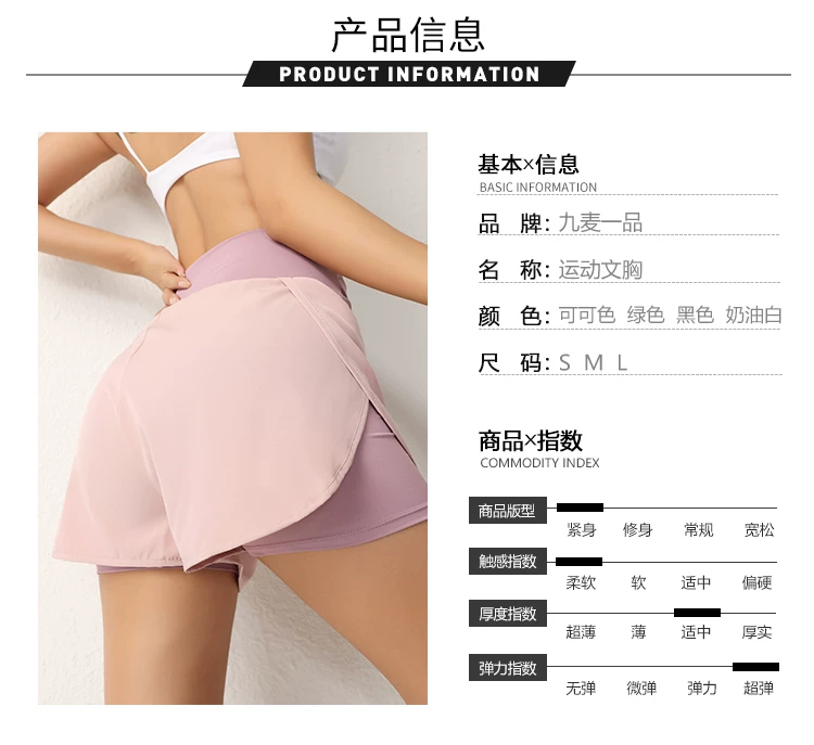 Quần short thể thao giả hai mảnh Jiumai Yipin dành cho nữ, quần tập yoga chạy bộ chống lộ, cạp cao, giản dị, thoáng khí, nhanh khô.