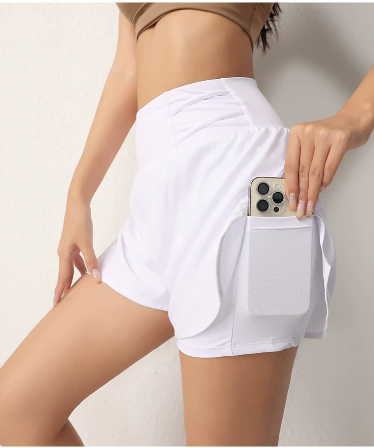 - Quần short thể thao giả hai mảnh Jiumai Yipin dành cho nữ, quần tập yoga chạy bộ chống lộ, cạp cao, giản dị, thoáng khí, nhanh khô.