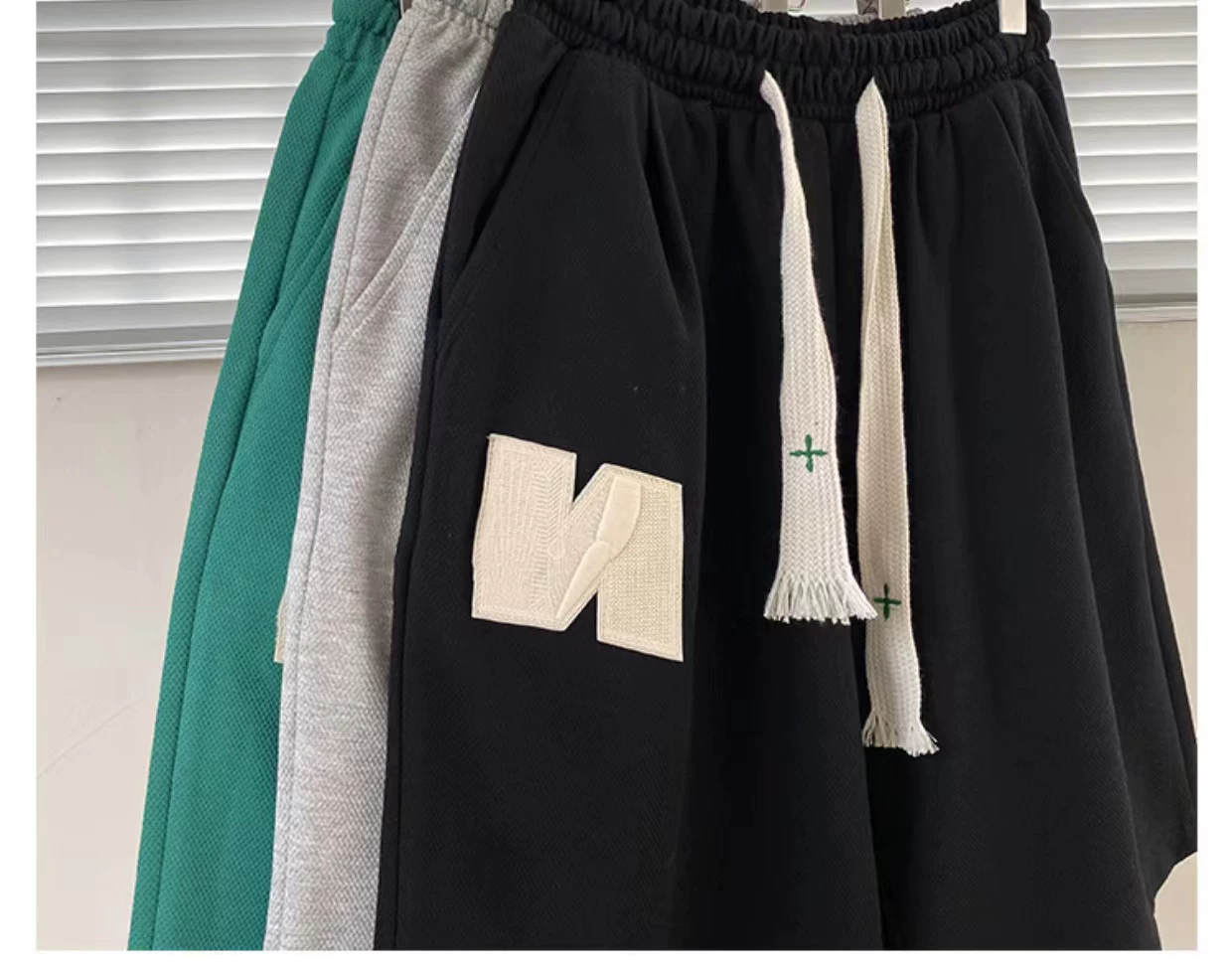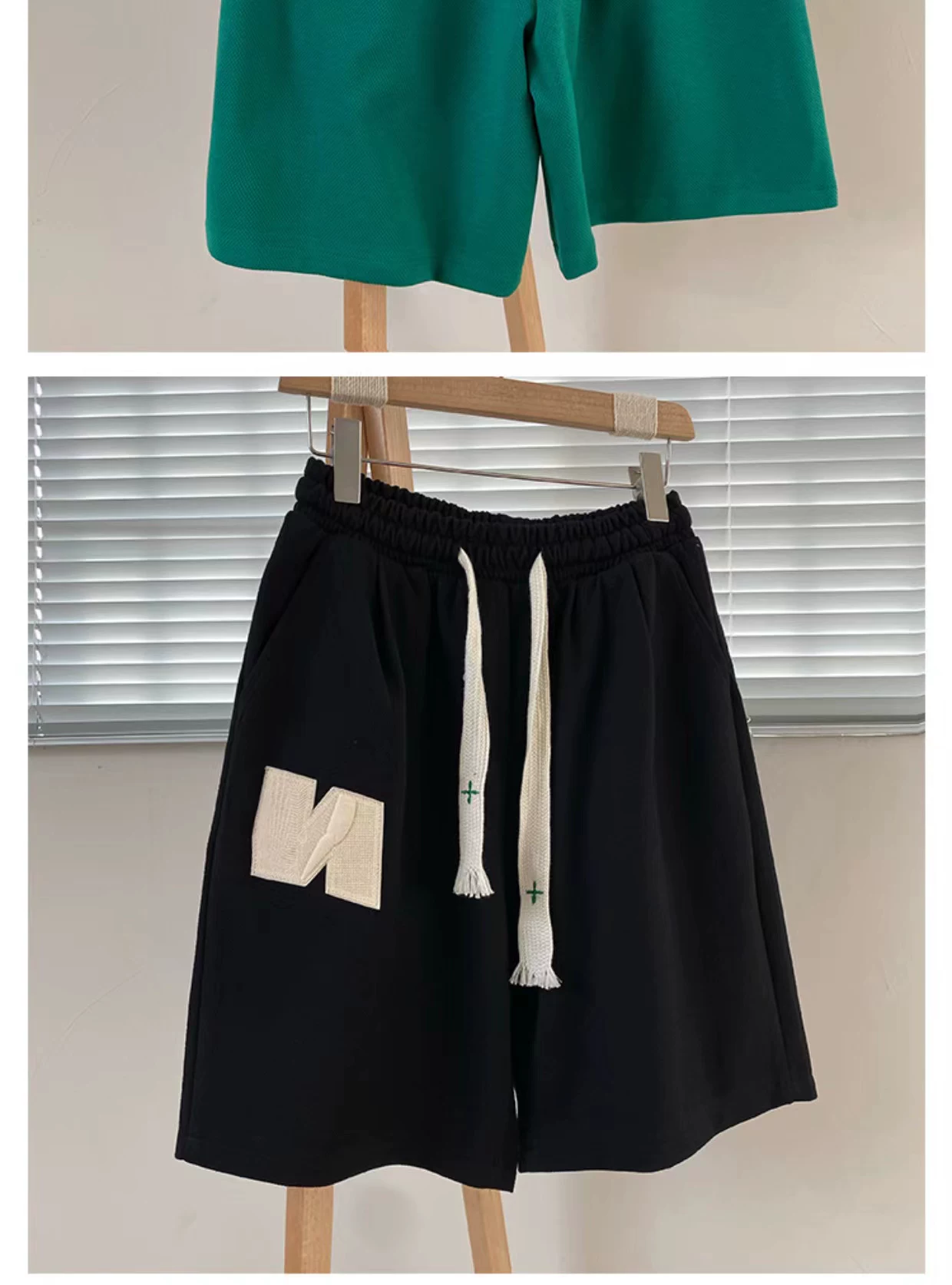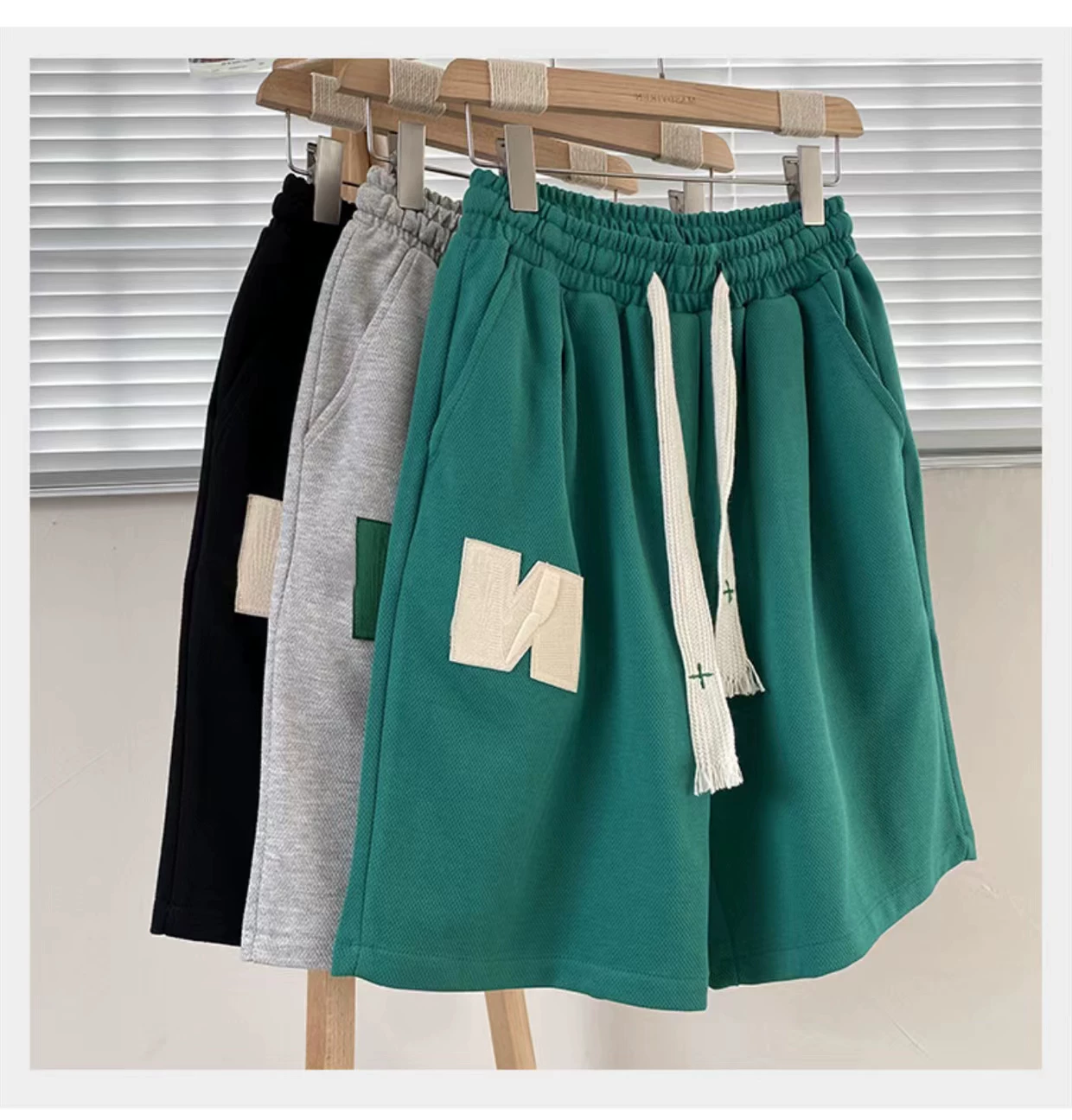 - Quần short thêu kiểu Mỹ dành cho nam, quần vải waffle thương hiệu thời thượng mùa hè, quần short thể thao rộng rãi phong cách đường phố.