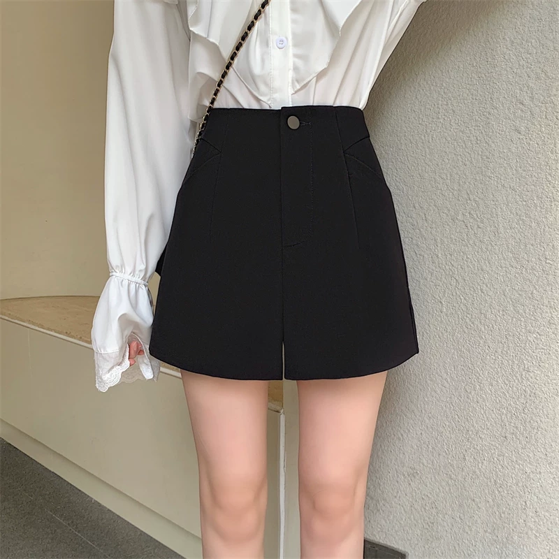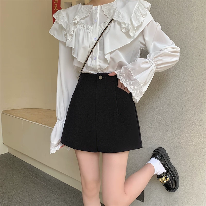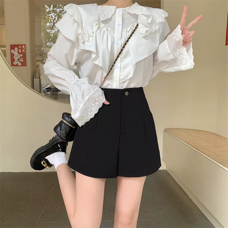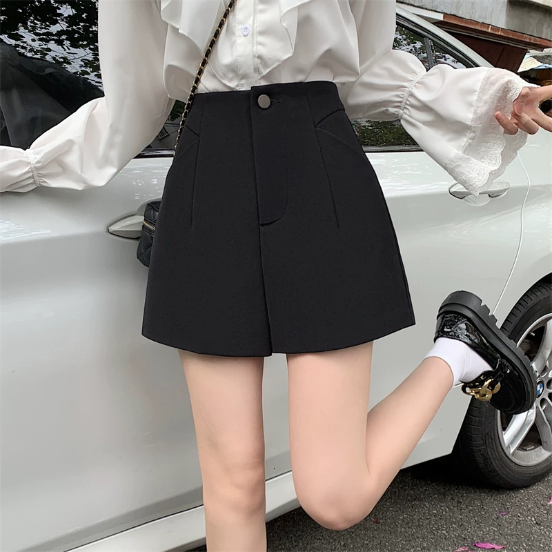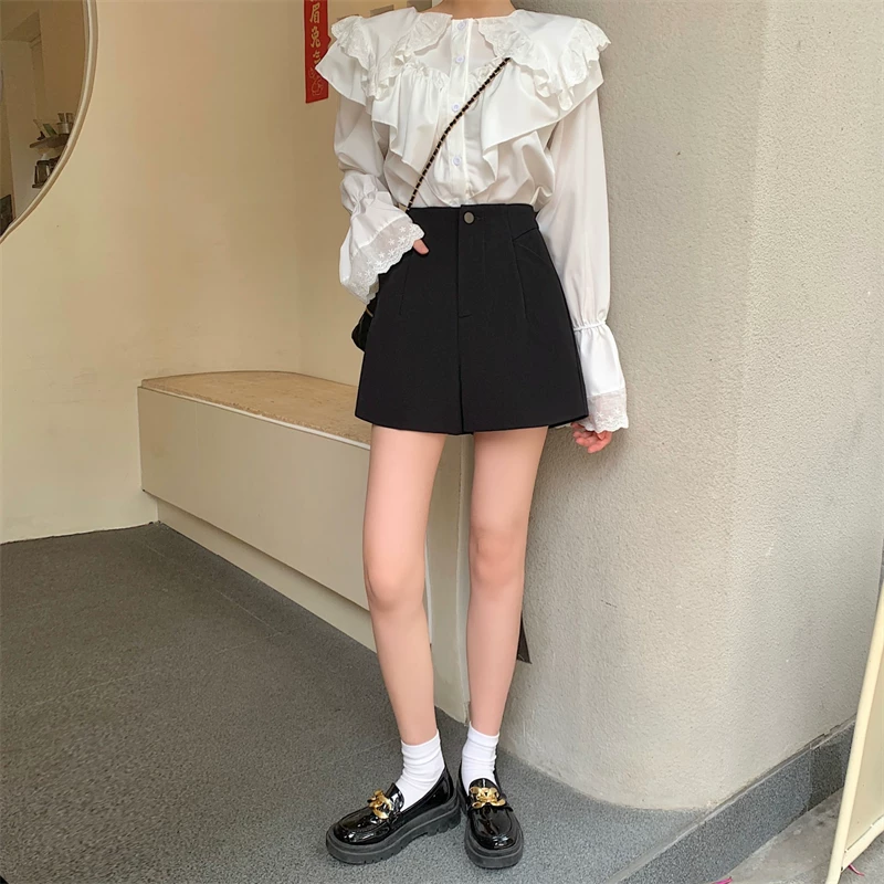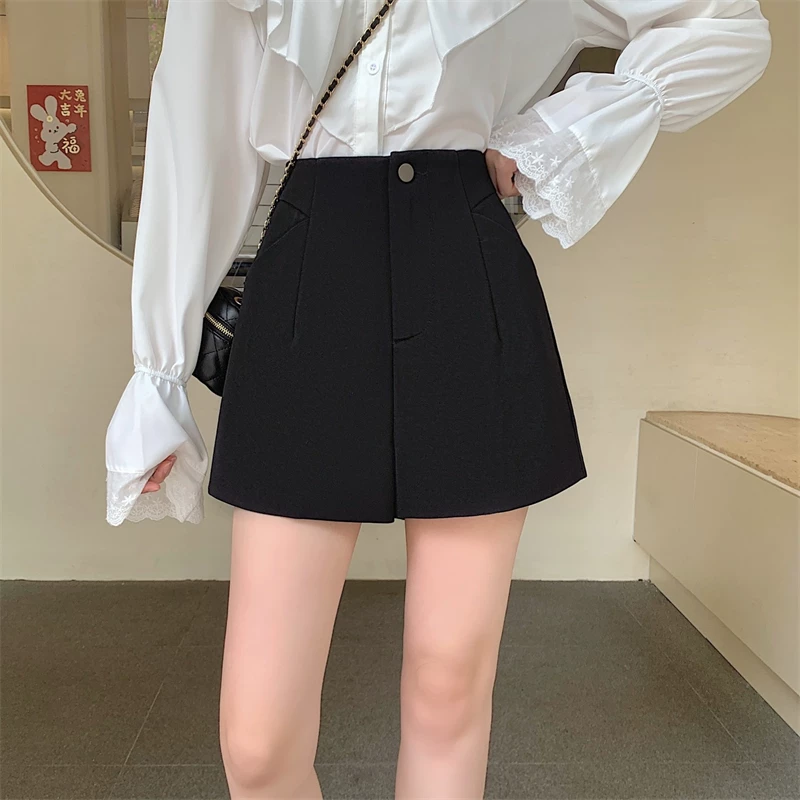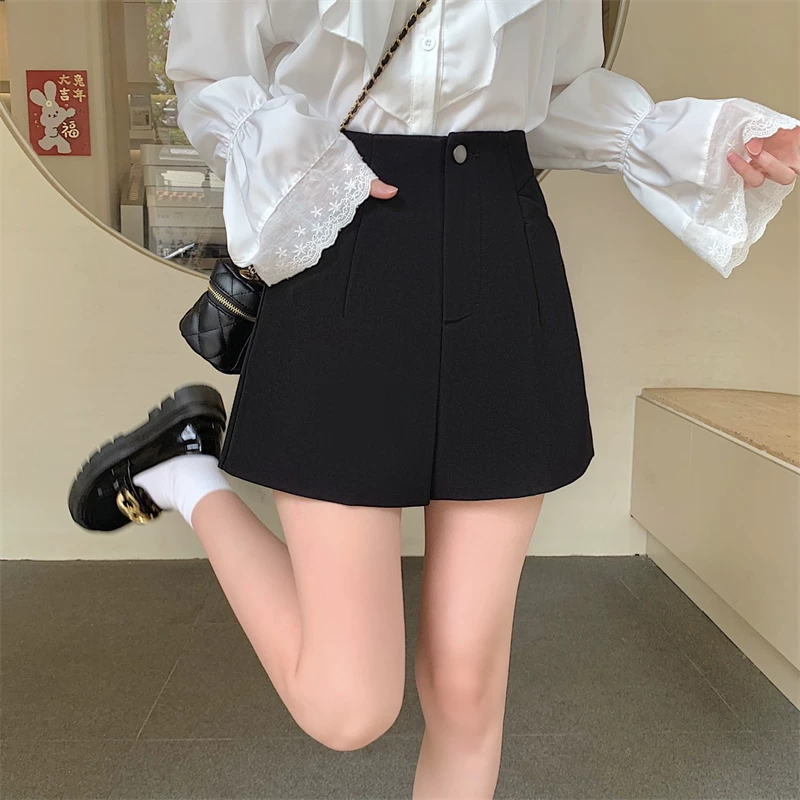 Quần short vest trắng cạp cao size lớn cho nữ 2025, quần ống rộng đen dáng rộng phong cách cao cấp, quần chữ A mặc thường ngày