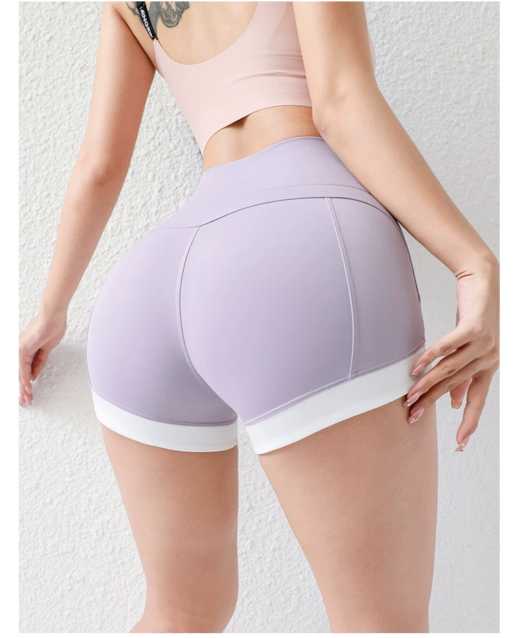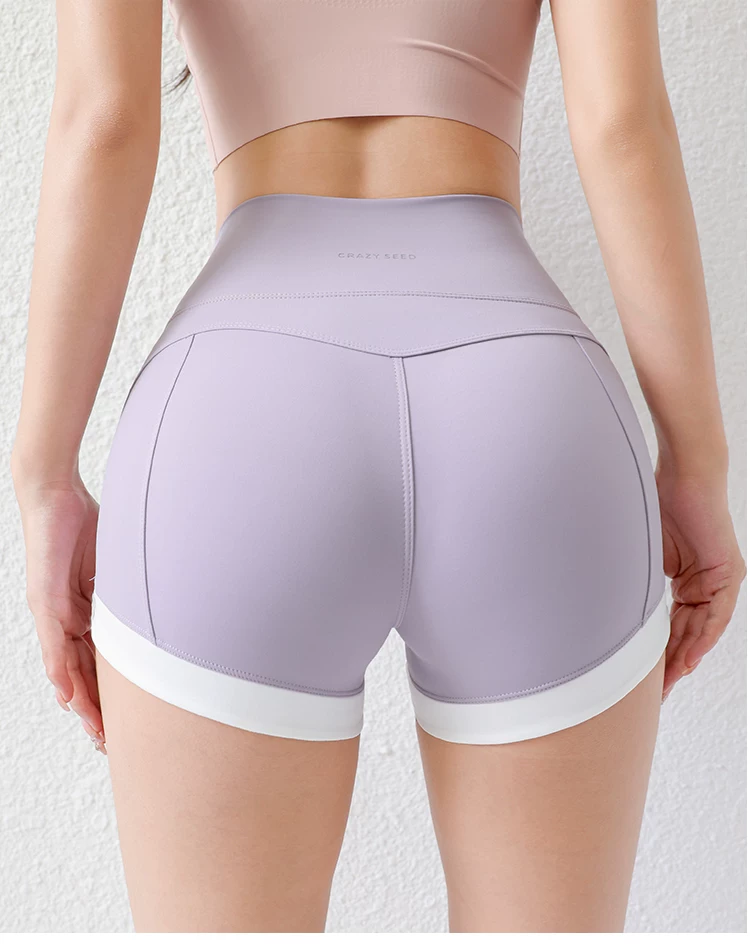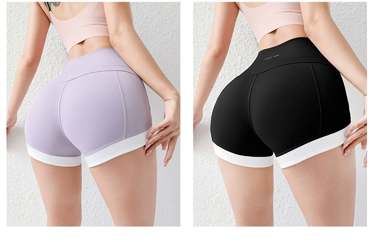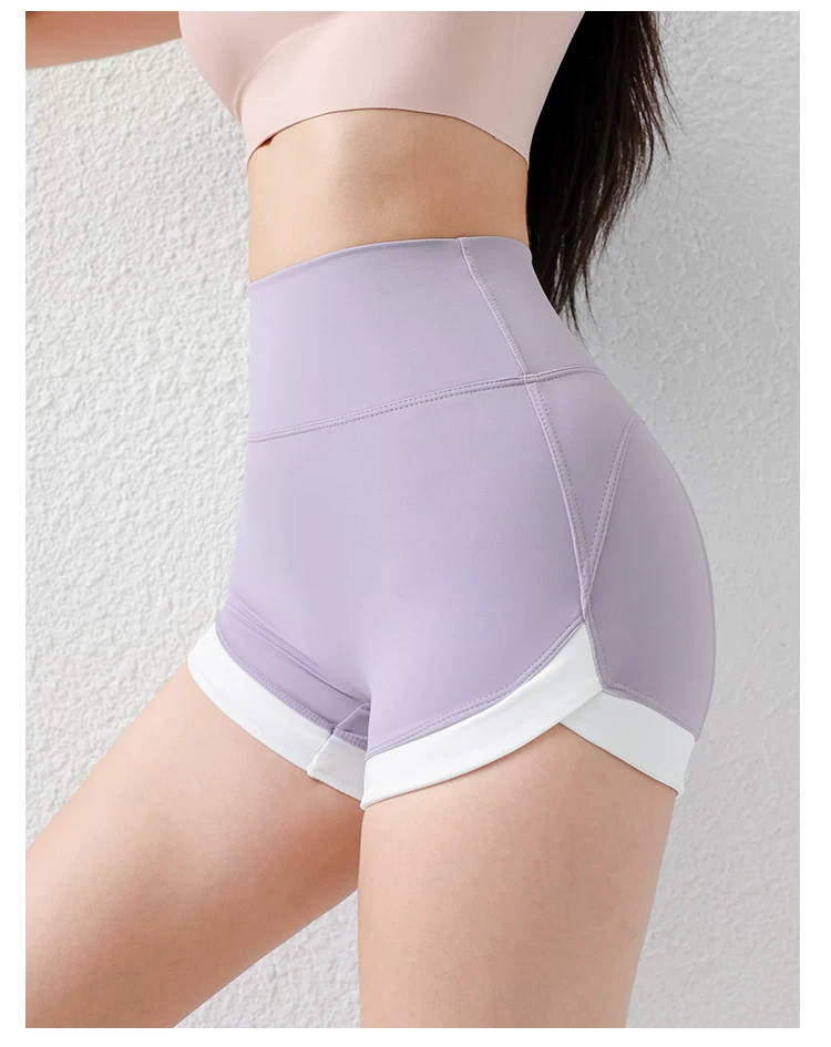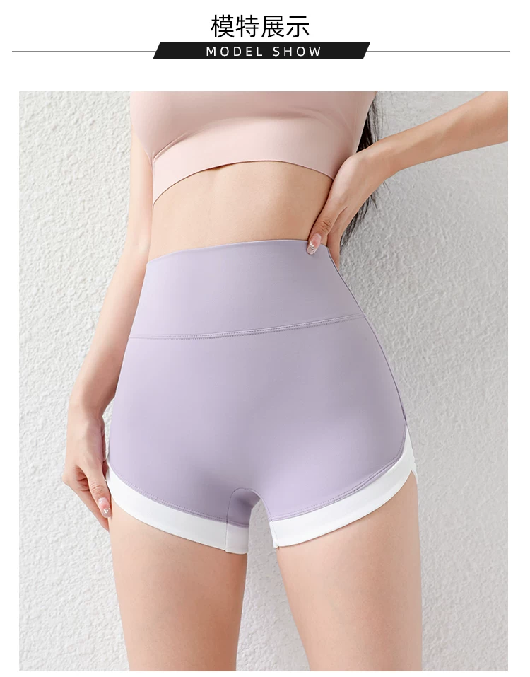 Quần short yoga phối màu mùa hè, cạp cao, nâng mông, tập gym, chạy bộ, nhanh khô, đạp xe
