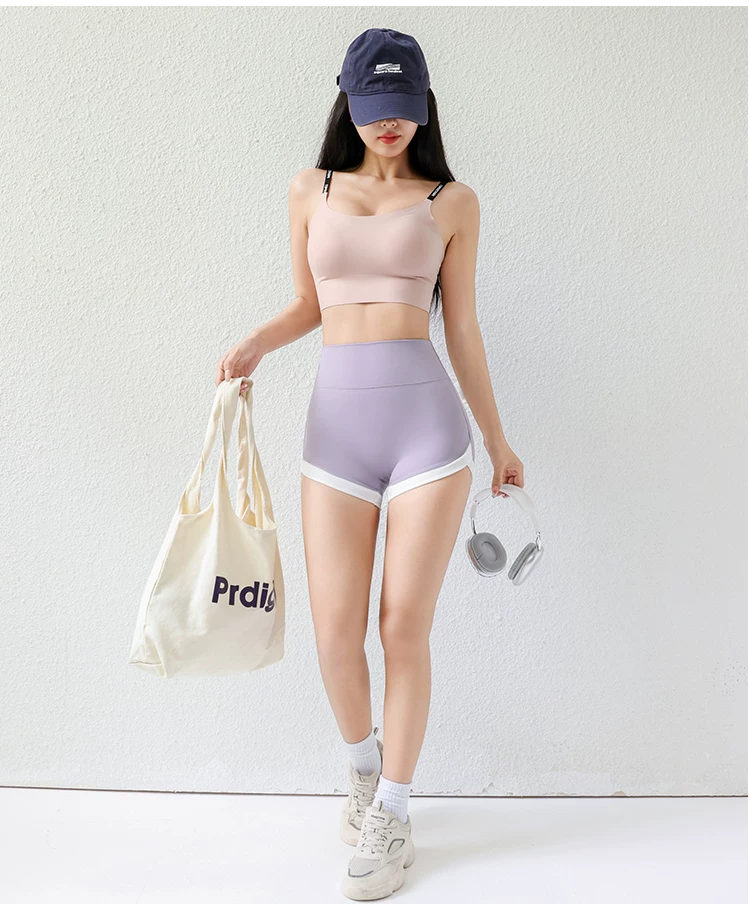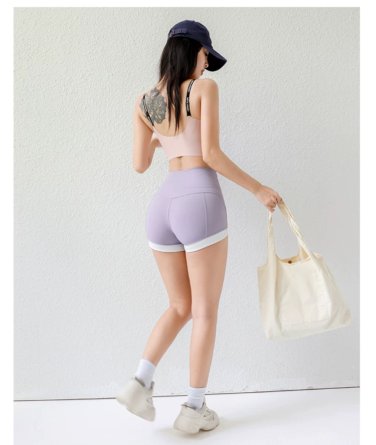 - Quần short yoga phối màu mùa hè, cạp cao, nâng mông, tập gym, chạy bộ, nhanh khô, đạp xe