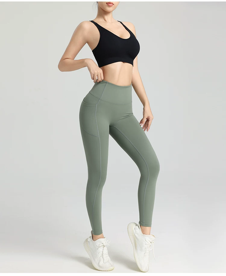 - Quần tập thể thao nhanh khô, thoáng khí, có túi, nâng mông, eo siêu cao, chất liệu nhanh khô, dành cho mùa thu.