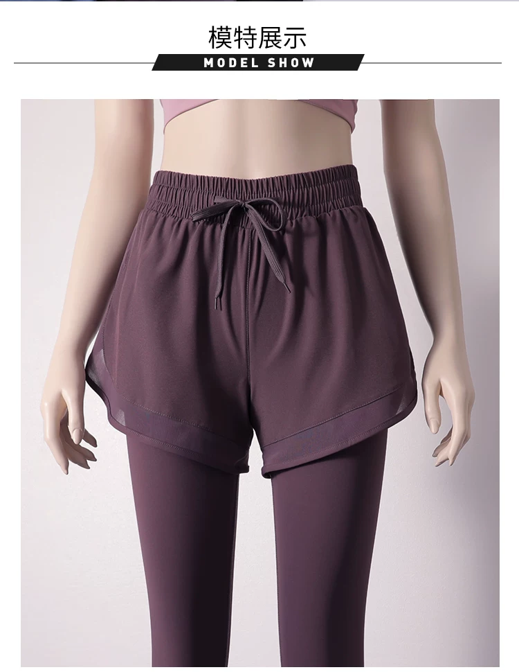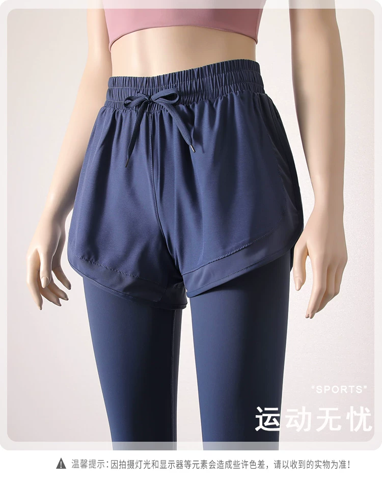 Quần tập thể thao nữ, giả hai mảnh, cạp cao, ôm sát, co giãn, nhanh khô, quần tập yoga chạy bộ, mùa thu.