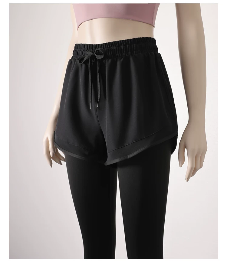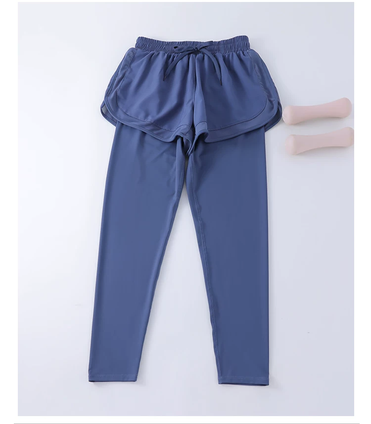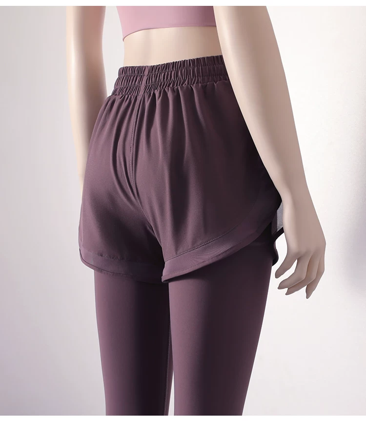 - Quần tập thể thao nữ, giả hai mảnh, cạp cao, ôm sát, co giãn, nhanh khô, quần tập yoga chạy bộ, mùa thu.