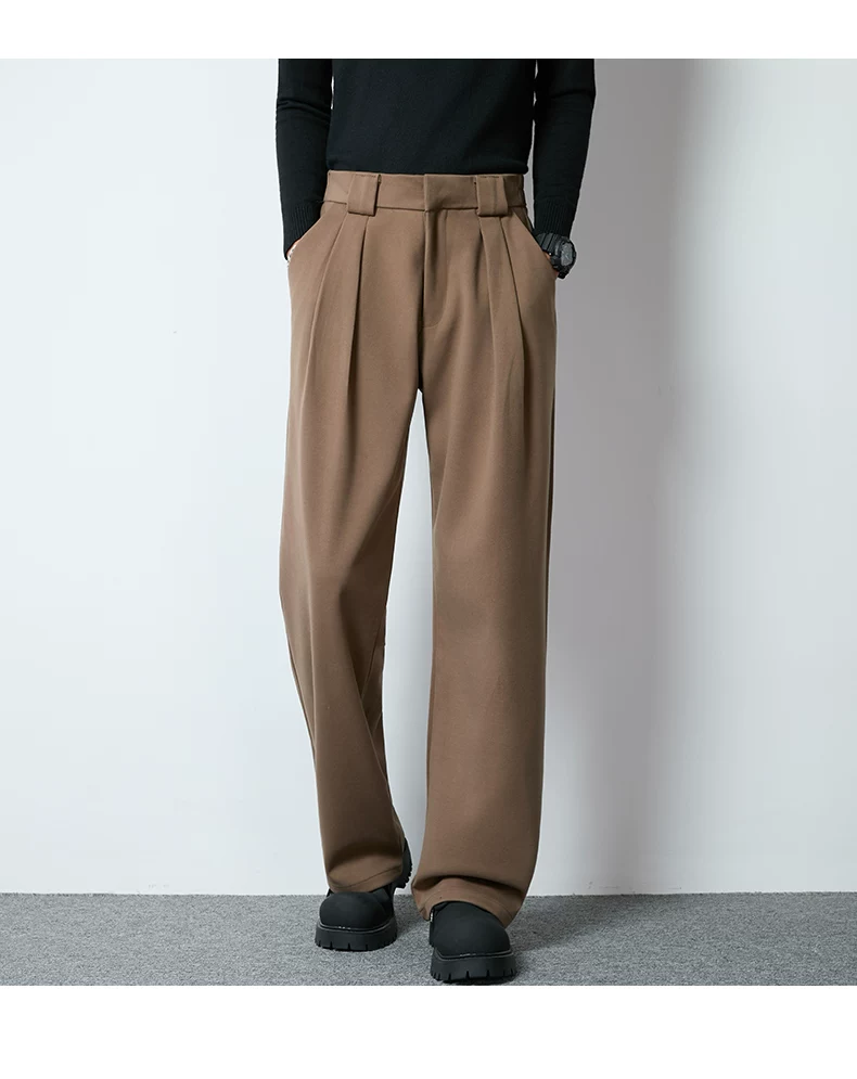 Quần tây len dày mùa đông dành cho nam, thương hiệu thời thượng, dáng rộng, quần ống đứng suông, quần casual cao cấp.