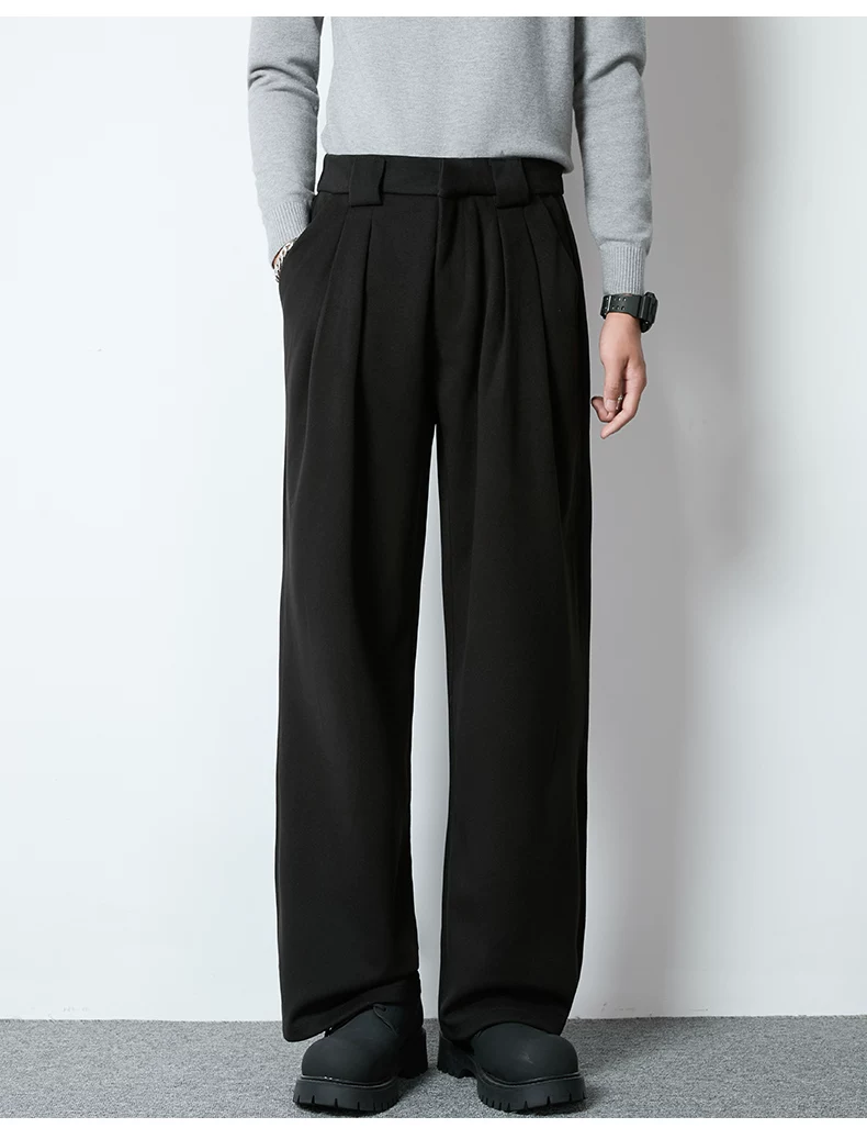- Quần tây len dày mùa đông dành cho nam, thương hiệu thời thượng, dáng rộng, quần ống đứng suông, quần casual cao cấp.