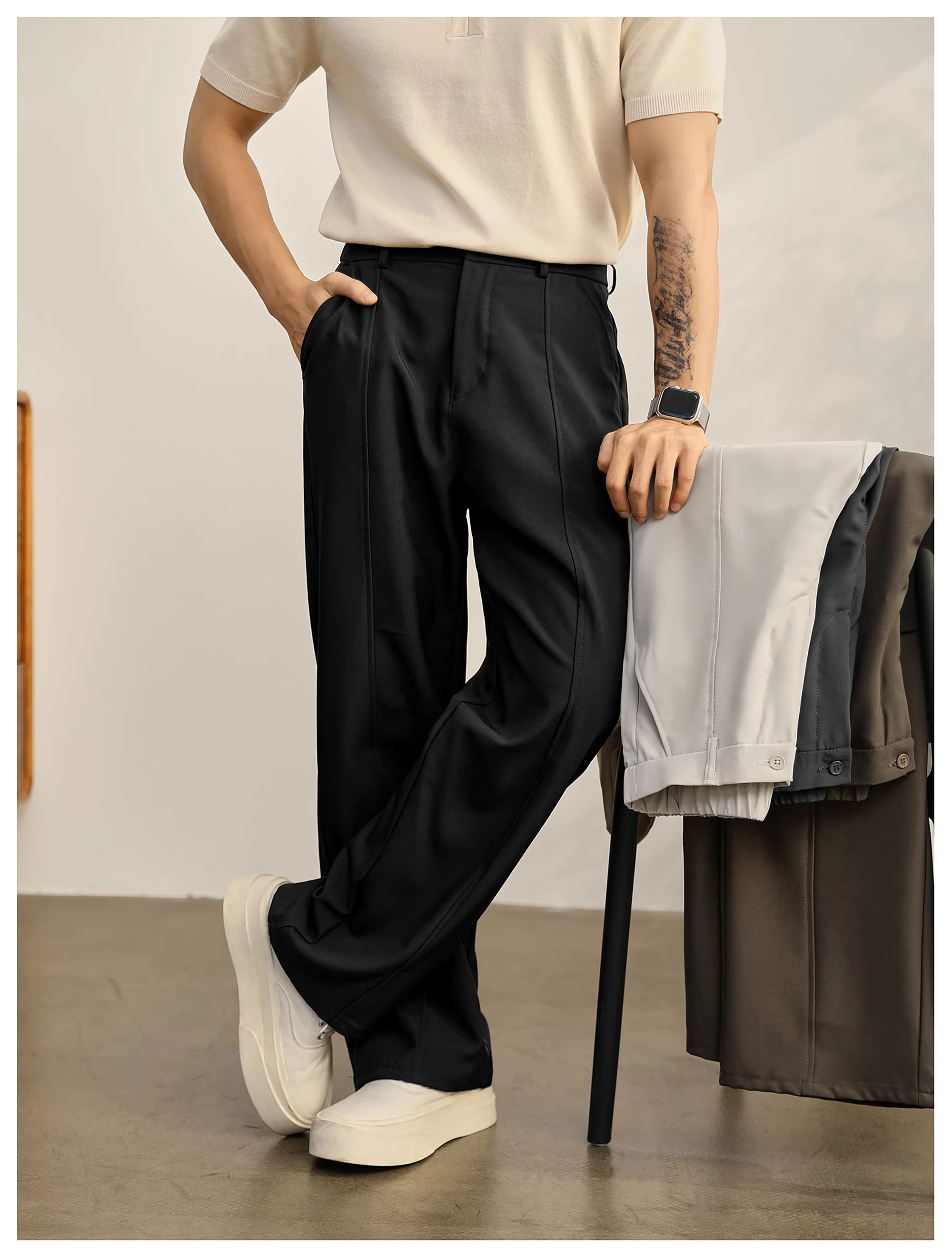 - Quần tây LUUD kiểu dáng cổ điển thanh lịch với thiết kế đường xẻ, mang lại cảm giác cao cấp, quần dài ống rộng thẳng không nhăn dành cho nam