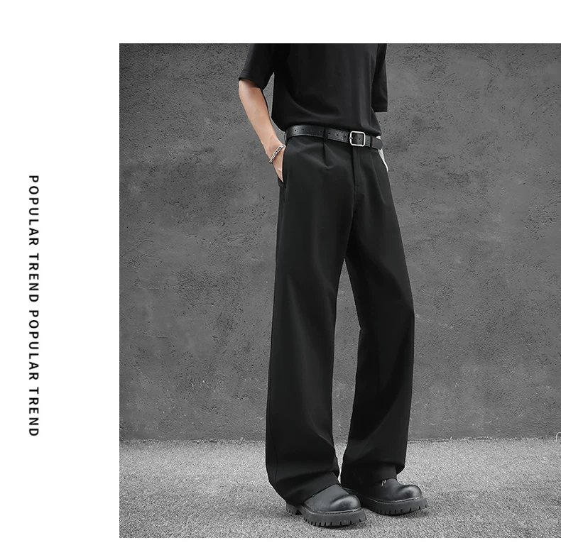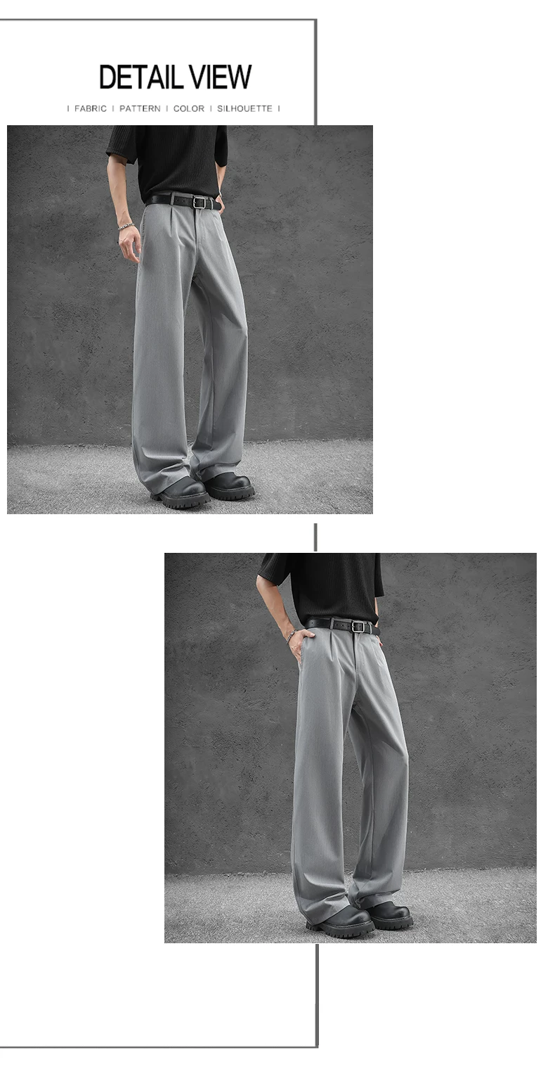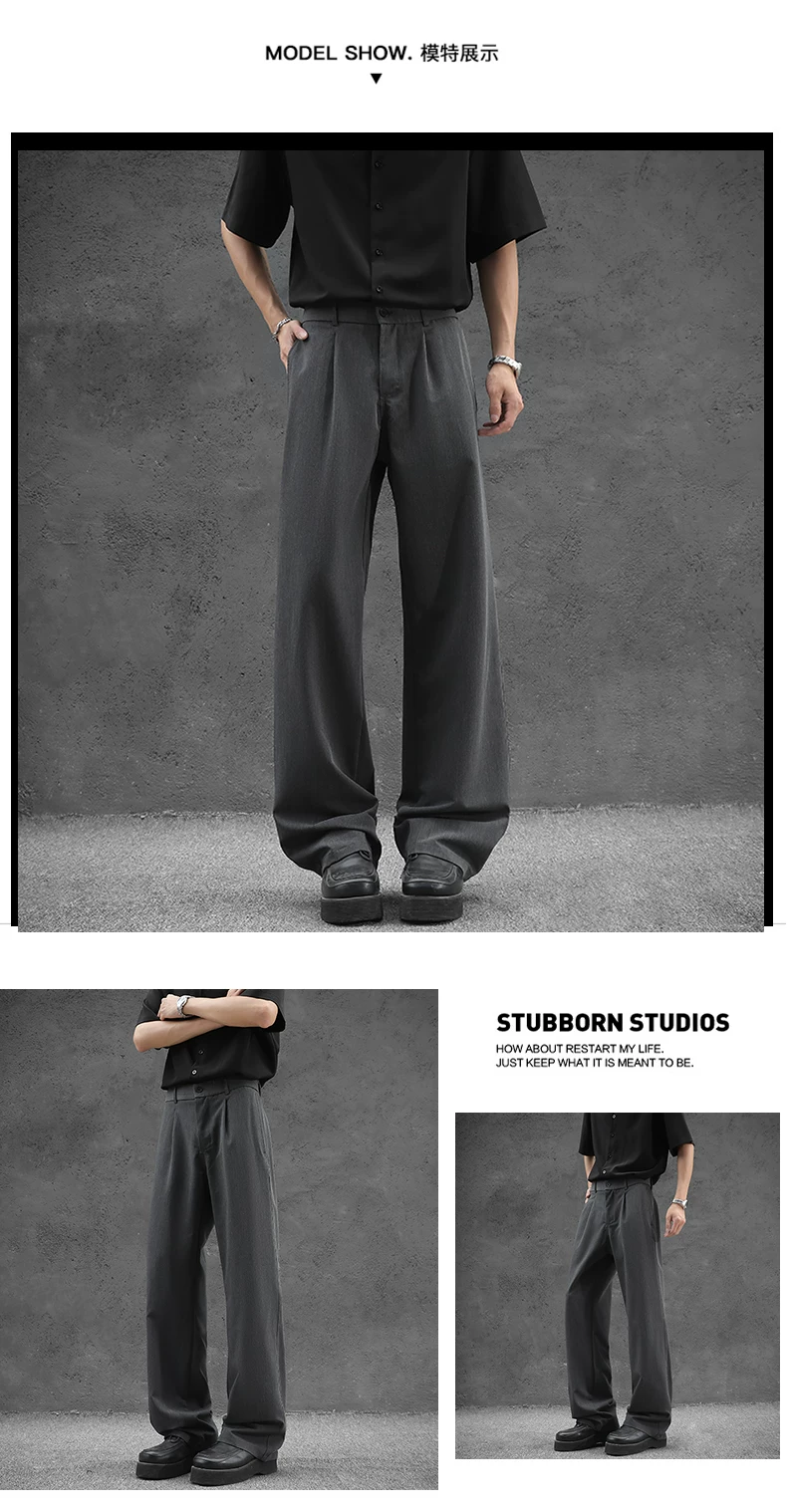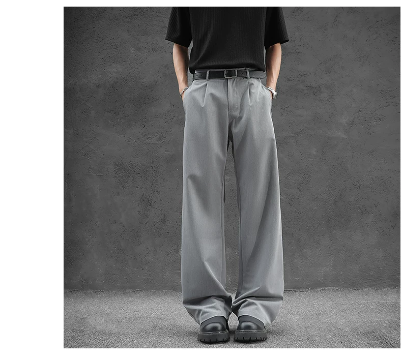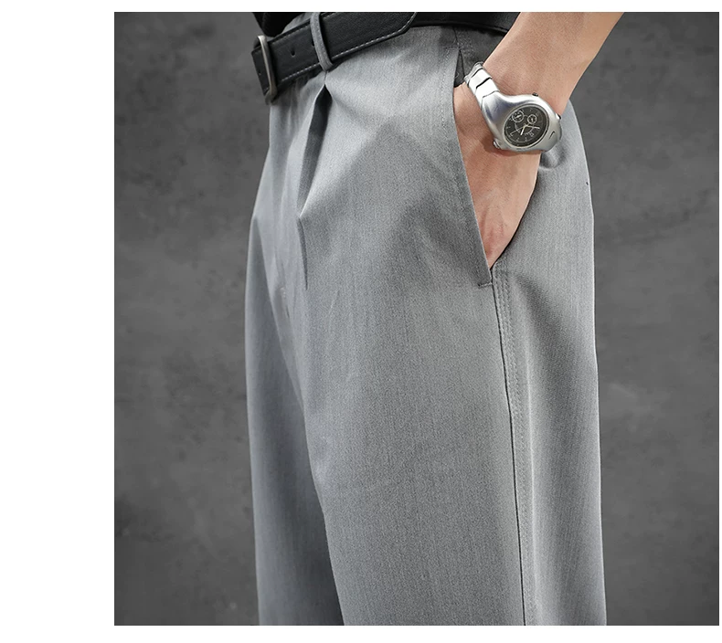 - Quần tây nam kiểu Nhật dáng rộng, quần ống đứng vải lụa băng thời trang mùa hè, quần drape cao cấp đa năng kiểu Mỹ.