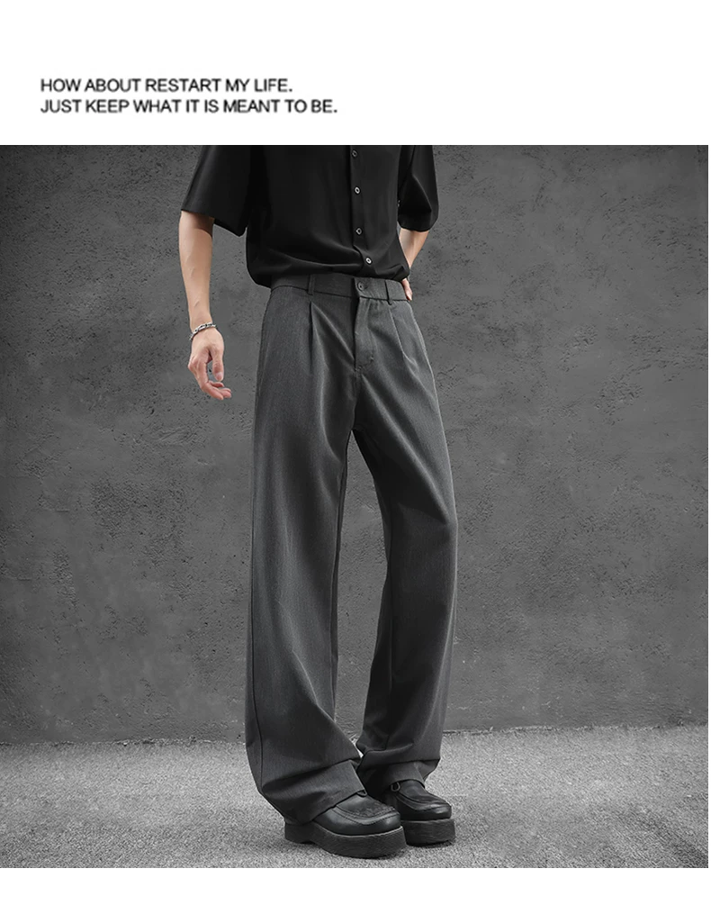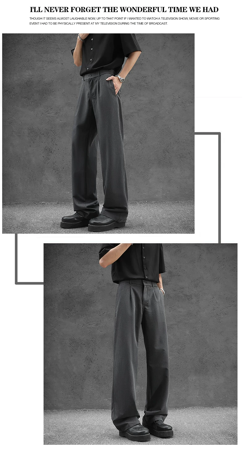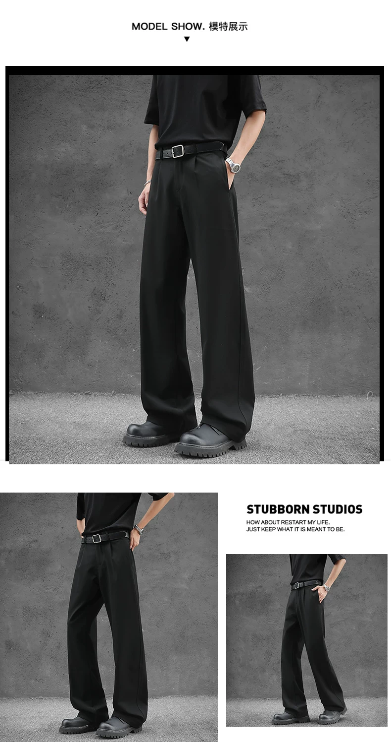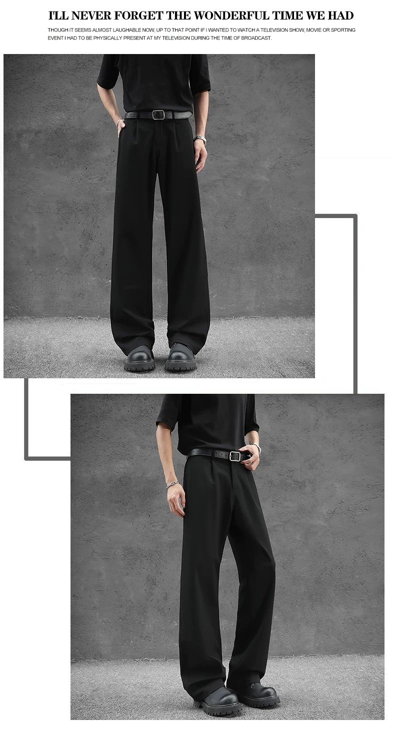 - Quần tây nam kiểu Nhật dáng rộng, quần ống đứng vải lụa băng thời trang mùa hè, quần drape cao cấp đa năng kiểu Mỹ.