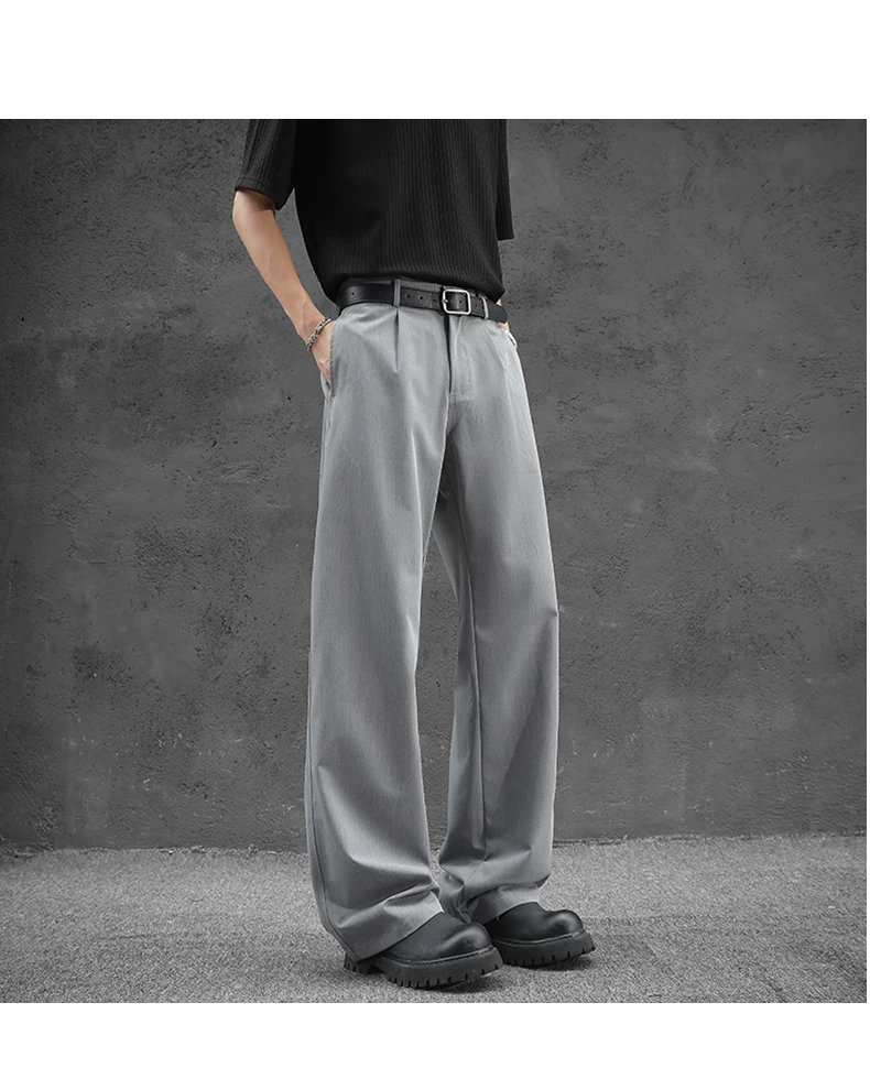 Quần tây nam kiểu Nhật dáng rộng, quần ống đứng vải lụa băng thời trang mùa hè, quần drape cao cấp đa năng kiểu Mỹ.