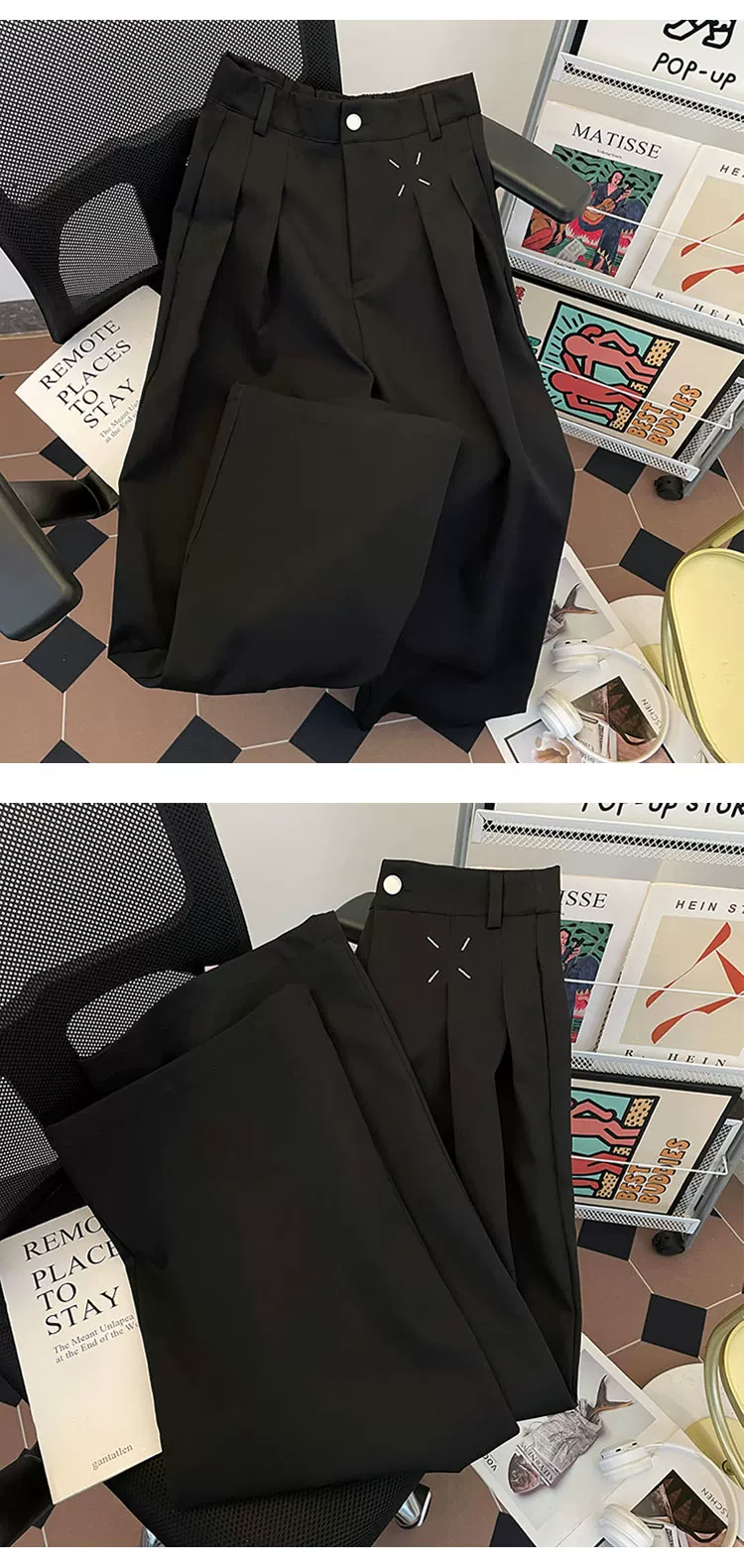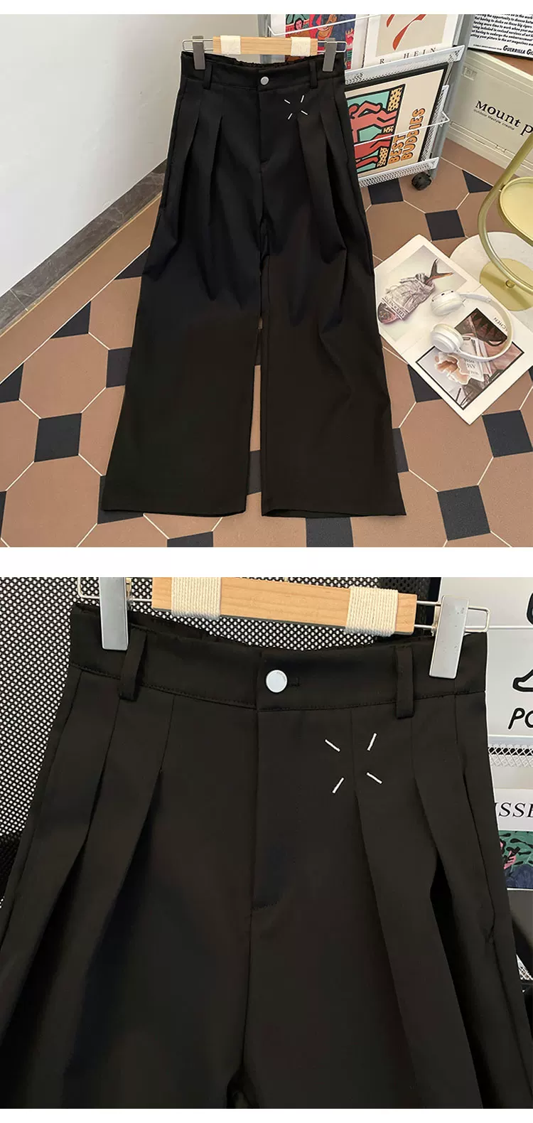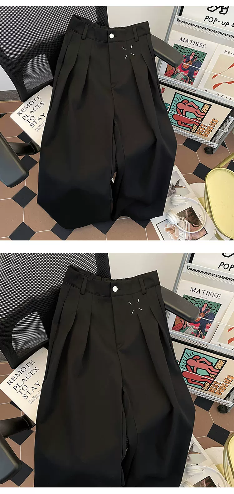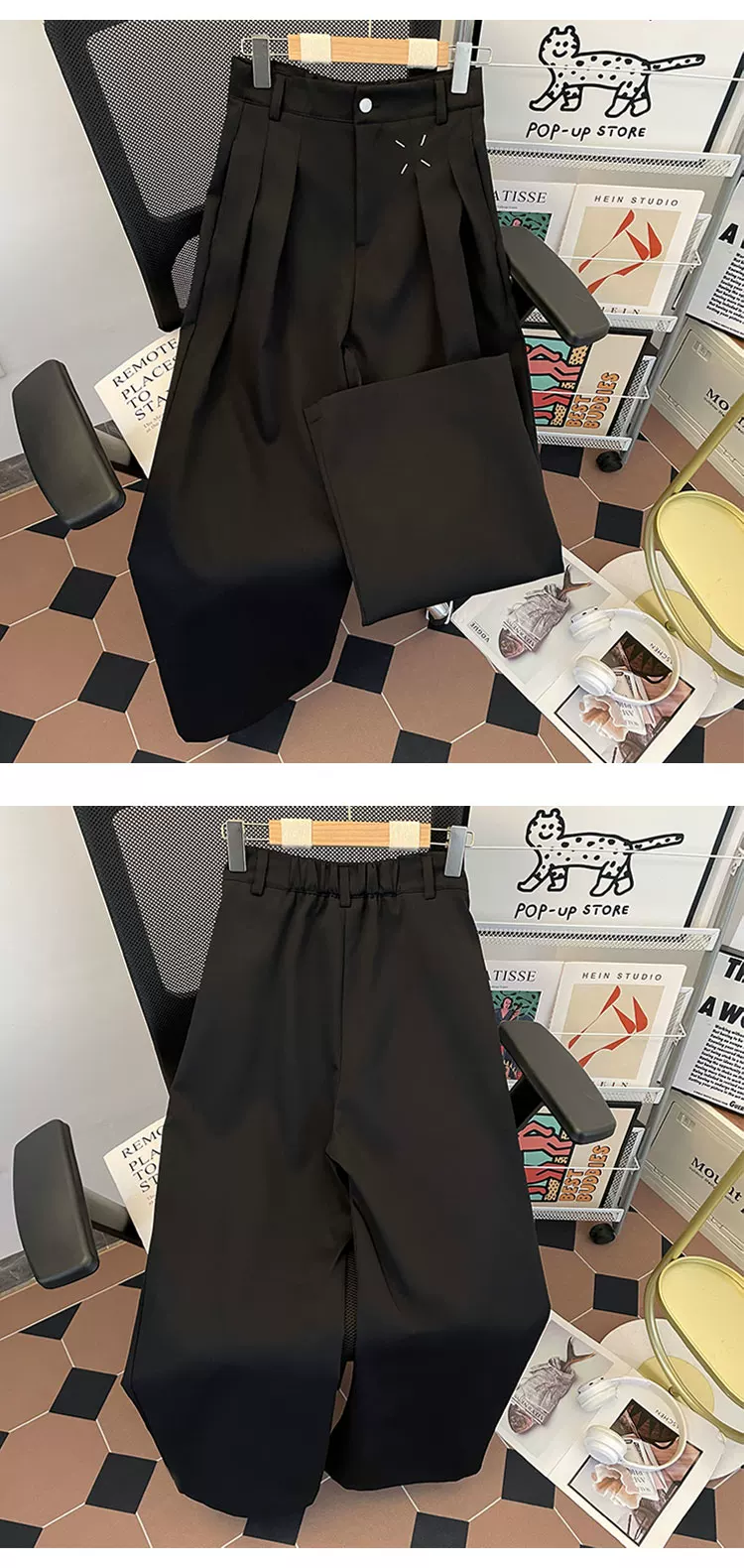 Quần tây nam lưng thun bán co giãn, phong cách cleanfit đường phố Mỹ, mùa xuân thu, quần ống rộng thoải mái có hiệu ứng xếp ly.