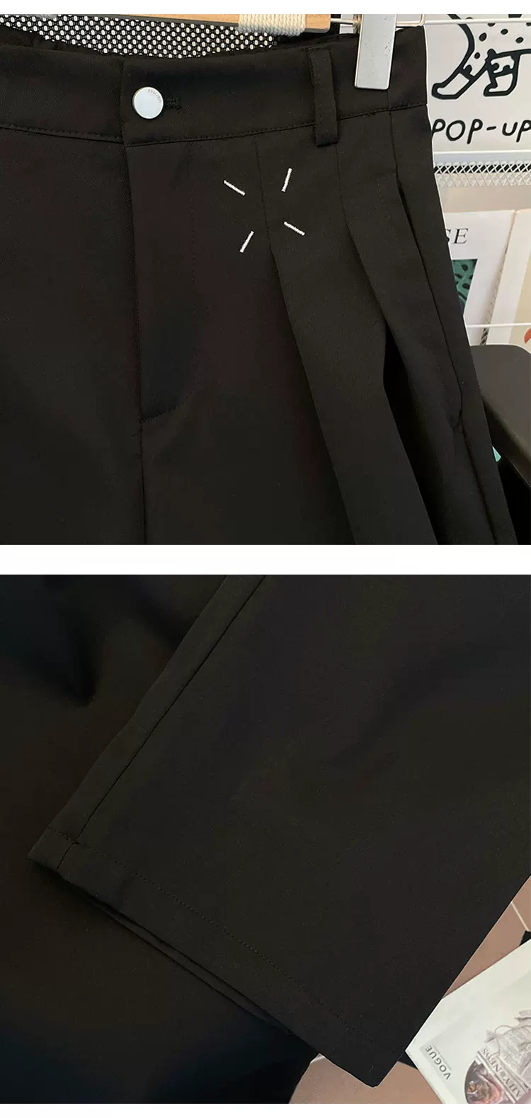 - Quần tây nam lưng thun bán co giãn, phong cách cleanfit đường phố Mỹ, mùa xuân thu, quần ống rộng thoải mái có hiệu ứng xếp ly.