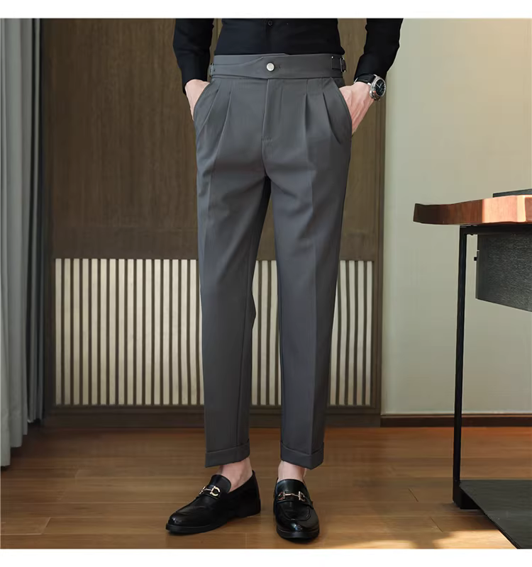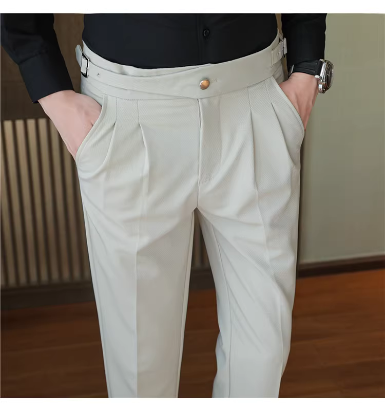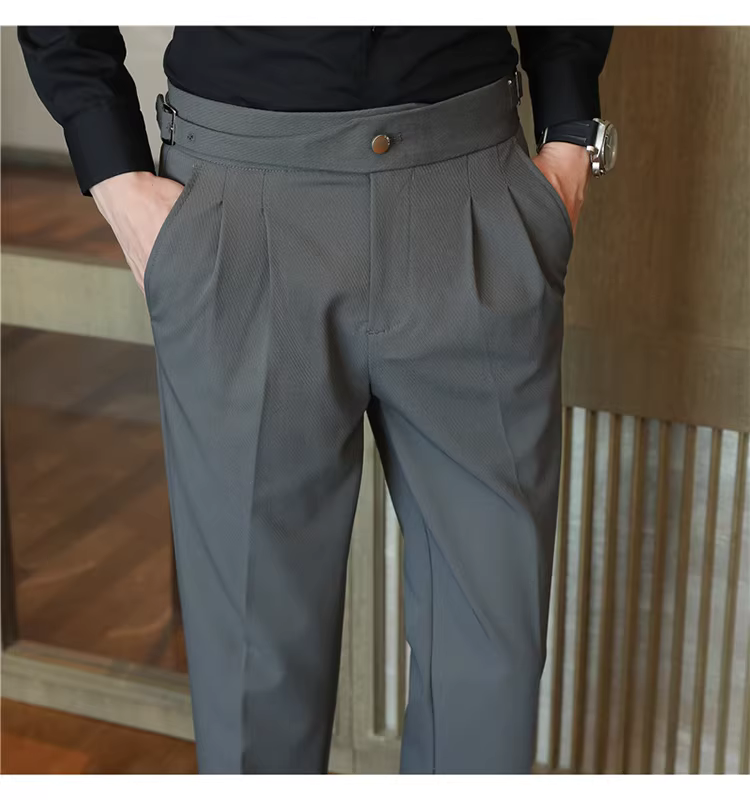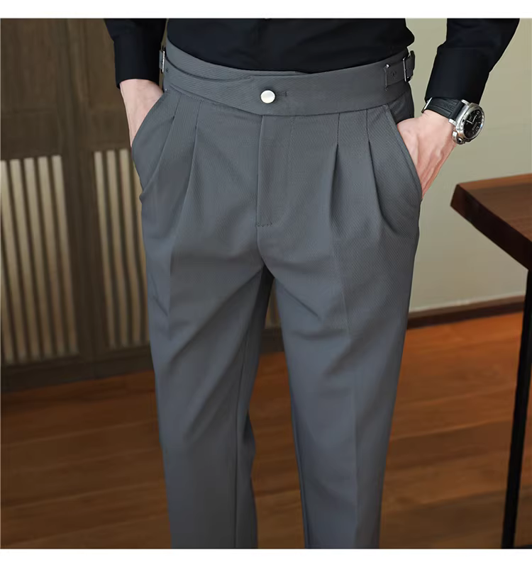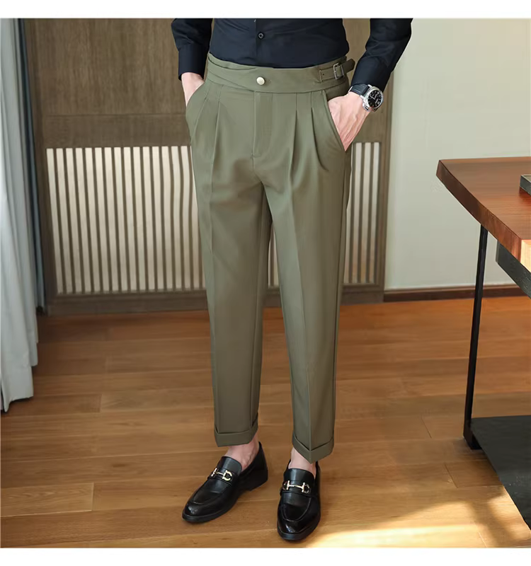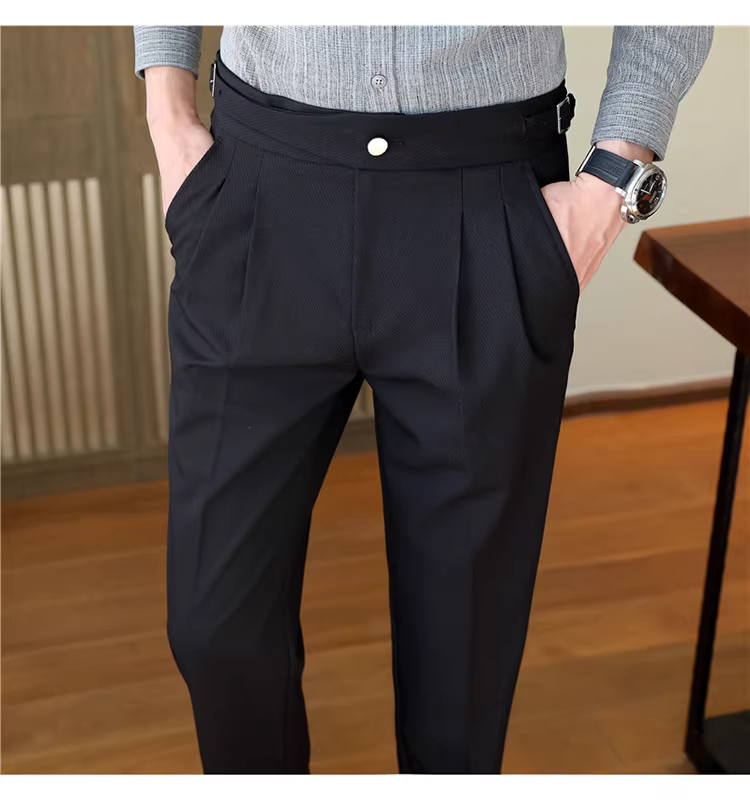 Quần tây nam Naples cạp cao, trang phục công sở cao cấp, quần âu ống đứng mềm mại, quần kiểu Anh lịch lãm