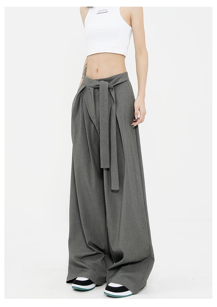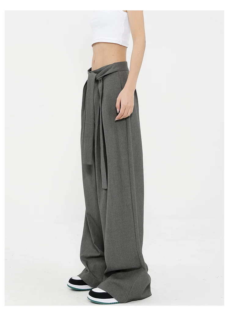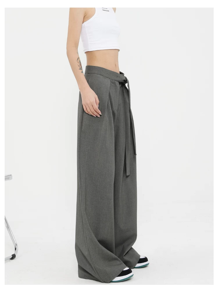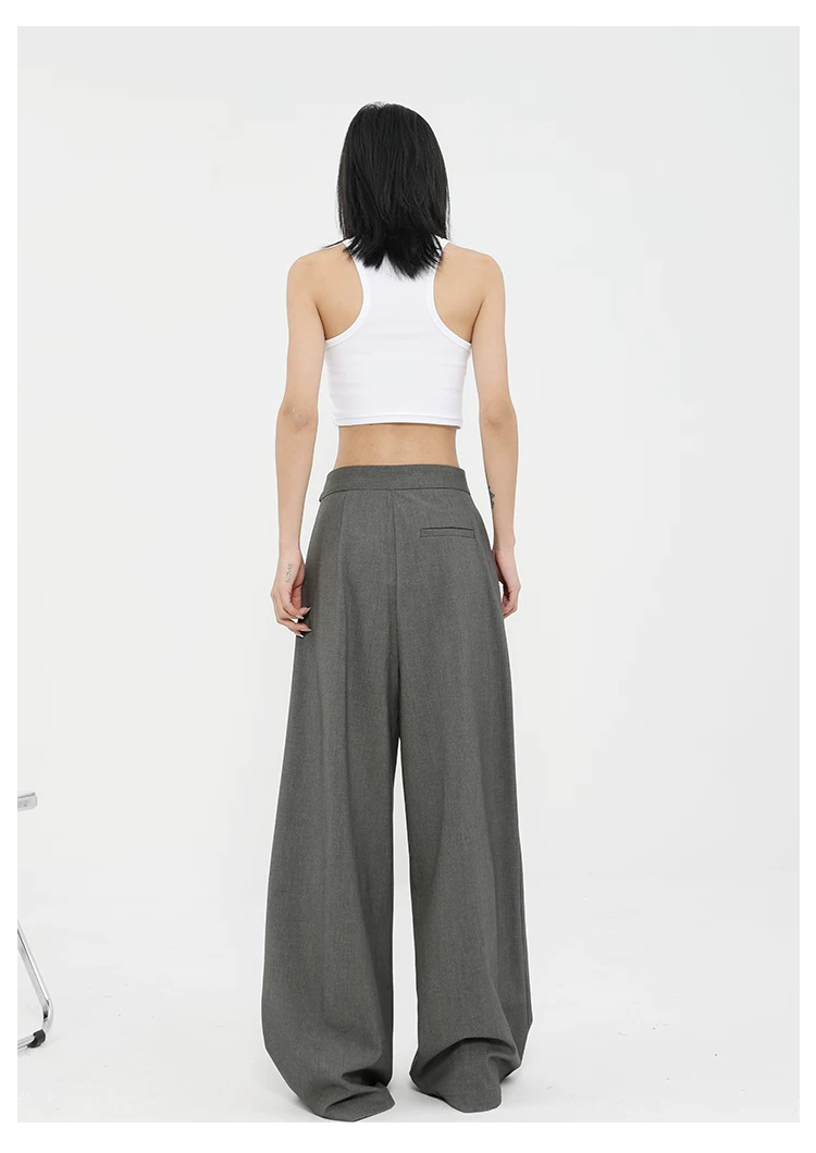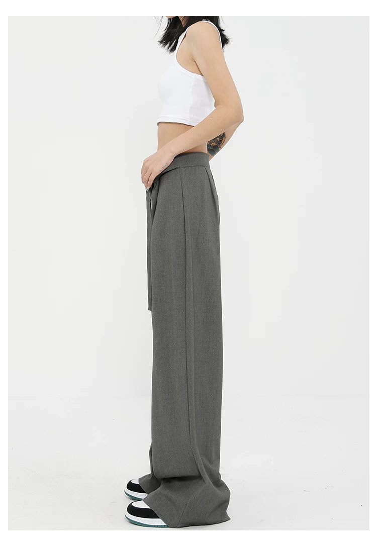 Quần tây ống đứng màu xám của KEN STUDIO dành cho nữ, thiết kế mới mùa xuân thu, quần thường ngày, quần ống rộng.