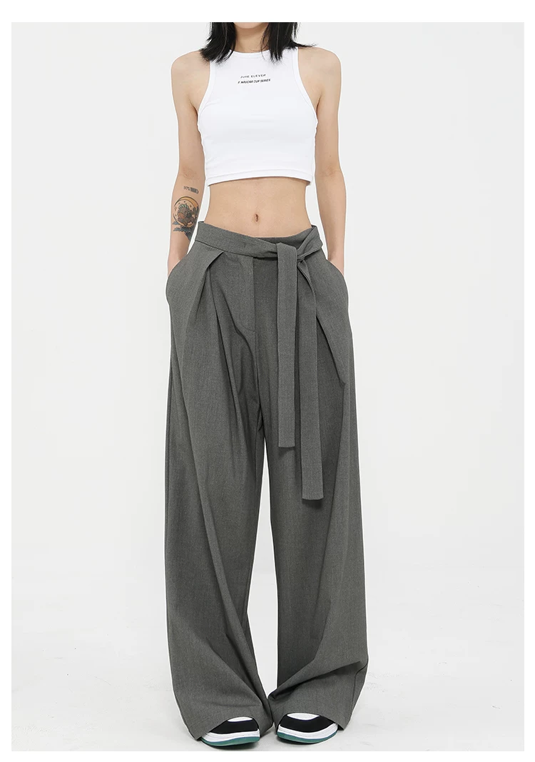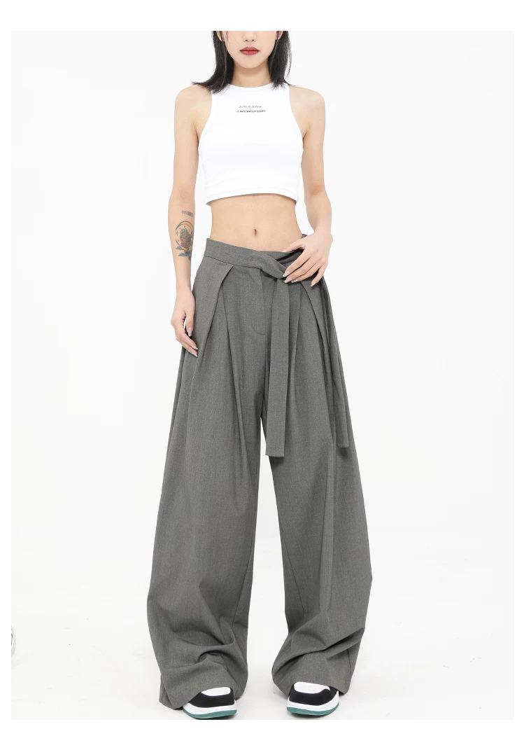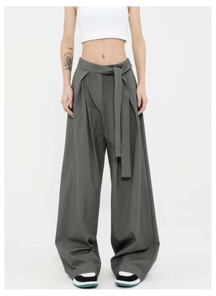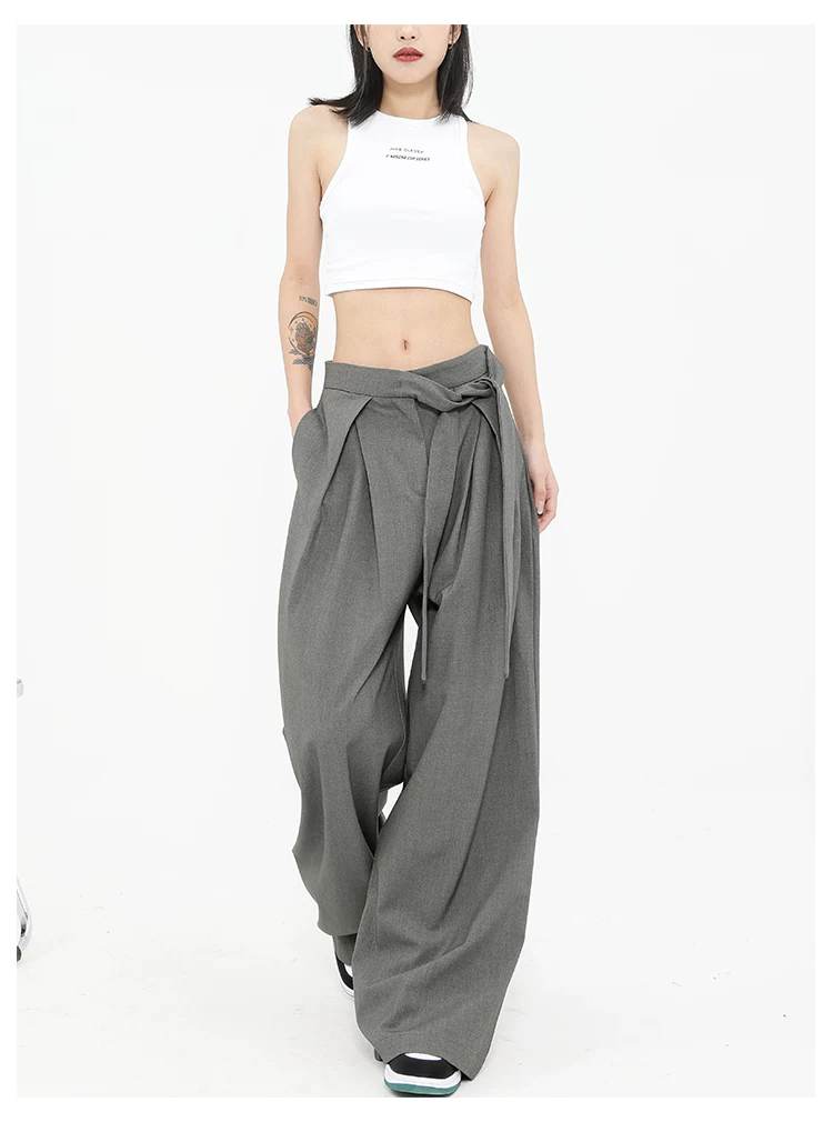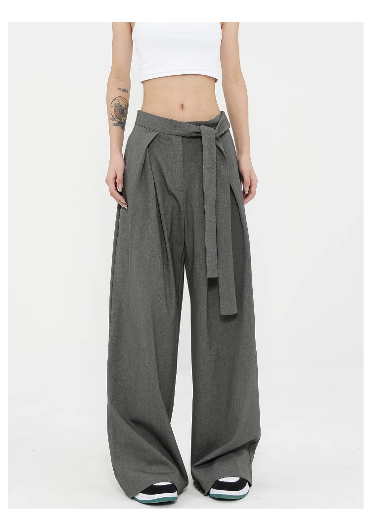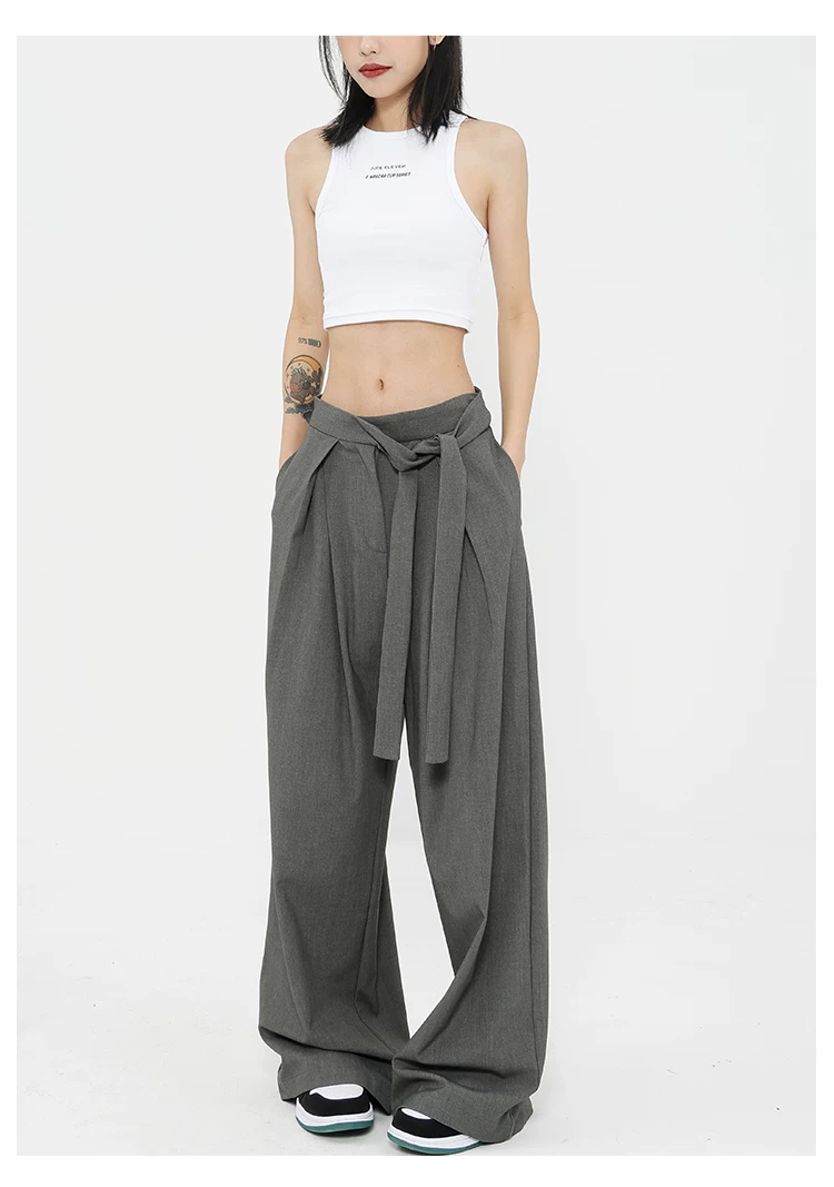 Quần tây ống đứng màu xám của KEN STUDIO dành cho nữ, thiết kế mới mùa xuân thu, quần thường ngày, quần ống rộng.