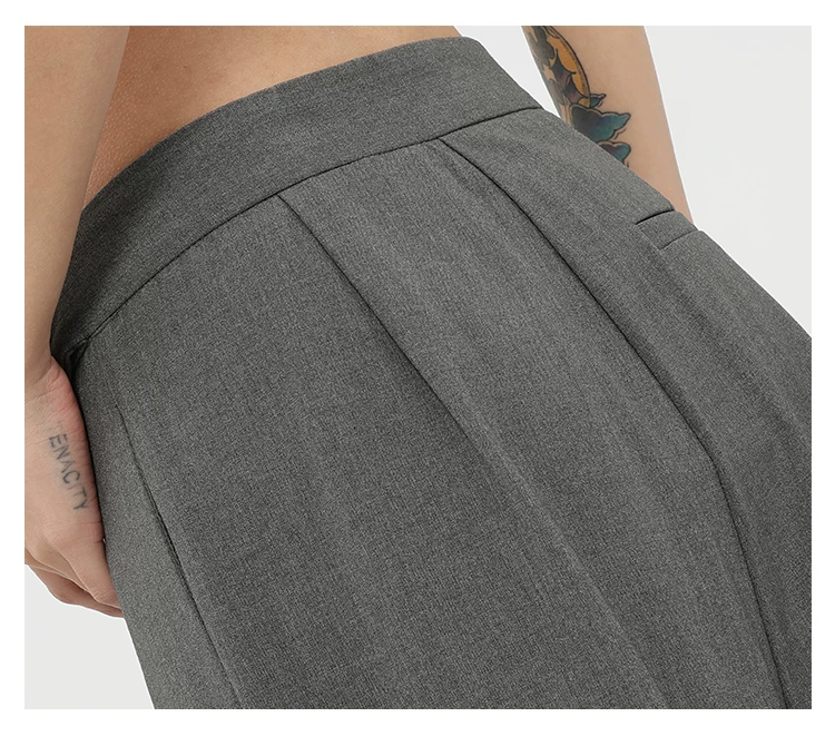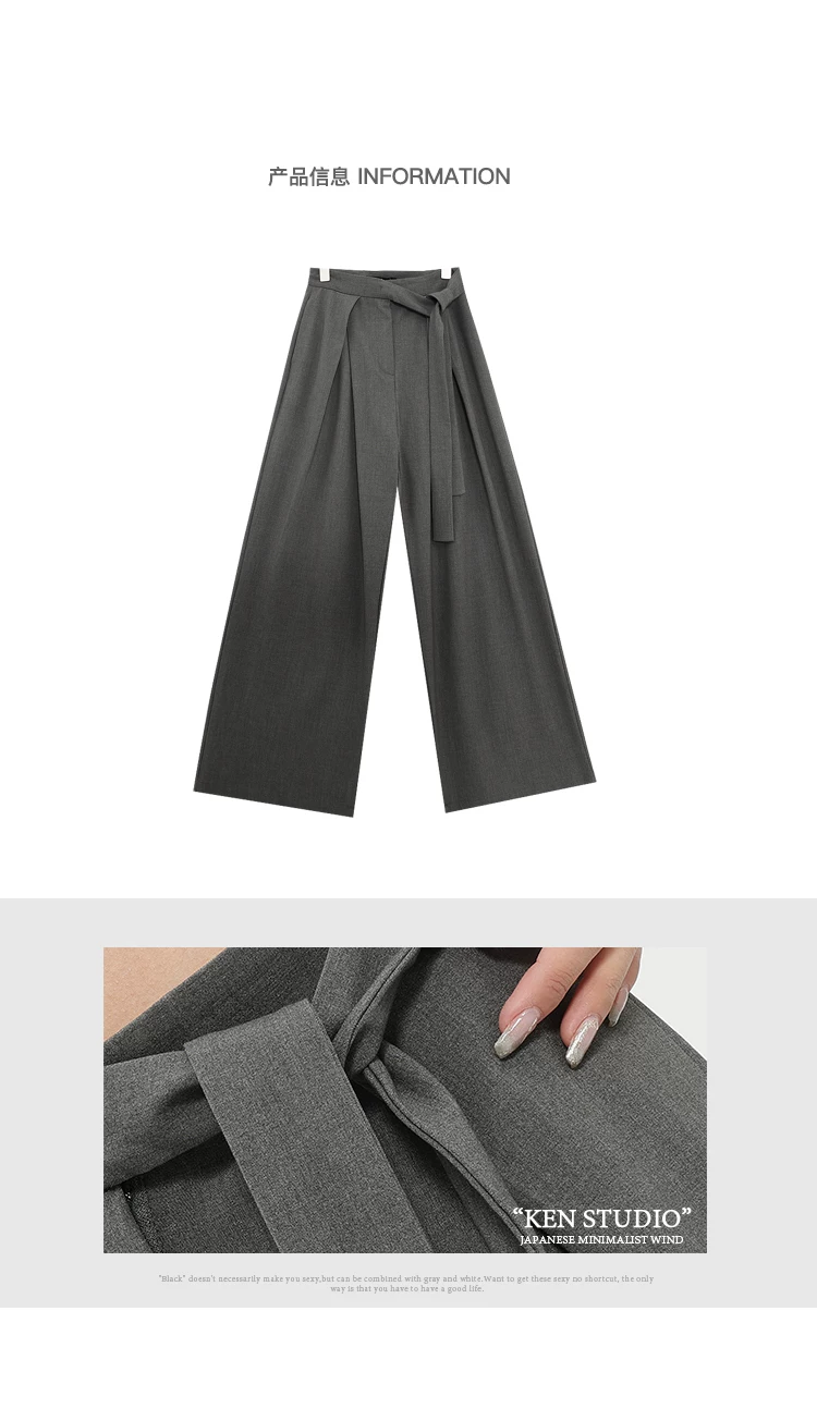 - Quần tây ống đứng màu xám của KEN STUDIO dành cho nữ, thiết kế mới mùa xuân thu, quần thường ngày, quần ống rộng.