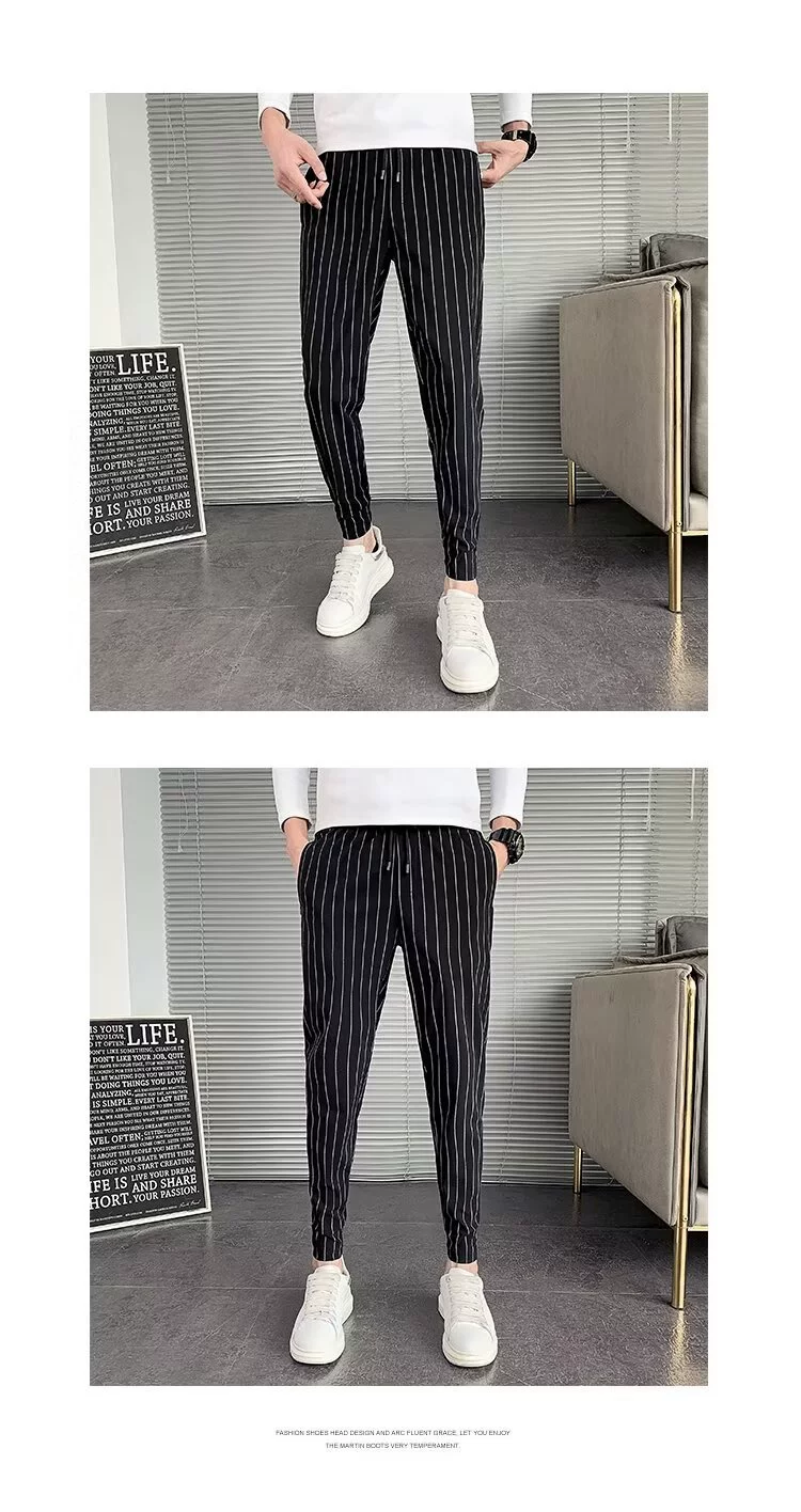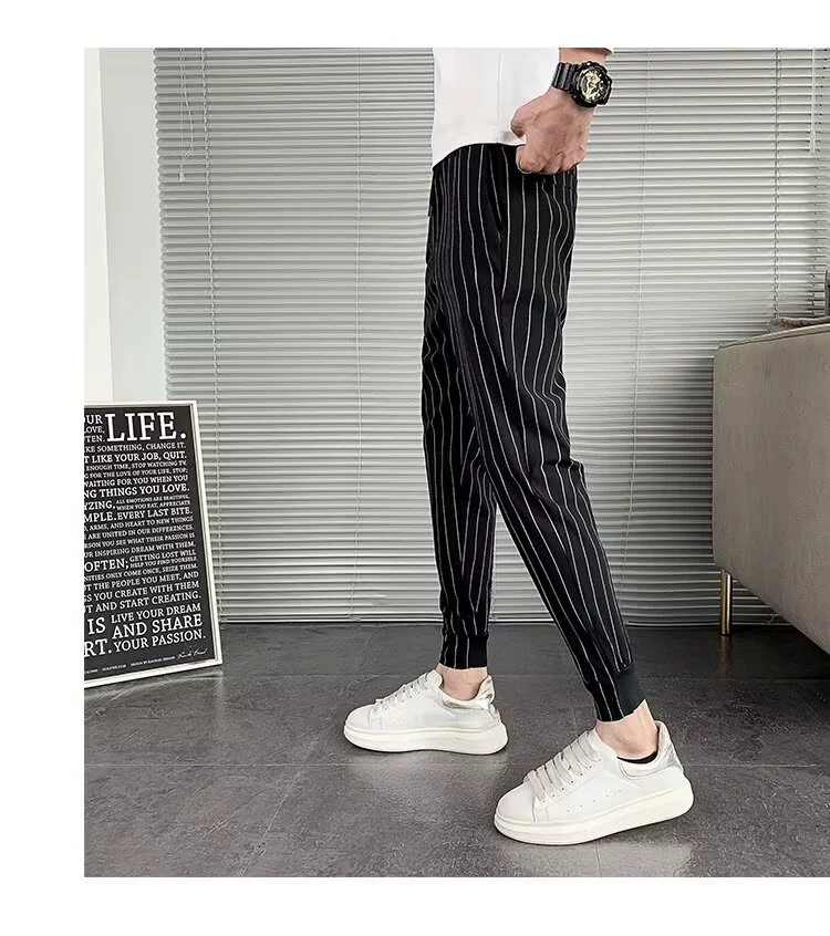 - Quần tây sọc dọc kiểu Mỹ dành cho nam, quần jogger ôm dáng thời thượng, quần lửng cho mùa xuân thu, cảm giác sang trọng và đa năng, quần ống côn.