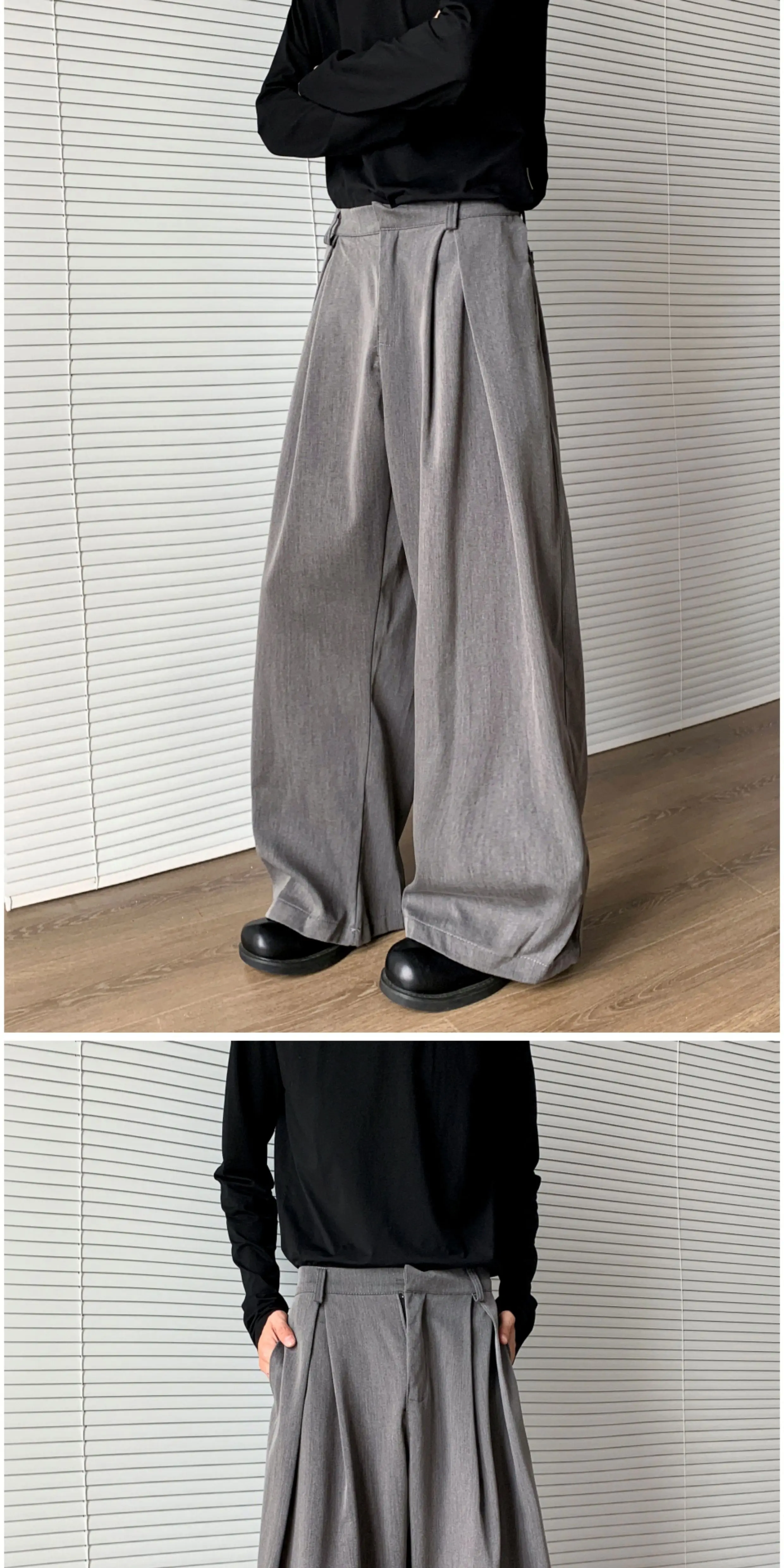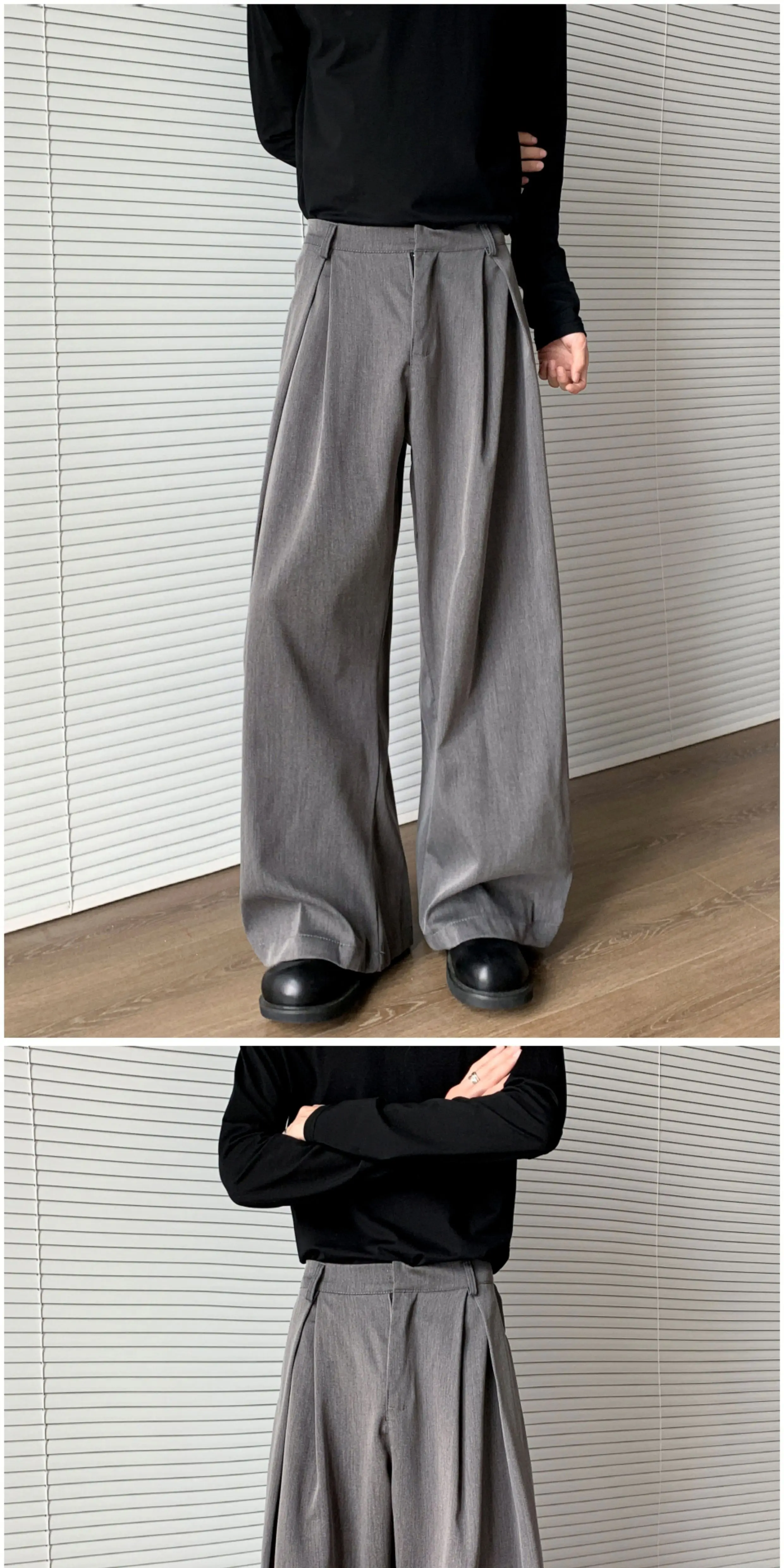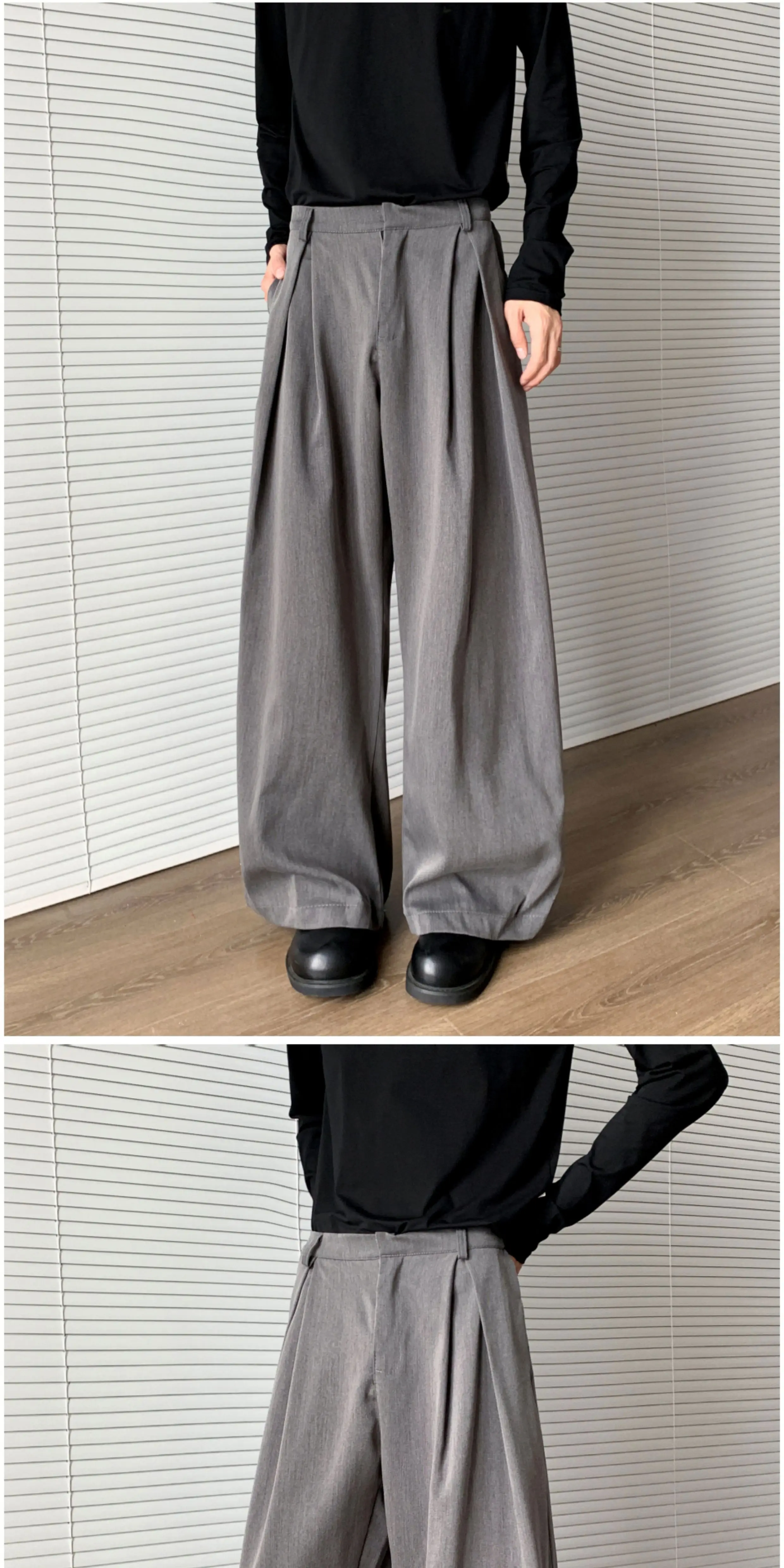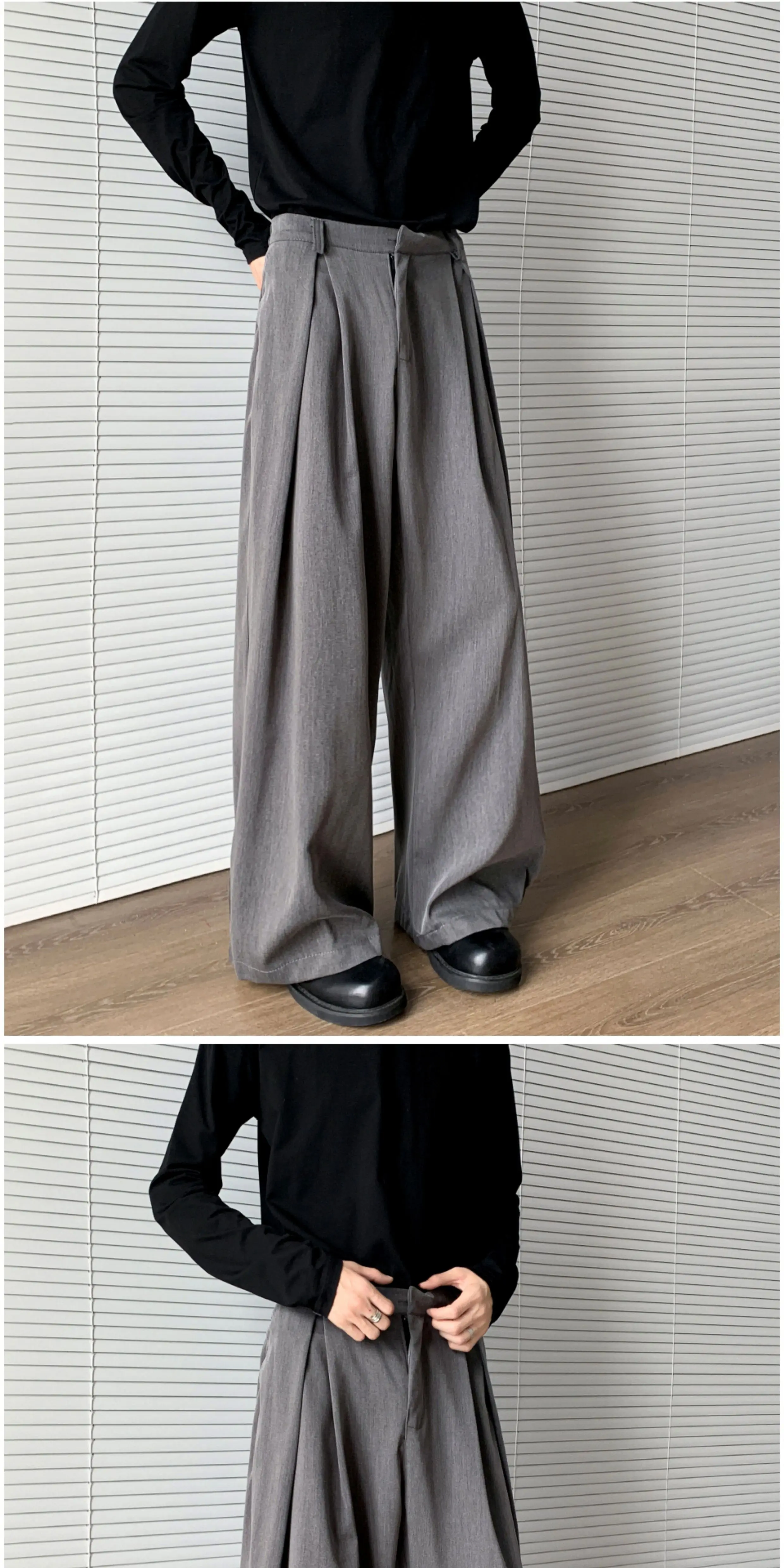 - Quần tây xếp ly ba chiều cao cấp dành cho nam, quần ống rộng dáng suông thời thượng mùa thu, quần dài phong cách đường phố cá tính.