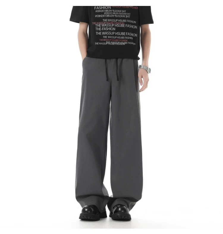 - Quần tây xếp ly kiểu Mỹ dành cho nam, mùa xuân thu, quần ống đứng có dây rút, thương hiệu thời thượng, quần vest đơn giản và cao cấp.