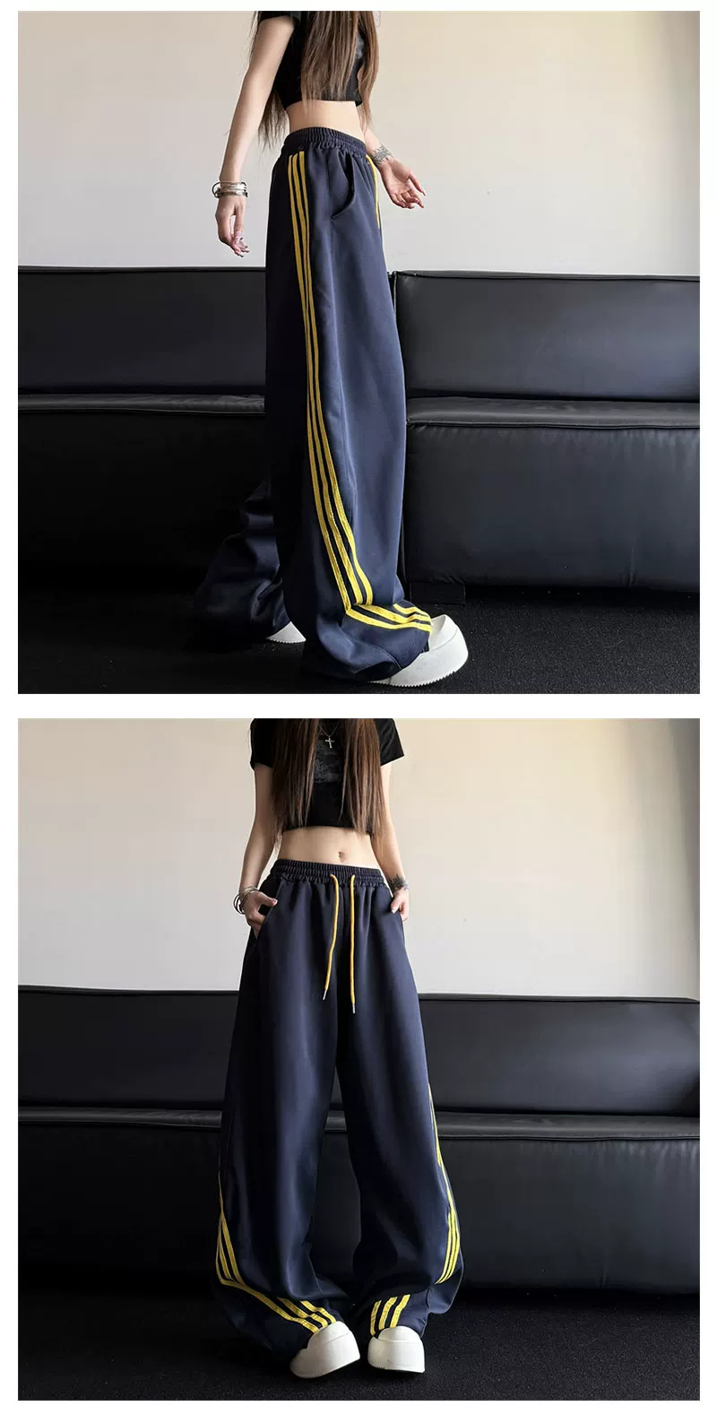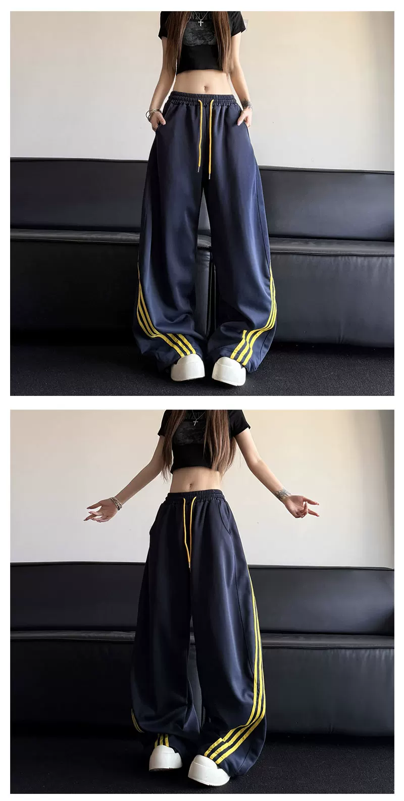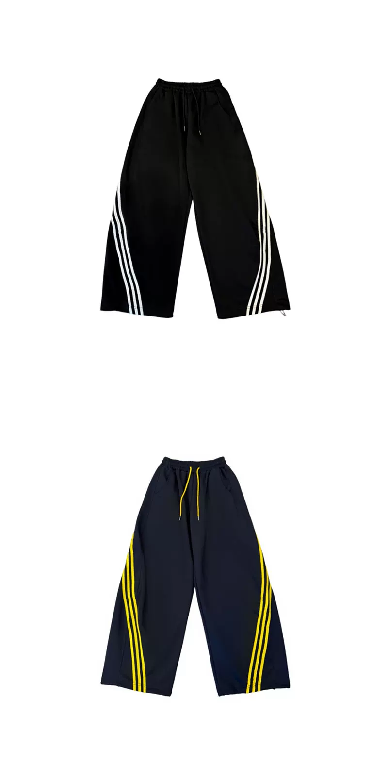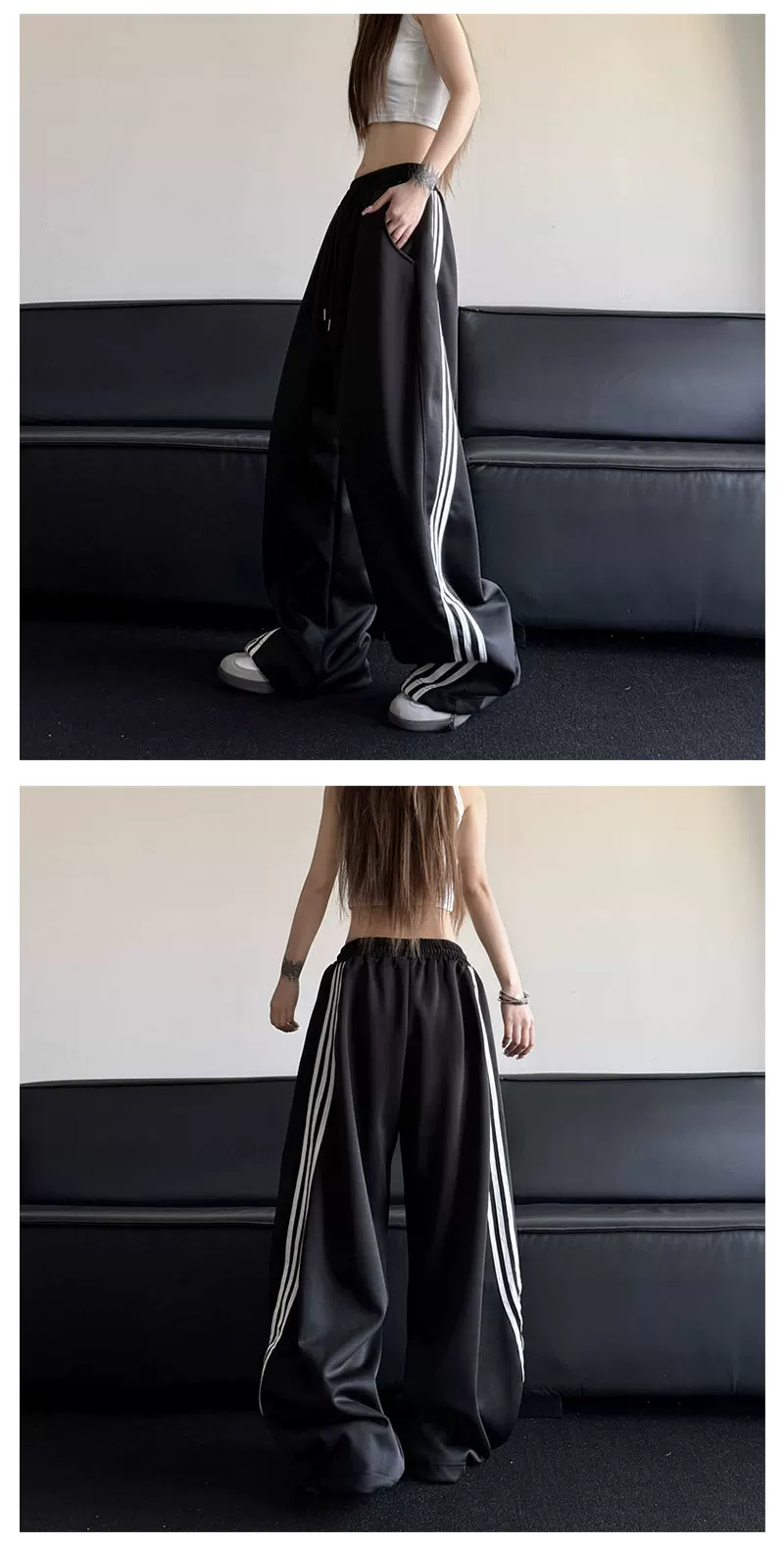 - Quần thể thao ba sọc phong cách hip-hop Mỹ dành cho nam, quần ống cong vintage xuân/thu, quần ống rộng dài chạm đất thời thượng, thương hiệu nổi tiếng.