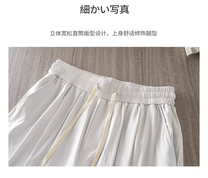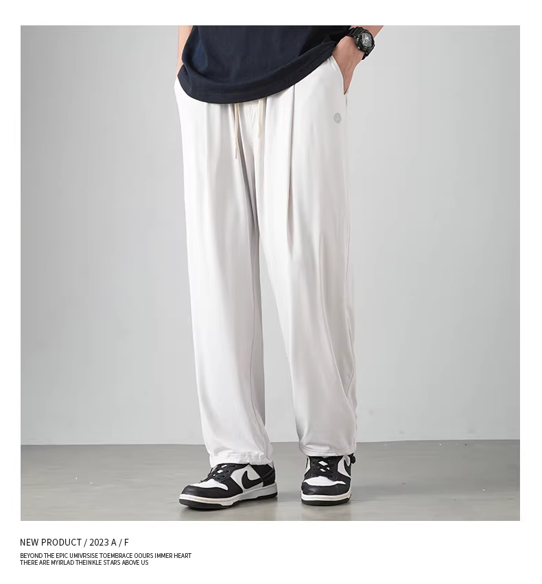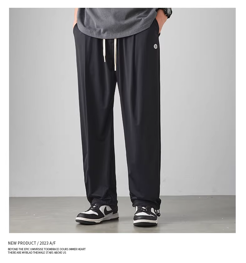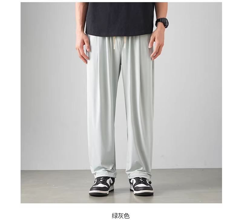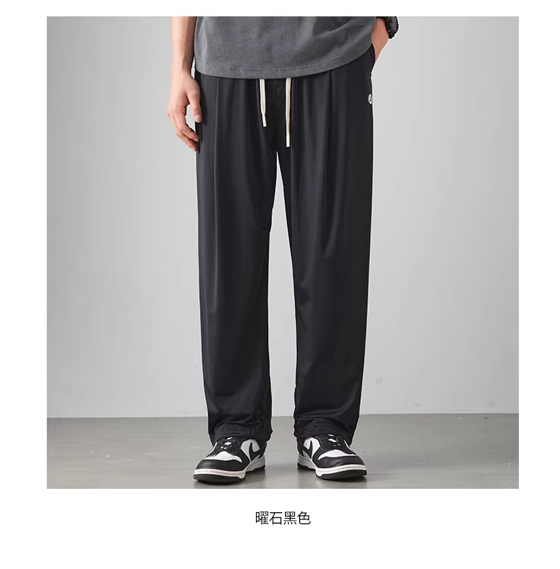 Quần thể thao nam chất liệu vải lụa đá mát lạnh, kiểu dáng xu hướng hè 2024, mỏng nhẹ, nhanh khô, rộng rãi, dáng thẳng, dài.