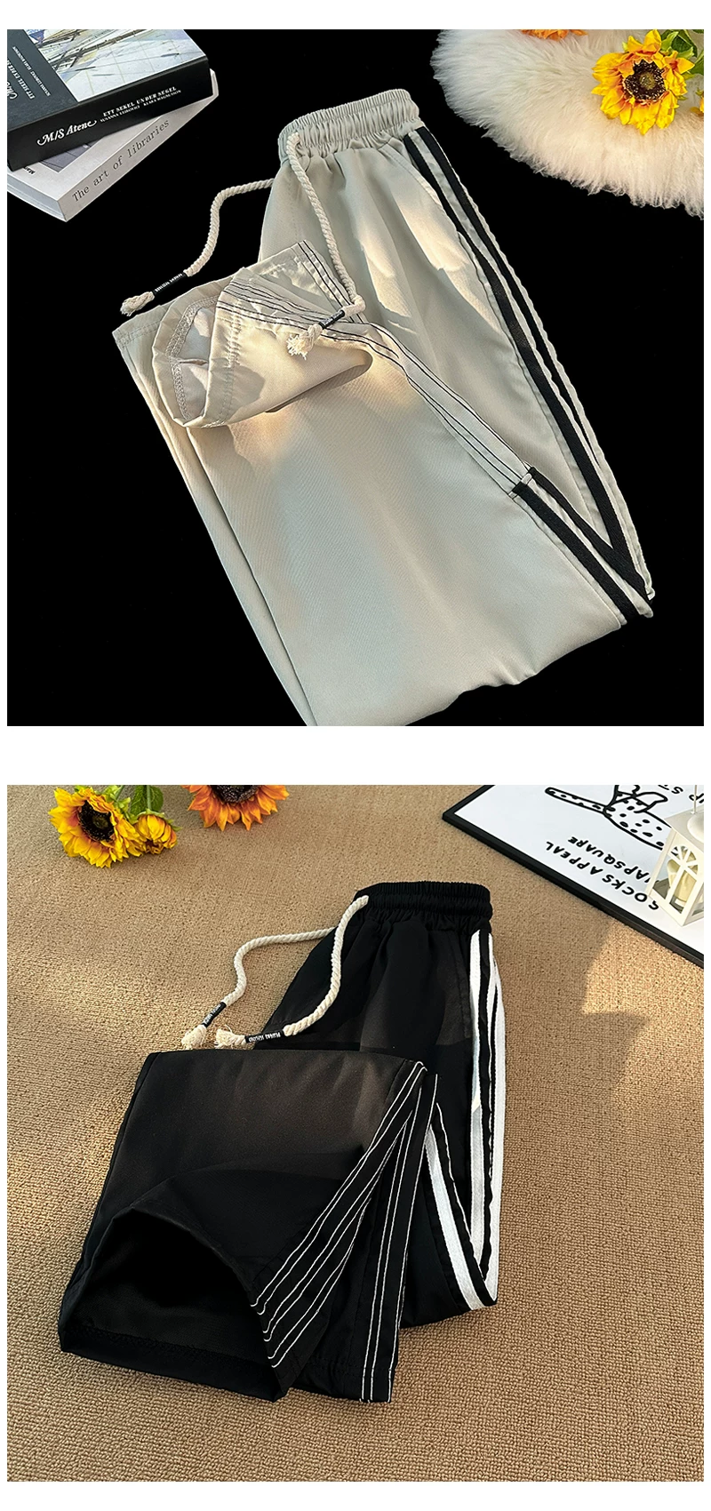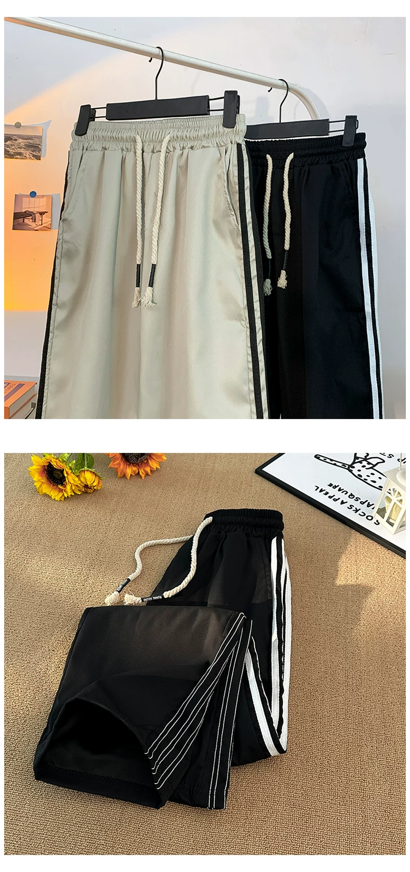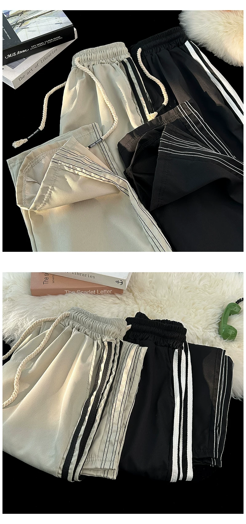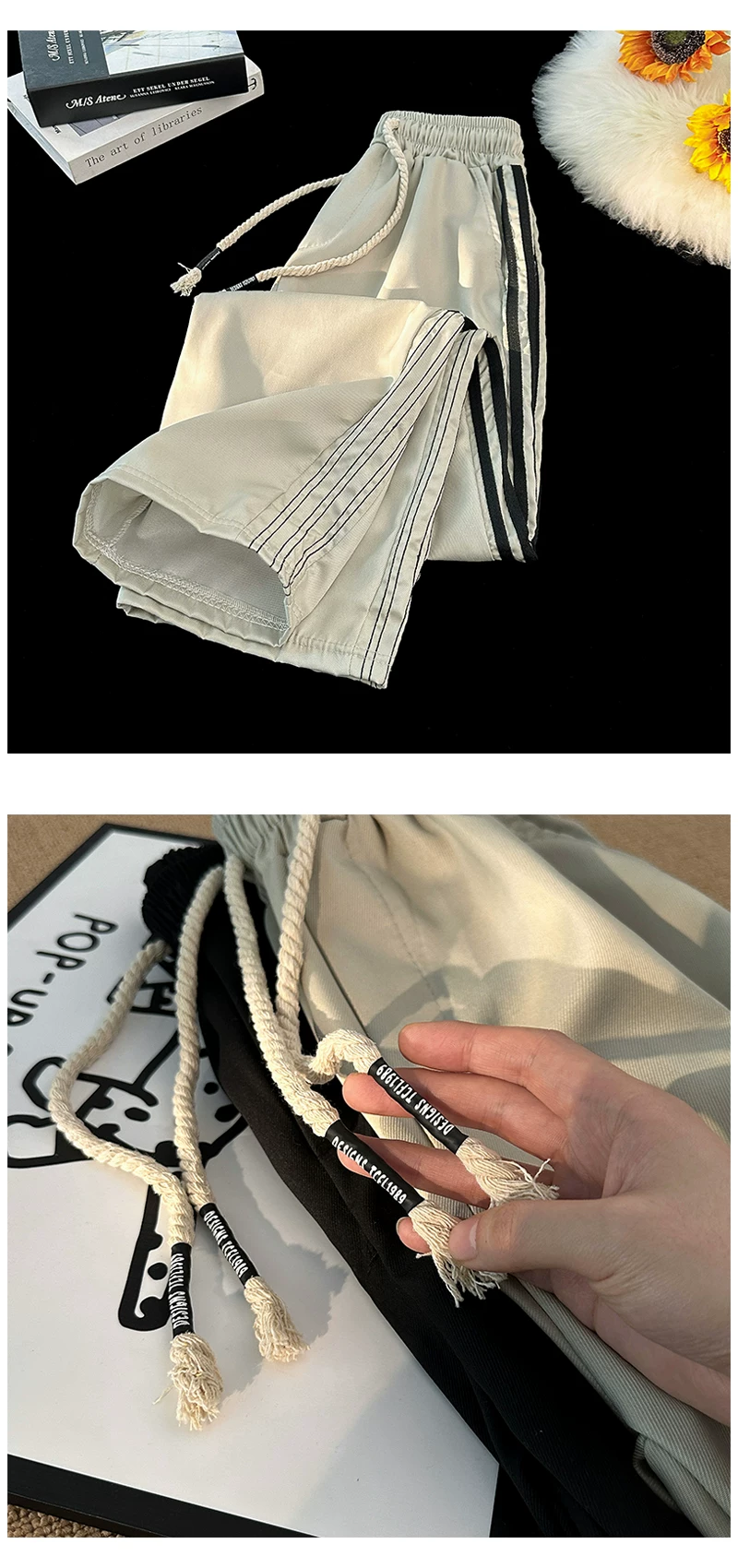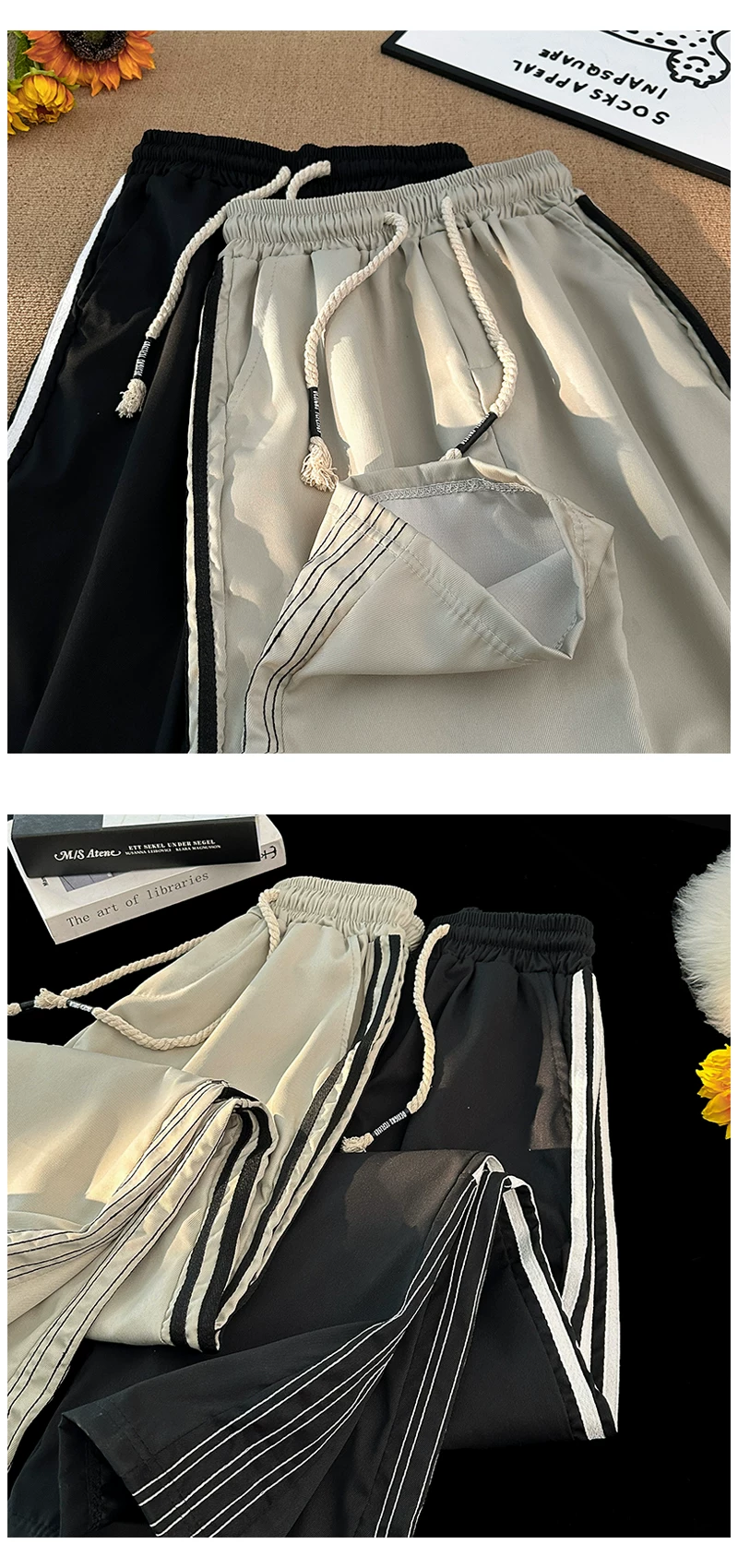 - Quần thể thao sọc kiểu Mỹ dành cho nam, quần dù thời thượng mùa thu đông, quần dài ống rộng đa năng, phong cách thường ngày.